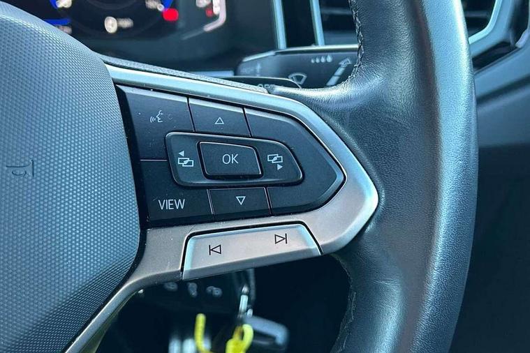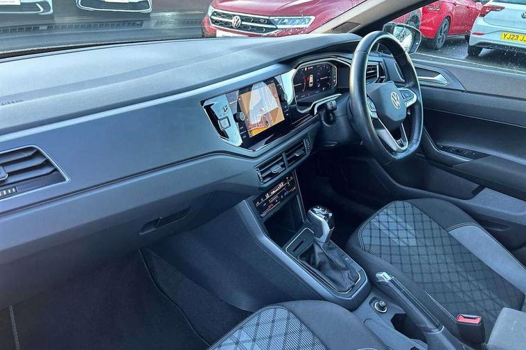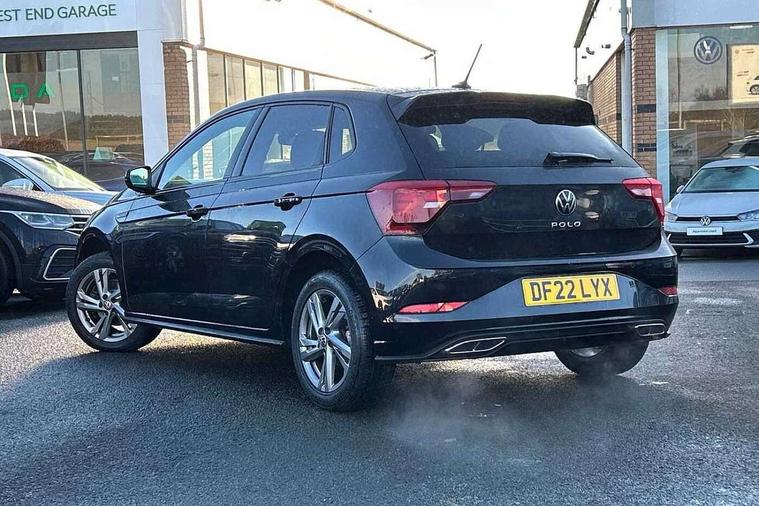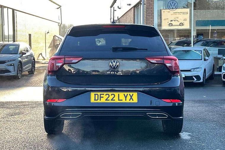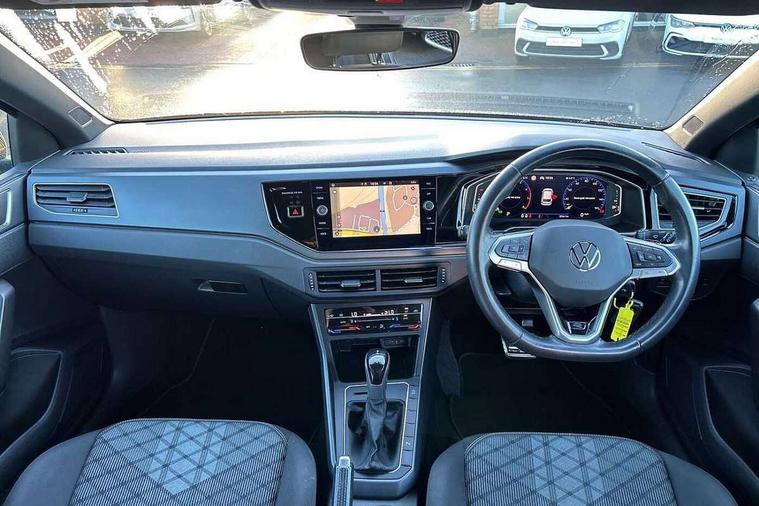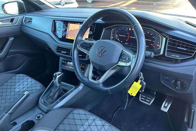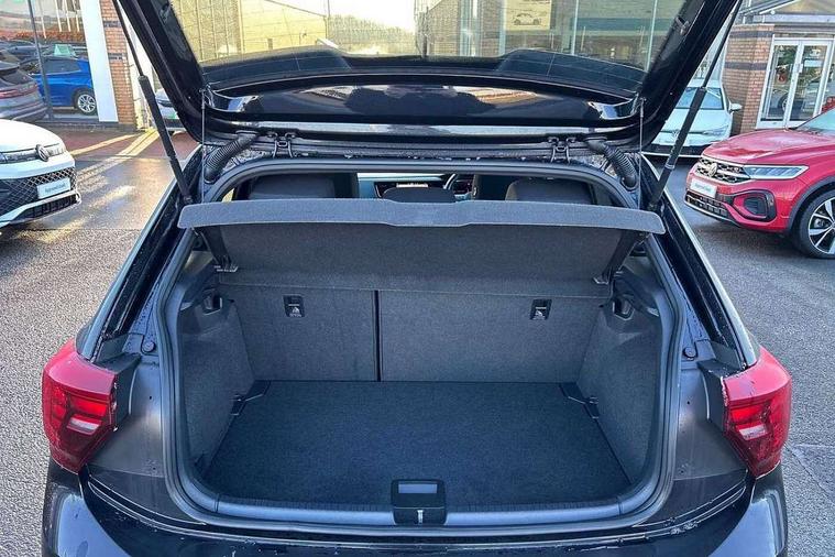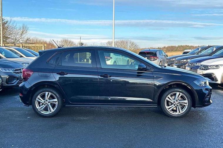 Adaptive cruise control with follow-to-stop and speed limiter, Bluetooth mobile phone interface, Digital Cockpit Pro with 10.25" Display, Driver alert system, Dynamic road sign display, Emergency call service, Power assisted speed sensitive steering, Preparation for We connect and We connect plus, Speedo and rev counter, electronic odometer, trip, service interval display and fuel gauge, Standard rear axle, Travel Assist - Lane keeping system and traffic jam assist, Travel assist including emergency assist, Trip computer, Warning signal and warning light for front and rear seatbelts not fastened, Washer fluid level indicator, Wireless app connect, Front wheel drive, Rear shock absorpion, Start-stop system with battery regeneration (recuperation - energy recovery during braking), DAB Digital radio, Diversity antenna for FM reception, Front and rear 6 speakers, Body colour bumpers, Body colour door handles, Body colour door mirrors, Electric front windows, Front scuff plates with R-Line logo, Heat insulating darkened glass in side and rear windows, Heat insulating glass windscreen, Power folding adjustable/heated exterior mirrors and front passenger exterior mirror lowering function, Rear electric windows, Rear fog light, Rear side wing doors, Rear tinted glass from B-pillar backwards approx 65% tinted, Rear windscreen washer and wiper with interval delay, Third brake light, 12V power socket in centre console, 2 USB-C ports in the front, 2 USB-C charging sockets on the center console in the rear, 3 rear head restraints, 60/40 split folding rear seat and rear seat bench not split, Air care climatronic air conditoning system with active combination filter and 2-zone temperature control, Black roof lining, Ceramique headliner, Chrome plated radiator grille inserts, air vent surrounds and light switch surrounds, Door and side trim panel, Driver and front passenger seat height adjustment, Driver/passenger sunvisors with illuminated vanity mirrors, Front + rear carpet mats, Front centre armrest, Front footwell illumination, Front seat backrest storage pockets, Front sports comfort seats, Handbrake lever handle in leather, Isofix child seat preparation easy-fit (for two outer rear seats, and front passenger seat) compatible with I-size, Karoso artvelours cloth upholstery, Leather trimmed gear knob, LED interior light with switch off delay and dimmer, 2 reading lights front and rear, Luggage compartment cover, Luggage compartment floor, Luggage compartment lighting, Lumbar adjustment for front seats, Single front passenger seat, Stainless steel pedals, Standard pedal cluster, Three spoke leather wrapped multifunction steering wheel with shifting paddles, Light and sight pack - Polo R-Line/Black Edition, 3 point height adj front seatbelts + pretensioners, 3x3 point rear seatbelts, ABS, Driver and front passenger airbag with front passenger airbag deactivation, Drivers and front passengers safety optimised head restraints, ESC (Electronic stability control) + EDL (Electronic Differntial lock) and ASR (Traction control), Extended and predictive pedestrian/ cyclist protection, Front curtain and side airbags with center airbag, Front/rear disc brakes, Hill hold control, Manual child lock in rear doors, Single tone horn, Tyre pressure loss indicator, Alarm with interior protection, Anti-theft alarm system with interior monitoring, backup horn, and towing protection, Anti-theft wheel bolts, Electronic engine immobiliser, Chrome applications on rotary light, mirror adjustment, window regulator switches, outlet with frame in black, Dark grey anodised matt decorative inserts in dash and front door panels, Low rolling resistance tyres,
