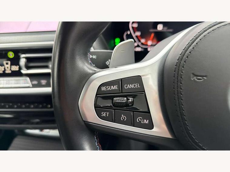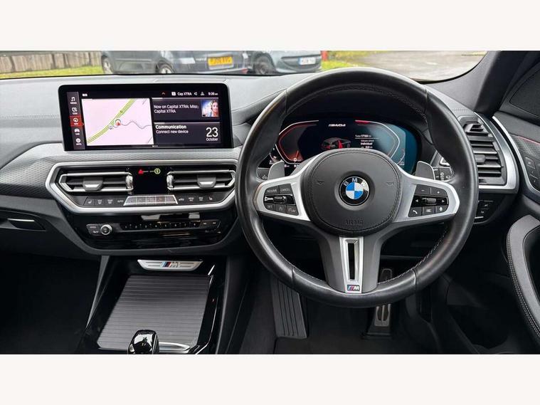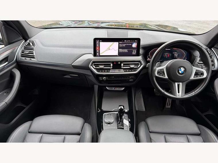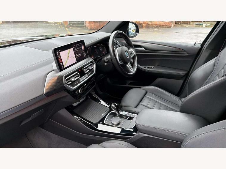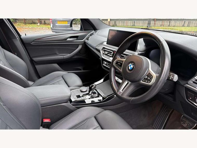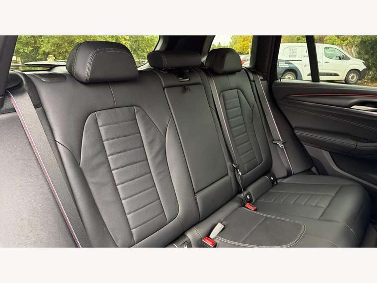 Active Guard, Attentiveness assist, BMW Live Cockpit Professional nav system including 12.3" instrument display + 12.3 high resolution control display, BMW Online services, BMW Teleservices, Brake pad wear indicator in front and rear, Check Control warning system for monitoring of lights and door/luggage compartment open warning, Condition based service - BMW service history, electronic service booklet, integrated owner's handbook, Connected drive services, Deletion of driving assistant professional, Electric boot lid, Front/rear Parking distance control, iDrive touch controller with 8 favourite buttons, Instrument cluster with speedometer with mph readout, tachometer, fuel gauge and oil temperature gauge, Lights on warning by audio warning signal when ignition is switched off, Oil sensor for level and grade, warning by check control system, On board computer - average speed+fuel consumption, service interval, clock/date, odometer/trip meter, outside temperature display and ice warning, Optimum shift indicator, Personal Profile - automatic lock when driving away selectable, Run flat indicator, Stop/start system, Variable sports power steering with drive performance control Sport+ mode, Diesel particulate filter, Incorrect fuelling protection, Larger capacity fuel tank, M Adaptive suspension, M Sport differential, Multi-link rear suspension, Performance Control, Sport automatic transmission with gearshift paddles, BMW professional radio/CD/MP3, DAB tuner, Acoustic glazing, Automatic windscreen wipers and automatic headlight, Black finish on B pillars, BMW individual high gloss shadow line with extended content, Body colour door handles, Body colour roof mouldings, Body coloured bumpers, Direction indicator, side repeaters, integrated in exterior mirrors, Dynamic brake lights, Electric adjust heated aspherical door mirrors, Exhaust tailpipes - dual, round, split left and right with chrome finisher, Fingertip control / anti-trap function on electric window, Folding wing mirrors with auto dimming, Follow me home headlights, Front and rear bumper system with replaceable deformation elements, Front and rear electric windows, Green tinted heat insulating glass, Heated windscreen washer jets, High beam assistant, High gloss black shadow line roof rails, High gloss shadowline exterior trim in decorative moulding side frame/recess cover/guide rail/B, C pillars/mirror frame and triangle with mirror base, High level 3rd brake light incorporating LED Technology, Interior rear view electrochromatic mirror with automatic anti dazzle function, Kidney frame and struts painted in high gloss black, LED tail lights, Lightweight engineering, M aerodynamic bodystyling, M black mirror caps, M Sport entry door sill strips, Model designation, Rain sensor, Rear side wing doors, Rear wing door, Rear wiper, Shark fin antenna, Side exterior M designation badges, Sun protection glass, Visible VIN plate, Welcome lighting, Windscreen wipers with adjustable interval, 12V power point in luggage area, 12V power socket in front centre console, 2 x USB Type C ports for charging and data transmission (front centre console) and 2 x USB Type C ports for charging (rear centre console), 3 rear headrests, 3 seat bench in 2nd row, 3 zone automatic air conditioning, 4 lashing points to secure luggage, 40:20:40 split folding rear seat with loading system, Ambient lighting, Anthracite headlining, Automatic interior light when door is opened/ignition switched off or via remote key, Electric adjustable seats with memory function, Floor mats in velour, Foldable storage floor with compartment, Four grab handles integrated in roof lining, Front and rear bottle holders integrated into door trim storage compartments, Front and rear side armrests integrated into door trim, Front centre armrest with storage compartment, Front footwell lights, Front head restraints, Front passenger seat, Front/rear courtesy lights with soft on/off dimming, Front/rear reading lights, Heated front seats, Isofix rear child seat preparation, Leather gear knob, Lockable glove compartment, Luggage area underfloor compartment, Luggage compartment lighting, M sport leather steering wheel, Multifunction steering wheel, Parcel shelf removeable and storable under boot floor, Reach and rake adjustable steering column, Rear centre armrest with 2 cupholders, Removable / retractable luggage cover, Slope adjustable rear seats, Storage compartment in rear centre console and front/rear door trims, Sun visors with vanity mirrors and ticket pocket, Toolkit located in luggage compartment, Two front cupholders with removable oddments tray/lid, Vernasca leather upholstery, Connected pro pack - X3, Active protection, ADB - Automatic Differential Brake, Anti-lock braking system (ABS) with brake assist, Automatic Stability Control (ASC), Battery safety cut-off, BMW emergency call, Brake drying, Brake energy regeneration, Braking pre-tensioning, Child locks on rear doors, Cornering brake control (CBC), Crash Sensor - activation of central locking release, hazard warning light and interior lighting, Deactivation of fuel pump in the event of a crash, Driver and front passenger front and side airbags with passenger deactivation and ITS front and rear head airbags, Driver and front passenger knee airbag, DSC+, Dynamic brake control, Dynamic Traction Control - DTC, Electromechanical parking brake, Hill descent control, Hill start assist, M sport seatbelt, Seatbelt security check for front seats, Side impact protection, Three point seatbelts to all seats with front and outer rear pyrotechnic belt tensioners and seat belt force limiters, Two tone horn, Tyre pressure sensor, Ventilated front and rear disc brakes, Warning triangle and first aid kit, Central locking switch for all doors, fuel filler cap and luggage compartment, Electronic engine immobiliser, Locking wheel nuts, Remote control including two integrated key - one button for open/close all lockable content, windows and separate butto