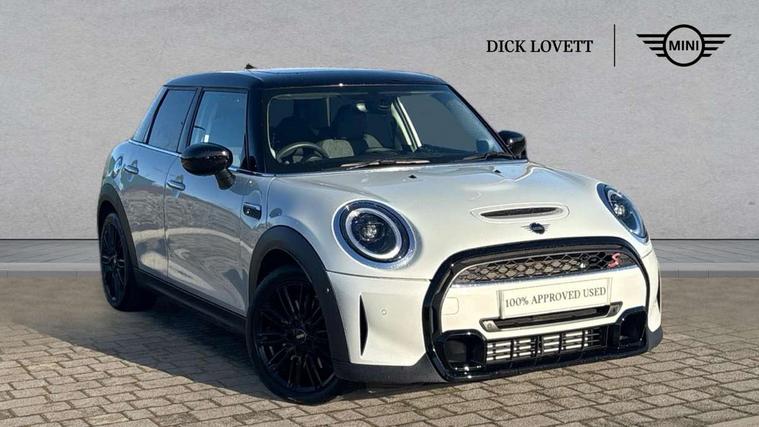 Apple CarPlay, Automatic start/stop function with brake energy recuperation, Compatible mobile phone bluetooth with audio streaming, Cruise control with brake assist, Electro-mechanical speed dependant steering assistance, Flexible car sharing preparation, Instrument cluster, MINI Driving Modes - centre toggle switch to control driving setting (sport, mid and green), Mini E-call, MINI TeleServices, On board computer, Service interval indicator, Double Vanos system, Fully variable valve control, Gear change indicator display, High precision injection, Performance Control, Steptronic transmission with double clutch, 8.8" touchscreen with LED ring, FM tuner and DAB digital radio, 3rd brake light, Automatic headlight activation switch, Bonnet scoop, Chrome fuel filler cap, Dynamic brake lights, Electric front+rear windows, Heated rear window, Heated windscreen washer jets, LED headlight with closed ring and daytime driving lights, Metal door sill strips with Cooper S imprint, Model logo Cooper S on right of tailgate, Radiator grille chrome border with honeycomb structure including S Badge, Rain sensor window wipers, Rear fog lights, Rear LED lights with union jack design, Rear side wing doors, Rear window wiper, Side scuttle panel with integrated indicator, Sun/heat protection glass, Two central exhaust tailpipes with chrome finisher, White indicator lenses, 12V Accessory socket in centre console, 3 seat bench in 2nd row, 4 lashing eyes in luggage compartment, 60/40 split folding rear seat, Carbon black colour line - Knee roll and door armrest, Chrome interior highlights, Cupholders, Front and rear head restraints, Front and rear isofix with front passenger airbag deactivation, Front and rear velour floor mats, Glove compartment, Height and length steering column adjustment, Interior lighting with 12 different colours across the dashboard, underneath door bezel with illuminated laser-engraved design on central display, Leatherette gearshift lever and handbrake gaiters, LED reading lights, vanity mirror lights, front foot well light and spotlight on front seats, Manual air conditioning, Mechanical seat adjustment - forward/back & backrest for front seats and driver seat height adjust, Multifunction steering wheel, Satellite grey headlining including grab handles and clothes hooks, Single front passenger seat, Sport leather steering wheel with speed limiter and audio/communication controls, Storage compartments in doors, Storage pocket on back of front seats, Sunvisors with vanity mirrors, 3 point seatbelts on all five seats, 6 Airbags - front, side, head and seat belt tensioners, Anti-lock braking system (ABS), Child locks on rear doors, DSC - Dynamic Stability Control, Front and rear disc brakes, Hill start assist, Two tone horn, Tyre pressure monitoring system, Alarm system with tilt sensor, monitoring doors, bonnet interior and tailgate, Electronic vehicle immobiliser, Start/stop toggle with keyless go, Piano black interior trim, Tool kit, Tyre repair kit,