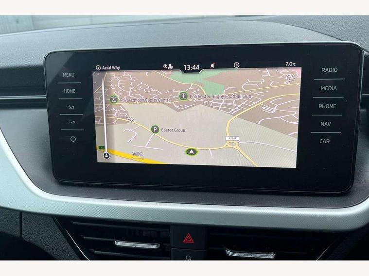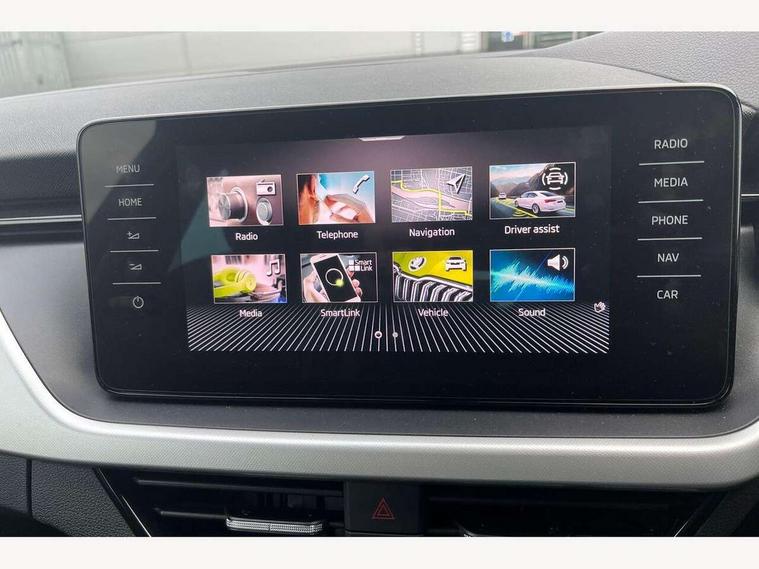 Amundsen satellite navigation with 9.2" touchscreen display, web radio and voice control, Bluetooth system, E-call, Front assist system, Gesture control, PAS, Service indicator, Speed limiter, Wireless SmartLink for apple car play, android auto and mirrorlink, 8 speakers, Auxiliary input socket, DAB Digital radio, Body colour bumpers, Body colour door mirrors and handles, Chrome grille surround, Dimming rear view mirror with black surround, Electrically adjustable and heated door mirrors, Front electric windows, Headlight range control, Heated rear window, Light sensors, Privacy glass, Rear fog lights, Rear manual windows, Rear side wing doors, Rear wiper, 12V Accessory socket in centre console, 3 seat bench in 2nd row, Chrome inner door handles, Cloth upholstery, Front head restraints, Glove compartment with illumination, Height adjustable driver and front passenger seats - manual, Ice scraper, Isofix child seat fittings on outer rear seats, ISOFIX on front passenger seat, Manual lumbar support for front seats, Rake/reach adjustable steering wheel, Reading lights, Single front passenger seat, Sun visors with illumination on front passenger, Textile floor mats, Third rear headrest, Top tether for front passenger seat, Umbrella in driver's door, 3x3 point rear seatbelts, Airbags - driver and front passenger, ESP, Front passenger airbag deactivation switch, Front side airbags with curtain airbags, Hill hold control, Manual parking brake, Manual rear child locks, One tone horn, Rear disc brakes, Seatbelt reminder for driver an co-driver, Traction control, Tyre pressure monitor, Anti-theft alarm system with interior monitoring, backup horn, towing protection and remote central locking with SAFE system, Anti-theft wheel bolts, Electronic engine immobilizer, Silver haptic decorative insert on the dashboard with hot stamping in glossy black,