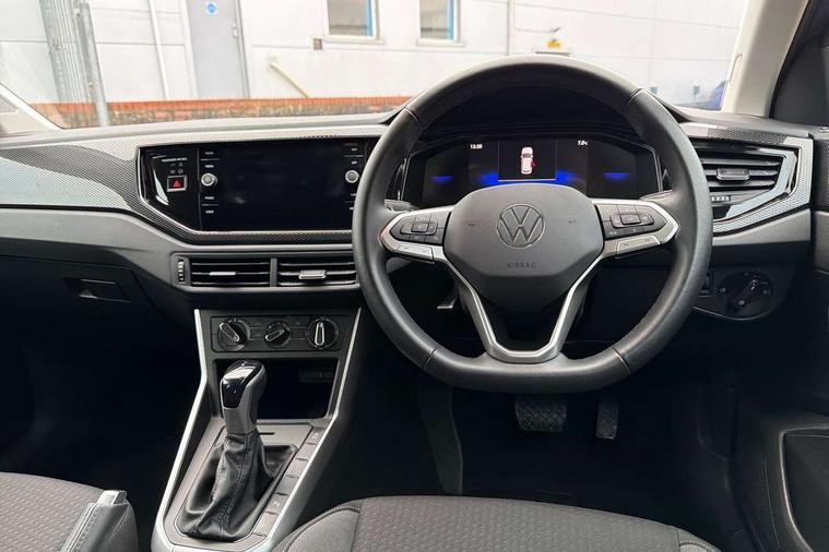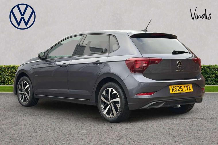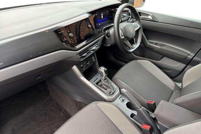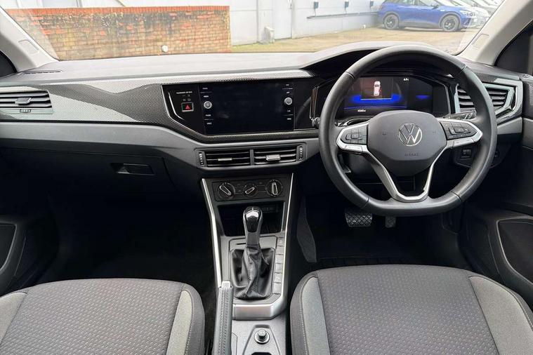 Advanced driver attention and drowsiness monitor, Bluetooth mobile phone interface, Dynamic road sign display, Emergency call service, Mobile phone preparation with inductive charging function, Multifunction front facing camera for distance control, Power assisted speed sensitive steering, Predictive adaptive cruise control without follow-to-stop and speed limiter, Preparation for navigation system with media and internet package, Preparation for We connect and We connect plus, Rear view camera, Speedo and rev counter, electronic odometer, trip, service interval display and exterior temperature gauge, Standard rear axle, Travel Assist - Lane keeping system and traffic jam assist, Travel assist including emergency assist, Trip computer, Warning signal and warning light for front and rear seatbelts not fastened, Washer fluid level indicator, Wireless app connect, Front wheel drive, Rear shock absorpion, Start-stop system with battery regeneration (recuperation - energy recovery during braking), DAB Digital radio, Diversity antenna for FM reception, Automatic dimming interior rear view mirror, Automatic headlight control with LED separate daytime running lights with coming/leaving home function, Body colour bumpers with chrome inserts, Body colour door handles, Body colour door mirrors, Electric front windows, Engine badge deletion, Headlight range adjustment, Heat insulating and laminated safety glass windshield, LED Headlights, LED rear combination lamps, Power folding adjustable/heated exterior mirrors and front passenger exterior mirror lowering function, Rain sensor, Rear electric windows, Rear fog light, Rear side wing doors, Rear tinted glass from B-pillar backwards approx 65% tinted, Rear windscreen washer and wiper with interval delay, Third brake light, 12V power socket in centre console, 2 front and 2 rear reading lights with switch off delay and dimmer, 2 USB-C ports in the front, 2 USB-C charging sockets on the center console in the rear, 3 rear head restraints, 60/40 split folding rear seat and rear seat bench not split, Ceramique roof lining, Chrome plated radiator grille inserts, air vent surrounds and light switch surrounds, Door and side trim panel, Driver and front passenger seat height adjustment, Driver/passenger sunvisors with illuminated vanity mirrors, Front centre armrest, Front seat backrest storage pockets, Front standard seats, Handbrake lever handle in leather, Hartley/Thomas cloth upholstery, Headliner in recycled material, Isofix child seat preparation easy-fit (for two outer rear seats, and front passenger seat) compatible with I-size, Leather trimmed gear knob, Luggage compartment cover, Luggage compartment lighting, Removable luggage compartment floor, Single front passenger seat, Standard climatic zones, Standard pedal cluster, Three spoke leather wrapped multifunction steering wheel with shifting paddles, Light and vision pack - Polo, 3 point height adj front seatbelts + pretensioners, 3 point seat belt for centre rear seat, 3 point seatbelts, outer rear with ECE lable, ABS, Driver and front passenger airbag with front passenger airbag deactivation, Drivers and front passengers safety optimised head restraints, ESC (Electronic stability control) + EDL (Electronic Differntial lock) and ASR (Traction control), Extended and predictive pedestrian/ cyclist protection, Front assist with autonomous emergency braking (for Adaptive Cruise Control ACC up to 130 mph), Front curtain and side airbags with center airbag, Front disc brakes, Hill hold control, Manual child lock in rear doors, Rear drum brakes, Single tone horn, Tyre pressure loss indicator, Alarm with interior protection, Anti-theft alarm system with interior monitoring, backup horn, and towing protection, Anti-theft wheel bolts, Electronic engine immobiliser, Lava stone black gloss/matt decorative inserts in dash and front door panels, 16" Torsby alloy wheels, Low rolling resistance tyres,