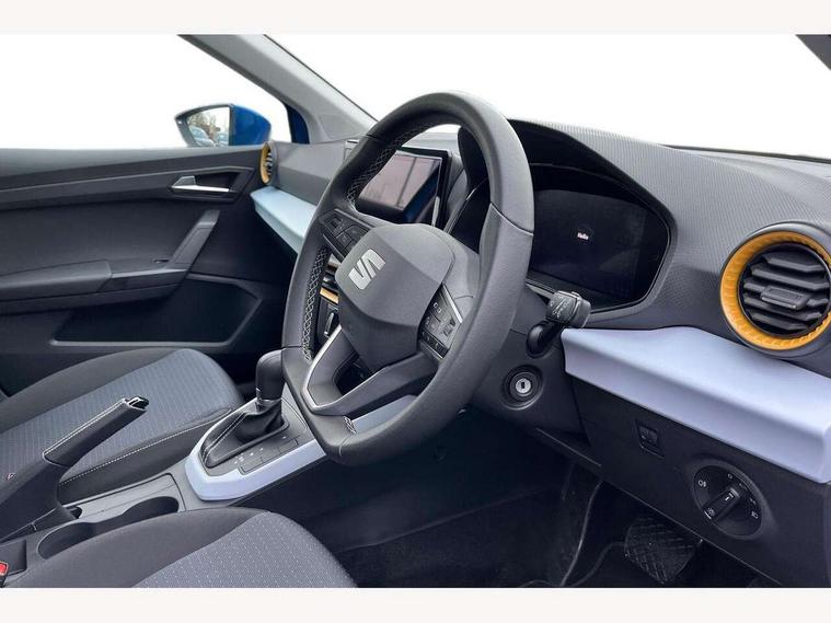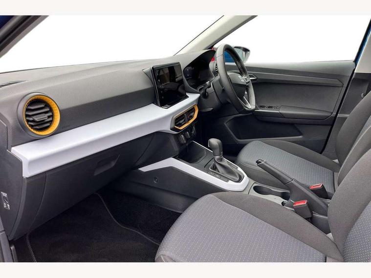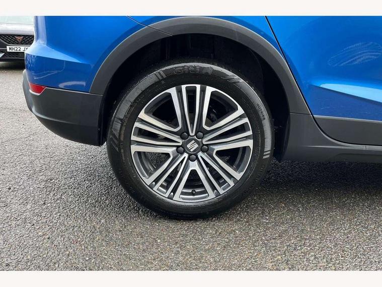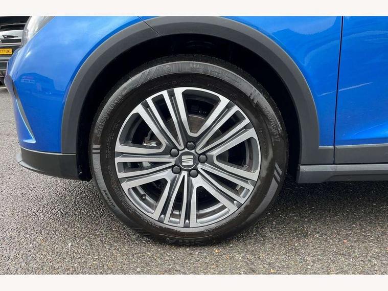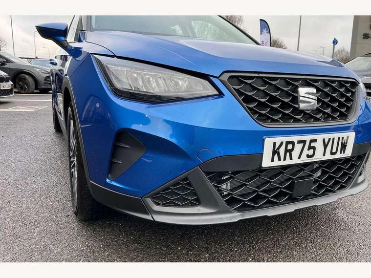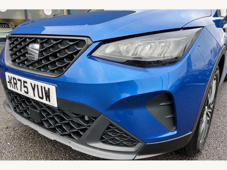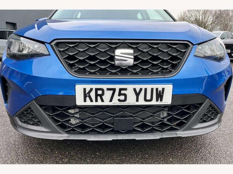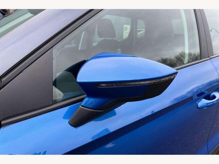 'Lights On' Reminder warning buzzer, 8" Digital cockpit, Cruise control and speed limiter, Digital clock, E-call, Electric speed sensitive power steering, Full link smartphone integration with mirror link, wireless apple carplay, Google android auto + USB Type C cable for apple and android devices, Lane keeping system, Low fuel warning light, Outside temperature display, RPM counter, Trip computer, Wireless phone charger, 9.2" colour touchscreen with navigation system, voice control and USB port (type c), Bluetooth interface for hands free and audio streaming, DAB digital radio and AM/FM radio, Steering wheel mounted audio controls, Anti theft roof antenna, Automatic activation of hazard warning lights, Black roof rails and window surrounds, Body coloured bumpers, Body coloured door handle inserts, Body coloured door mirrors, Dimming rear view mirror, ECO LED automatic headlights and LED daytime running lights, Electric adjustable door mirrors, Electric front/rear windows, Hidden exhaust pipe, LED rear tail lights and licence plate lights, Licence plate lights, Protective side mouldings, Rain sensing wipers, Rear fog lights, Rear side wing doors, Rear spoiler, Rear window wash/wipe, Third brake light, Visible VIN plate, 2 cupholders, 3 seat bench in 2nd row, 60/40 split folding rear seat, Air conditioning, Cloth upholstery, Double boot floor, Driver sunvisor with covered mirror + card holder, Dust/pollen filter, Gear shift indicator, Grey interior air vents, Grey interior roof, Height adjustable front seats, Height/reach adjustable steering column, Illuminated boot, Instrument lighting with brightness control, ISOFIX points in outer rear seats with top tether anchorage points, Leather steering wheel/gear knob/handbrake, Passenger sunvisor with vanity mirror, Potentiometer, Single front passenger seat, Two front and three rear height adjustable headrests, Interior chrome pack - Arona, Safe and driving pack (S) - Arona, 3 point seatbelts on all rear seats, ABS, Active front headrests, Child locks on rear doors, Driver and front passenger airbags with front passenger airbag de activation, front side and curtain airbags, Emergency Brake Assist (EBA) and front assist, Forward collision warning and autonomous emergency braking, Front and rear seatbelt reminder, Hill hold control, Multi-Collision braking, Tiredness recognition system, Traction control, Tyre pressure monitoring system, Deadlock, Electronic engine immobiliser, Locking wheel bolts, Remote central locking, Titan black dashboard, 17" Dynamic machined alloy wheels,