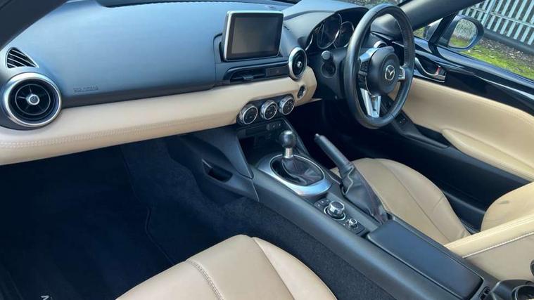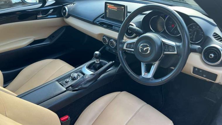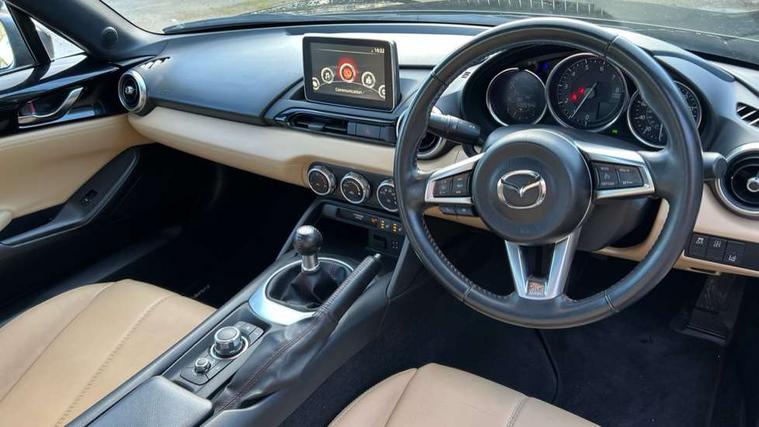 7" touchscreen with multimedia commander, Cruise control + speed limiter, Engine start/stop button, Integrated bluetooth with steering wheel mounted controls, Lane departure warning system, PAS, Rear parking sensor, Remote boot release, Satellite navigation system, Trip computer, Water temperature gauge, Limited slip differential, Sports suspension, 9 speakers, Auxiliary input socket, Bose Premium Audio system, DAB Digital radio, MP3 compatible radio/single CD player, USB/iPod connection, Adaptive front lighting system, Auto dimming rear view mirror, Automatic headlamp levelling, Body colour bumpers, Body coloured door mirrors, Coming/leaving home lighting function, Dual exhaust pipes, Dusk sensitive headlamps, Electric front windows/one touch facility, Electrically heated door mirrors, LED daytime running lights, LED Headlights, Premium cloth soft top with integrated heated glass window and soft top cover, Rain sensing front wipers, 12V socket, Body coloured inner door trims, Centre console storage box, Climate control air conditioning, Cupholders, Front centre armrest, Front head restraints, Heated front seats, Height adjustable front seats, ISOFIX front passenger seat child seat compliance, Leather gear knob, Leather handbrake lever, Leather steering wheel, Lockable rear storage box, Sports seats, Tilt/slide reclining front seats, Windblocker, 3 point ELR front seatbelts with pretensioners, ABS+Electronic Brake force Distribution, DSTC-Dynamic Stability and Traction Control, Dual front airbags, Fasten seatbelt reminder, Hill hold assist, Manual passenger airbag deactivation function, Side airbags, Tyre pressure monitor, Alarm with interior movement sensor, Immobiliser, Remote central door locking, Smart keyless entry, Superlocking, Black vinyl leather dashboard panel, 17" Bright alloy wheels, Tyre puncture repair kit,