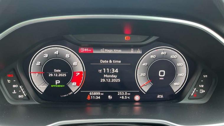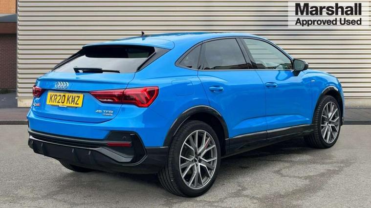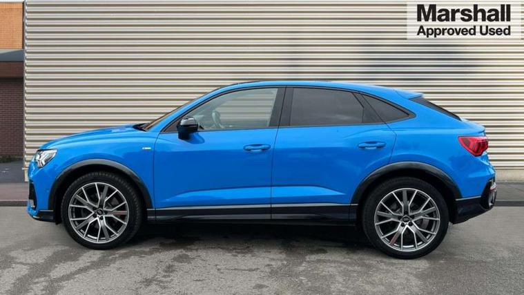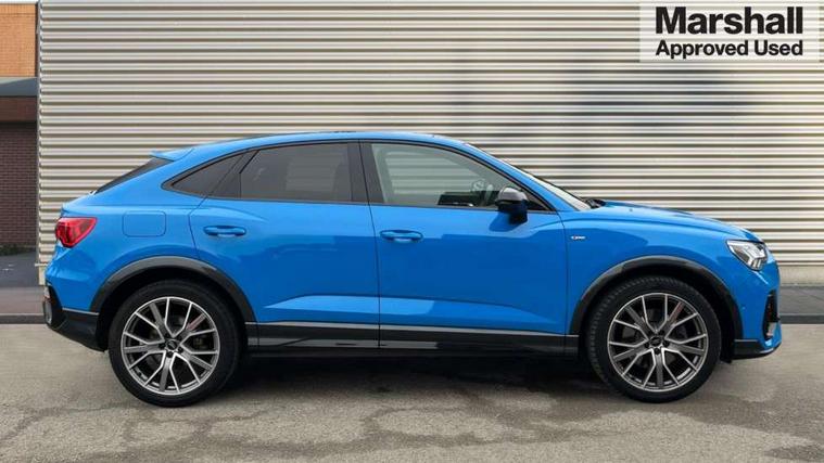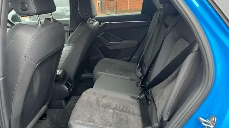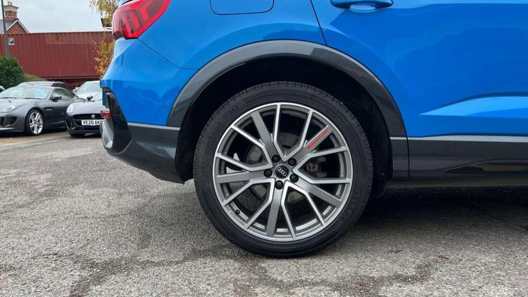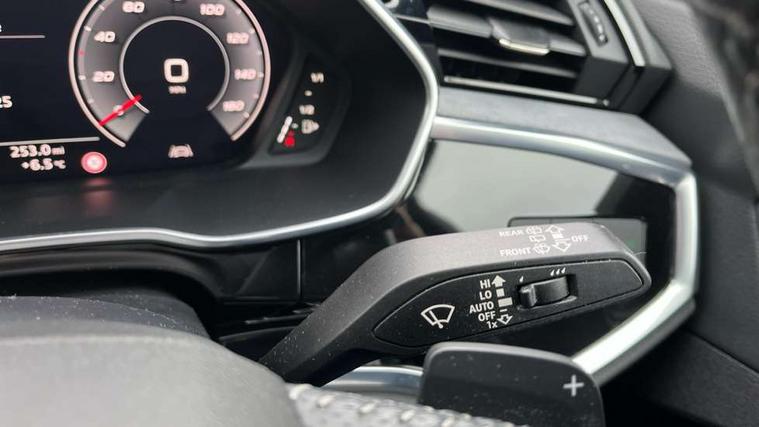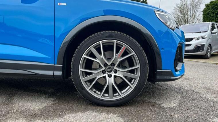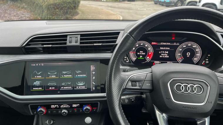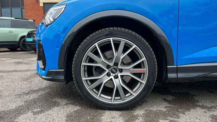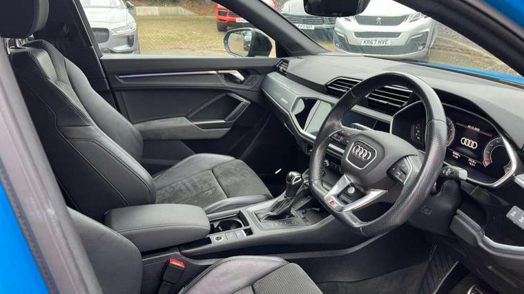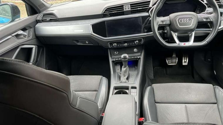 360 degree parking camera, Audi connect safety and service (e-call), Audi drive select, Audi lane departure warning, Audi phone box with wireless charging, Audi side assist, Audi smartphone interface includes wireless Apple carplay/Android Auto, Audi virtual cockpit plus, Bluetooth interface, Camera based traffic sign recognition, MMI Navigation Plus with high resolution 10.1 inch touchscreen colour display, Power operated tailgate, Progressive steering, Rear cross traffic alert, Service interval indicator, Start stop system with recuperation, Voice control system with natural language interaction, Adaptive suspension with damping control, 1 x USB type C and 1 USB type A charging points, Bang + Olufsen 3D sound system, DAB digital radio module, Acoustic windscreen, Audi Beam uses LEDs to project the Audi Sport logo, Auto dimming door mirrors, Auto dimming frameless rear view mirror, Diffuser grille in grained matt black, Diffuser trim in selenite silver, Electrically folding, adjustable and heated door mirrors with integrated LED side indicators and kerb view function for passenger side, Front and rear electric windows, Front fog lights, Front underbody protection in manhattan grey paint finish, Grille surround in aluminium silver matt, Headlight washers, High gloss black finish B and C pillars, Matrix LED headlights with LED rear lights and dynamic front and rear indicator, Panoramic opening glass sunroof, Privacy glass dark tinted rear and rear-side windows (from B-pillar backwards), Rain and light sensors, Rear underbody protection in matt black, Side skirt insert in matt Platinium grey, 12V socket in rear centre console, 3 spoke flat bottomed high multi-function leather sport steering wheel with gearshift paddles, 4 way electric lumbar support for driver and front passenger, 40:20:40 folding with manual adjustment for 60:40 forwards/backwards position and backrest angle, Adjustable rear seat bench/backrest with centre armrest and cupholder, Black cloth headlining, Dual zone electronic climate control, Electrically adjustable front seats, Front and rear black floor mats with contrast stitching, Front and rear headrests, Front and rear roof module including reading lights, Front centre armrest, Glove compartment lighting, Heated front seats, Height and reach adjustable steering wheel, Illuminated door sill trims with S logo, ISOFIX child seat mounting for front passenger with airbag deactivation and outer rear seat including top tether attachment point for outer rear seats, Luggage compartment light, Perforated leather gearknob, Stainless steel luggage compartment sill finisher, Stainless steel pedals, Black styling pack - Q3, Driver Assistance Pack - Q3, Multi coloured extended ambient interior lighting pack - Q3, Non smoking pack - Q3, 3x3 point rear seatbelts, 6 airbags - Driver, front passenger, curtain and side windows, Audi pre-sense front with pedestrain and cyclist recognition, Electrically operated child locks on rear doors, Electromechanical parking brake, Electronic stabilisation control including ABS, ASR and EDL, Hill descent control, Hill hold assist, Pre sense basic, Seatbelt monitoring, Tyre pressure warning, Warning triangle and first aid kit, Advanced key, Anti theft alarm, Anti theft wheel bolts, Remote central locking, Detail dashboard around MMI touch colour display in glass look, black with surround in aluminium look, Leatherette door armrest,