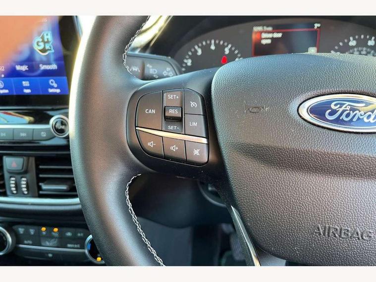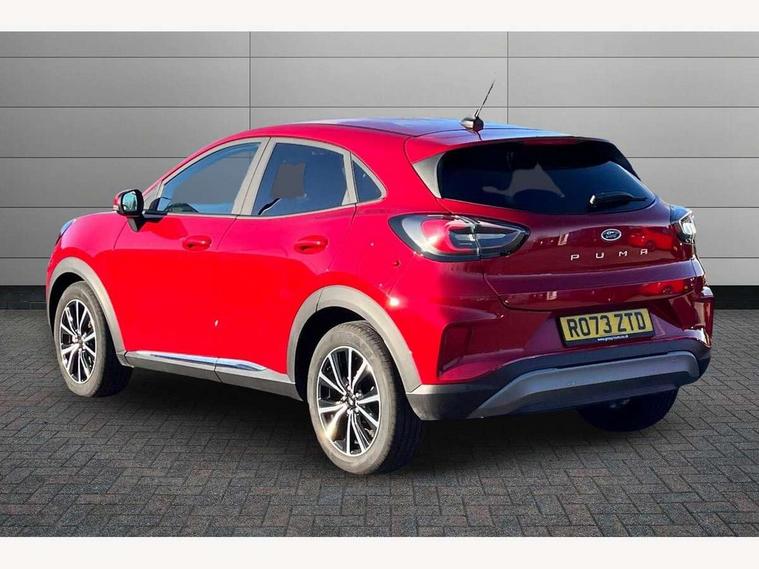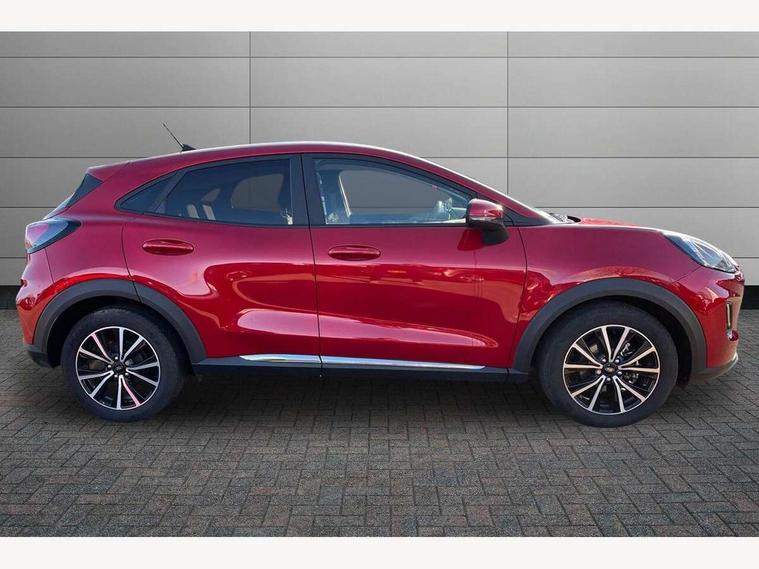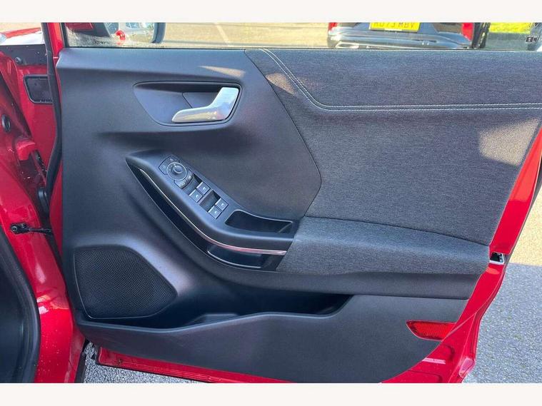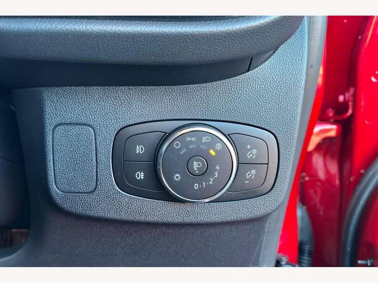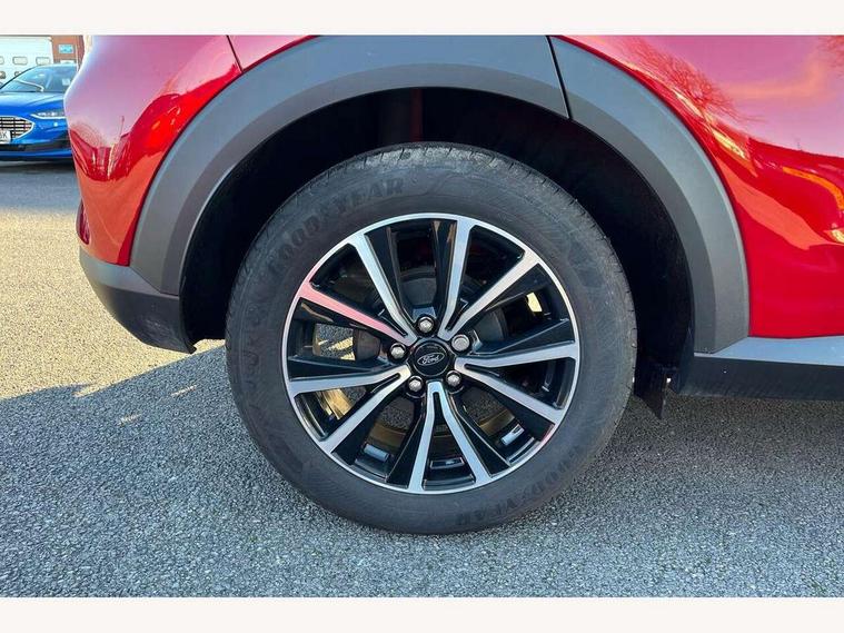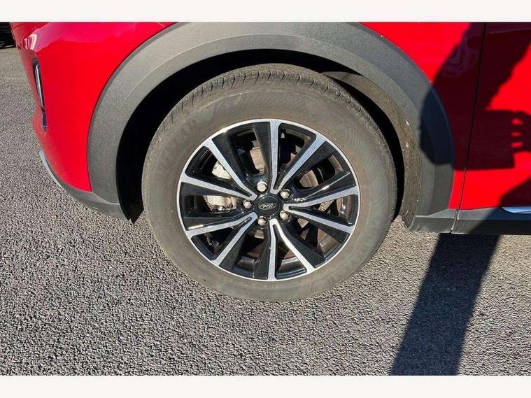 Driver impairment monitor, Emergency call service, Ford easy fuel, Lane keeping aid with lane departure warning, Power assist steering, Power start button, Rear parking sensor, Selectable drive modes(Normal, Eco, Sport, Slippery and Trail), Speed sign recognition, Standard suspension, Automatic headlights with auto high beam, Automatic rain sensing wipers, Body colour rear spoiler, LED rear lamps, Power foldable heated door mirrors with puddle lamps, Projector headlamps with LED day time running lights and front fog lamps, Quickclear heated windscreen, Rear side wing doors, Rear wiper, Third brake light, 3 seat bench in 2nd row, Centre console with armrest and stowage, Electronic automatic temperature control (EATC), Ford megabox extended bootspace, Front and rear head restraints, Front floor mats, Manual 2 way passenger seat adjustment, Manual 4 way driver seat adjust with lumbar adjustment, Sensico leather steering wheel/gear knob/handbrake, Single front passenger seat, Titanium cloth upholstery, Ford SYNC 3 navigation pack - Puma, 3 rear seatbelts, Child safety lock, Electronic stability control (ESC) and hill start assist, Pedestrian/cyclist detection & post-collision braking, Pre collision assist system, Tyre pressure monitoring system (TPMS), Thatcham alarm, 17" 10 spoke absolute black machined finish alloy wheel,