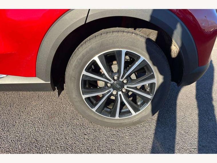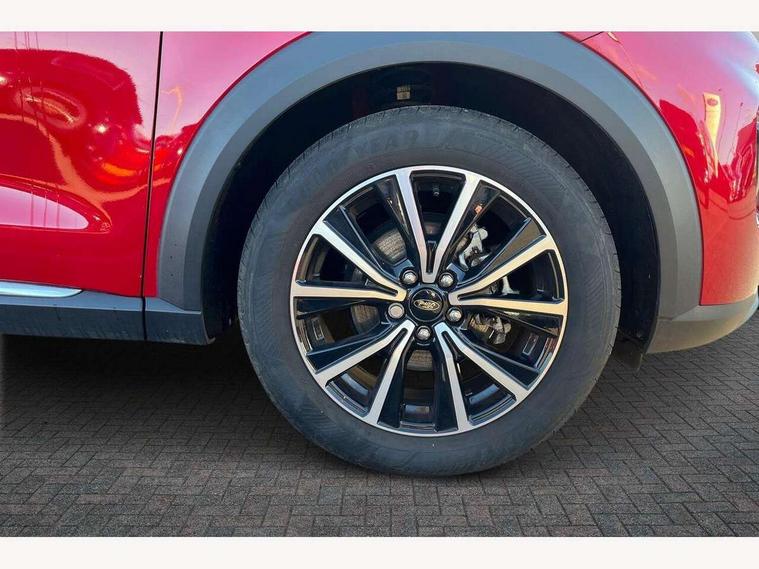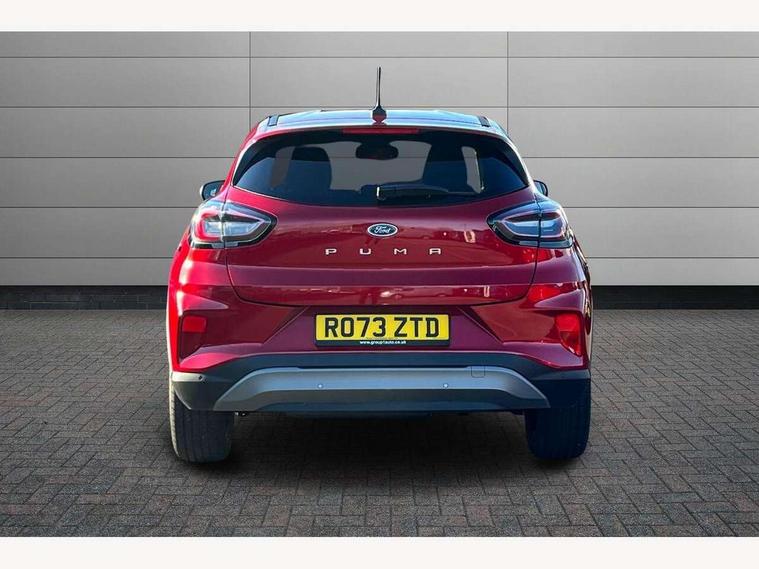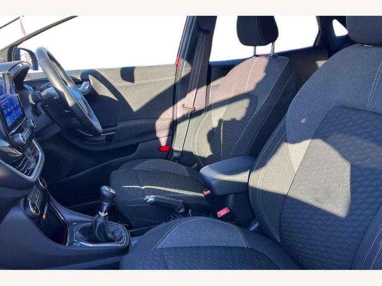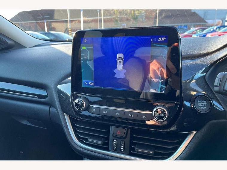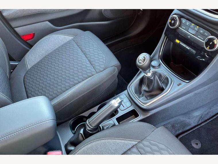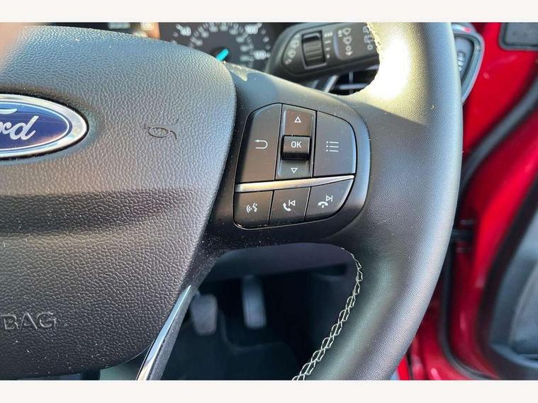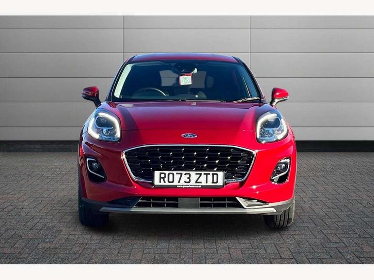 Driver impairment monitor, Emergency call service, Ford easy fuel, Lane keeping aid with lane departure warning, Power assist steering, Power start button, Rear parking sensor, Selectable drive modes(Normal, Eco, Sport, Slippery and Trail), Speed sign recognition, Standard suspension, Automatic headlights with auto high beam, Automatic rain sensing wipers, Body colour rear spoiler, LED rear lamps, Power foldable heated door mirrors with puddle lamps, Projector headlamps with LED day time running lights and front fog lamps, Quickclear heated windscreen, Rear side wing doors, Rear wiper, Third brake light, 3 seat bench in 2nd row, Centre console with armrest and stowage, Electronic automatic temperature control (EATC), Ford megabox extended bootspace, Front and rear head restraints, Front floor mats, Manual 2 way passenger seat adjustment, Manual 4 way driver seat adjust with lumbar adjustment, Sensico leather steering wheel/gear knob/handbrake, Single front passenger seat, Titanium cloth upholstery, Ford SYNC 3 navigation pack - Puma, 3 rear seatbelts, Child safety lock, Electronic stability control (ESC) and hill start assist, Pedestrian/cyclist detection & post-collision braking, Pre collision assist system, Tyre pressure monitoring system (TPMS), Thatcham alarm, 17" 10 spoke absolute black machined finish alloy wheel,