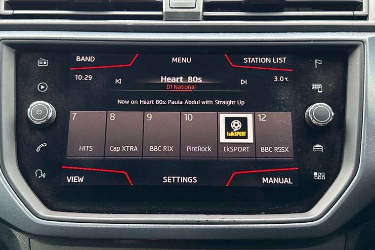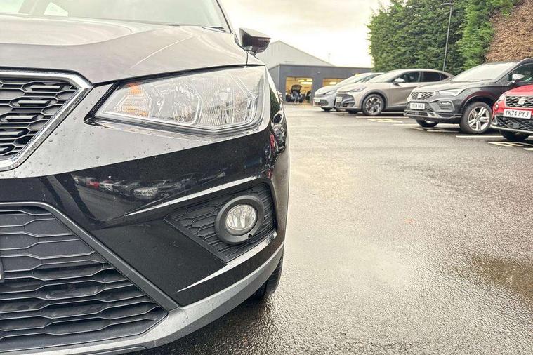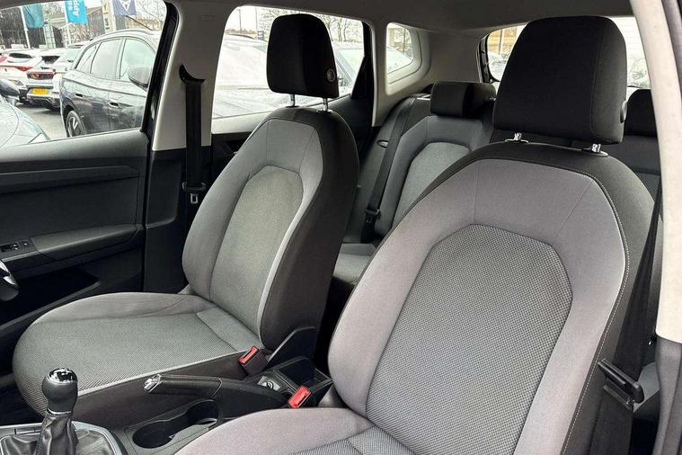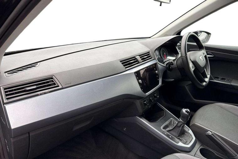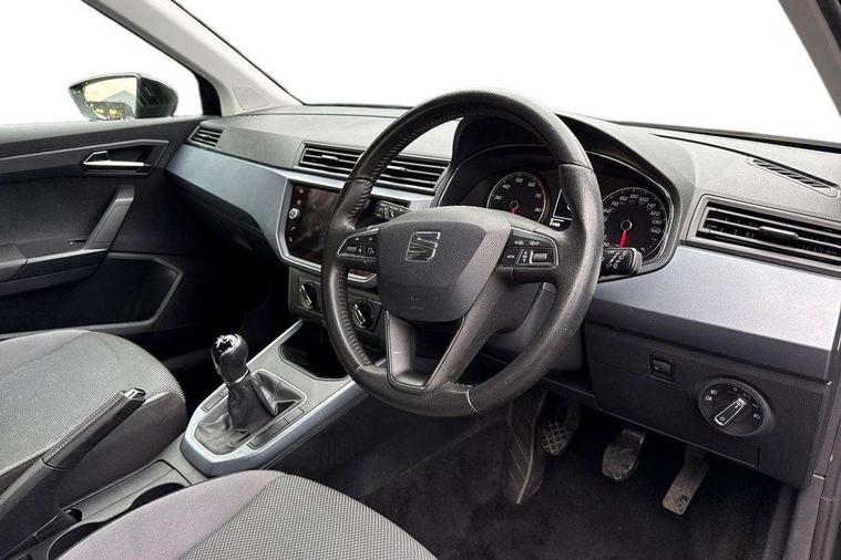'Lights On' Reminder warning buzzer, Cruise control, Digital clock, Electric speed sensitive power steering, Front assistant collision mitigation, Full Link Smartphone Integration with Mirror Link, Apple Car Play, Google Android Auto, Low fuel warning light, Outside temperature display, Rear parking sensor, RPM counter, Trip computer, Comfort suspension, 6 speakers, Bluetooth interface for hands free and audio streaming, DAB Digital radio, Steering wheel mounted audio controls, Anti theft roof antenna, Automatic activation of hazard warning lights, Automatic headlights, Black roof rails, Black window surrounds, Body coloured bumpers, Body coloured door handle inserts, Chrome grille surround, Electric adjustable door mirrors, Electric front/rear windows with one touch/auto up/down, Electric headlight adjustment, Front fog lights with static cornering function, Halogen headlights, Hidden exhaust pipe, LED daytime running lights, LED licence plate lighting, LED tail lights, Rear fog lights, Rear window wash/wipe, Visible VIN plate, Windshield wiper with intermittent control and potentiometer, 2 cupholders, 3 rear height adjustable headrests, 60/40 split folding rear seat, Active head restraints, Air conditioning, Ambient interior lighting, Card holder, Cloth upholstery, Double boot floor, Driver and passenger sunvisors, Driver/front passenger seat height adjustment, Dust/pollen filter, Footwell ambient lighting, Front courtesy lights, Front reading light, Gear shift indicator, Height/reach adjustable steering column, Illuminated boot, Instrument lighting with brightness control, Isofix attachments on rear seats, Leather handbrake, Leather steering wheel and gear knob, Connectivity pack plus - Arona, 3 point seatbelts on all rear seats, ABS+EBA, Child locks on rear doors, Driver/Front Passenger airbags, Electronic stability control, Front and rear seatbelt reminder, Front side/curtain airbags, Height adjustable active front headrests, Hill hold control + Tyre Pressure monitor, Multi-Collision braking, Passenger airbag deactivate switch, Tiredness recognition system, Traction control, 2 folding remote keys with window open/close function, Immobiliser, Locking wheel bolts, Remote central locking + deadlocks, Interior chrome line trim, 17" Dynamic alloy wheels,