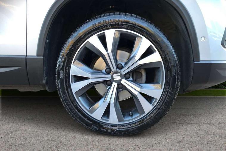 8" Digital cockpit, Colour multi-function on board computer display, Cruise control system with speed limiter, E-call, Outside temperature gauge, PAS, Self parking functionality (includes front and rear parking sensors), Start/stop system, Tailgate, Trip computer, Wireless full link smartphone integration, Wireless phone charger, Steering wheel mounted audio/phone controls, Black wheel arch surrounds, Body colour bumpers, Chrome front grille frame, Chrome roof rails, Chrome side window trim, Daytime running lights, Door mirrors with welcome light silhouette, Dynamic headlight range control with self adjusting whilst driving, Electric adjustable/heated/folding door mirrors, Front and rear electric windows, Full LED headlamps with lens and LED front fog lamps with cornering function, LED rear tail lights with dynamic indicators, Rear fog lights, Rear side wing doors, Rear wash/wipe, Simulated exhaust pipes, Third brake light, Variable front intermittent wipers, 12V socket in front, 3 seat bench in 2nd row, 60/40 split folding rear seat, Cloth upholstery with front comfort seats, Drawer under right front seat, Dual zone climate control, Front and rear head restraints, Front centre armrest, Front seat back storage pockets, Height adjustable driver and passenger seat with lumbar adjustment, ISOFIX points in outer rear seats with top tether anchorage points, Leather steering wheel and gear knob, Rear armrest and easy back seat release mechanism from boot, Single front passenger seat, Interior lighting pack - Ateca, Navigation system pack with DAB - Ateca, 3x3 point rear seatbelts, ABS, Traction control system (TCS), Electronic stability control (ESC) and Electronic differential lock system (XDS), Airbags - Driver and front passenger airbag with deactivation, front side, two curtain and driver's knee airbags, Electric parking brake with auto hold function, Front and rear seatbelt reminder, Front assist with autonomous emergency braking, Hill hold control, Manual rear child locks, Single tone horn, Tiredness recognition system, Traction control, Tyre pressure monitoring system, Alarm, Keyless entry, Locking wheel bolts, Remote central locking, Chrome interior detailing, 18" Performance machined alloy wheels 36/2 in nuclear grey,