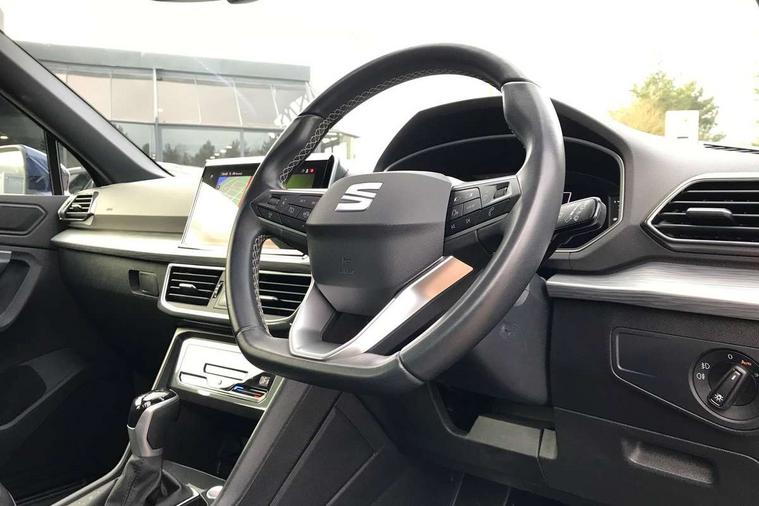 'Lights On' Reminder warning buzzer, 10.25" digital cockpit with multi function display, Adaptive cruise control with speed limiter, Bluetooth audio streaming with handsfree system, Digital clock, e-Call (emergency call), Front assist city emergency braking and pedestrian protection, Full Link Wireless Smartphone Integration with Mirror Link, Apple Car Play, Lane assist, Low fuel warning light, Outside temperature gauge, Power assist steering, RPM counter, Seat connect with safety, service, remote and online, SEAT Drive profile-4 different modes, progressive steering, 4Drive versions with off-road/snow, steering response, throttle response, gear shifts mode, Self parking functionality (includes front and rear parking sensors), Tailgate, Top view camera, Trip computer, Wash water level indicator, Comfort suspension, XDS electronic differential lock, Navigation system with 9.2" colour touchscreen with proximity sensor, 3D Map display, DAB, AM/FM Radio, 3 USB (type C), Aux-in, 8 speakers, SD card, Steering wheel mounted audio/telephone controls, USB (type C) cable for Apple and Android compatibility, Auto dimming rear view mirror, Auto headlights with automatic coming and leaving home function, Automatic headlight adjustment, Black bumpers with chrome detail, Body colour door mirrors and handles, Chrome front grille frame, Chrome roof rails, Chrome window trim, Coast to coast lighting, Dark tinted rear windows, Electric adjustable/heated/folding door mirrors with memory, Electric front/rear windows, Front halogen fog lights with cornering function, Fuel door linked to central locking, Full LED headlights with LED rear lights, Hidden exhaust pipe, Illuminated aluminium front door sill with trim logo, LED daytime running lights, LED licence plate lighting, LED third brake light, Rain sensing wipers, Rear fog lights, Rear side wing doors, Rear wash/wipe, Welcome lighting, 2 individual 3rd row seats, 3 seat bench in 2nd row, 3 zone climate control, Ambient spot lighting and front footwell illumination, Black interior roof, Centre armrest in front with air outlet in rear, Driver and passenger sunvisor with covered and illuminated mirror, Driver's electric lumbar adjustment, Easy fold rear seat system - second and third row, Electric driver's seat with memory, Forward and backward adjustable seats 2nd row, Four cargo rings in the boot, Front cupholders, Front passenger seat lumbar adjustment, Front seat back storage pockets, Gear shift indicator, Heated front and outer rear seats, Height adjustable front headrests, Height adjustable passenger seat, Illuminated boot, Illuminated glovebox, Instrument lighting with brightness control, ISOFIX points in outer 2nd row seats and front passenger seat with top tether anchorage points, Leather gear knob, Leather upholstery, Leather wrapped multifunction steering wheel, Luggage compartment floor with split function, Multicolour ambient lighting in front and rear door panels + LED lights in interior door handles, Rear armrest and easy back seat release mechanism from boot, Rear head restraints, Single front passenger seat, Sliding boot cover, Sports front seats, Three 12V sockets, 3x3 point rear seatbelts, ABS, Active front head restraints, Driver/front passenger airbag, Drivers knee airbag, Electronic parking brake with auto hold, Electronic stability control, Front passenger airbag deactivation, Front side airbags, Hill hold control, Manual rear child locks, Seatbelt reminders for all seats, Tiredness recognition system, Traction control, Two curtain airbags, Tyre pressure monitoring system, Alarm, Keyless enter and go with electric tailgate with virtual pedal, Locking wheel bolts, Power locking and remote control with two foldable keys and opening boot selector, Chrome interior detailing - door and dashboard decorative inserts, 20" Nuclear grey supreme machined alloy wheels, Tool kit,