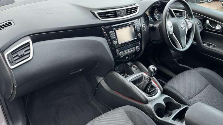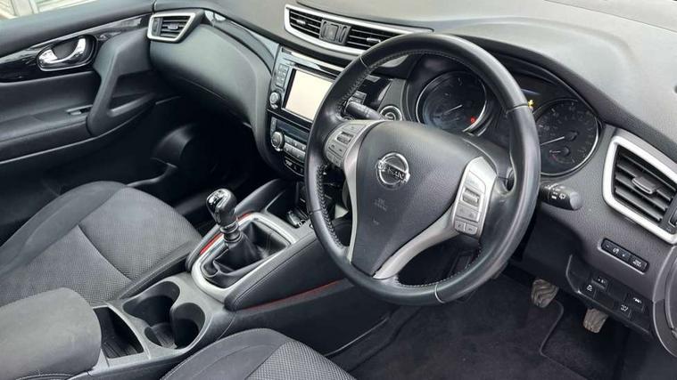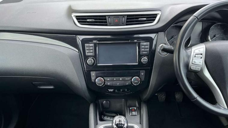 5" TFT driver information centre, 7" touch screen, Around View Monitor, Bluetooth phone integration system, Cruise control, Front and rear parking sensors, Lane departure warning system, Nissan connect sat nav system, Push button starter, Service interval indicator, Speed limiter, Speed sensitive power steering, Traffic sign recognition, Trip computer, Diesel particulate filter, 6 speakers, DAB radio/CD player, Steering wheel mounted audio controls, USB/aux input socket, 2 speed wipers+variable intermittent wipe, Automatic headlamp activation, Black honeycomb front grille, Body colour bumpers, Body colour door mirrors and handles, Chrome window surround, Electric folding and heated door mirrors, Electric front/rear windows, Front fog lights with chrome surrounds, High beam assist, Interior mirror with auto anti dazzle, LED daytime running lights, Rain sensor windscreen wipers, Rear privacy glass, Rear wiper, 12V socket, 60/40 split folding rear seat, Ambient interior lighting, Cloth upholstery, Driver's lumbar support, Driver/passenger front seatback pockets, Dual zone climate control, Footwell ambient lighting, Front armrest, Front cupholders x 2, Front headrests, Front seat belt pre-tensioners with load limiters, Height adjustable driver's seat, Height adjustable passenger seat with lumbar support, Illuminated glovebox, Isofix child seat preparation, Leather gearknob, Leather steering wheel, Luggage area divider, Map reading lamp, Pollen filter, Rake/reach adjustable steering wheel, Rear armrest with 2 cupholders, Rear headrests, ABS, brake assist and EBD, Active Trace Control, Child locks on rear doors, Curtain airbags, Driver/front passenger airbag, Electronic parking brake, ESP + traction control, Forward emergency braking, Height adjustable front seatbelts, Hill start assist, Side airbags, Three 3 point rear seatbelts, Tyre pressure monitoring system, Warning triangle and first aid kit, Alarm, Immobiliser, Intelligent Key, Remote central locking, Tyre puncture repair kit,
