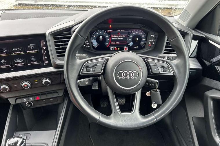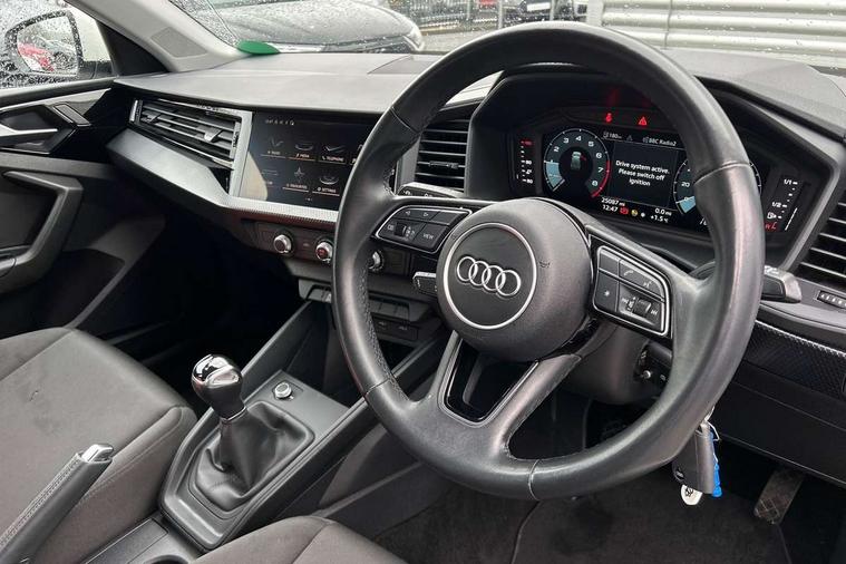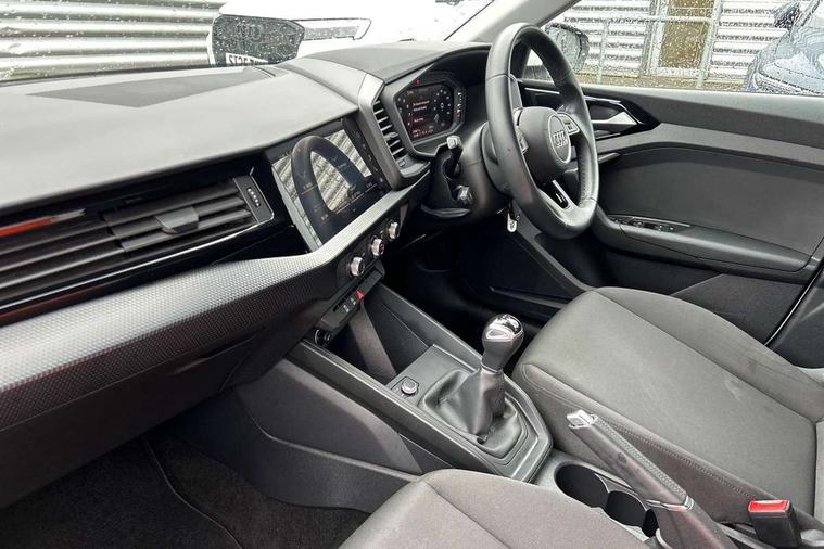 10.25" Digital instrument cluster display classis style instrument dials + speed, odometer, time, outside temperature, telephone menu + fuel level warning, Audi smartphone interface with connect compatible smartphone via USB directly MMI display + Nav, music, third party apps controlled via MMI controller, Automatic start/stop system, Bluetooth interface, Driver's information system, Electromechanical power steering, Emergency e-call, Emergency services call system, Lane departure warning system, Service interval indicator, Speed limiter, Voice control system, Washer fluid level indicator, Dynamic suspension, 1 x SDXC card reader, 2 x USB type C connection points, 6 passive loudspeakers, DAB Digital radio, MMI radio plus with 8.8" colour MMI display screen and MMI touch, Auto dimming rear view mirror, Body coloured bumpers, Body coloured door mirrors, Electric front and rear windows, Electrically adjustable, heated, folding door mirrors with integrated LED side indicator, Front side air inlets with front spoiler lip and rear diffuser in matt black grained, Heat insulating glass windscreen and side windows, Heated rear windscreen, High level LED brake light, LED headlights with LED rear lights + dynamic rear indicators + headlight adjustment and high beam, turning light + LED daytime running lights, Radiator grille in matt black, Rain and light sensors, Rear fog lights, Rear side wing doors, Rear wing door, Rear wiper, 12V socket in centre console with two cup holders, 3 rear seats with headrests, 3 seat bench in 2nd row, 3 spoke leather multifunction plus steering wheel, 40:60 Split folding rear seat or folded fully, Air vents, door handle recesses and centre console in black, Delta cloth upholstery, Driver and passenger seat with manual height adjust with forward and backwards adjustment, Front head restraints, Front passenger seat, Front/rear floor mats, Height and reach adjustable steering wheel, ISOFIX child seat mounting for front passenger and outer rear seats including top tether attachment point of outer rear seats, Leather gear knob with aluminium trim, Leatherette handbrake grip, Luggage compartment light with front and rear reading lights, Manual air conditioning, Titanium grey cloth headlining, Luggage compartment pack - A1, 3x3 point rear seatbelts, Audi pre-sense front with pedestrain and cyclist recognition, Brake assist function, Driver and front passenger airbag with front side and head airbags, Electronic Stability Control including ABS, EBD, ASR and EDL, Front passenger airbag deactivation switch, Hill hold assist, Manual rear child locks, Seatbelt height adjustment for front seats, Seatbelt monitoring, Tyre pressure warning light, Warning triangle and first aid kit, Anti theft alarm, Anti theft wheel bolts and loose wheel warning, Immobiliser, Remote central locking with 2 foldaway keys, Black inlays polygon structure, 15" 5 arm design alloy wheels,