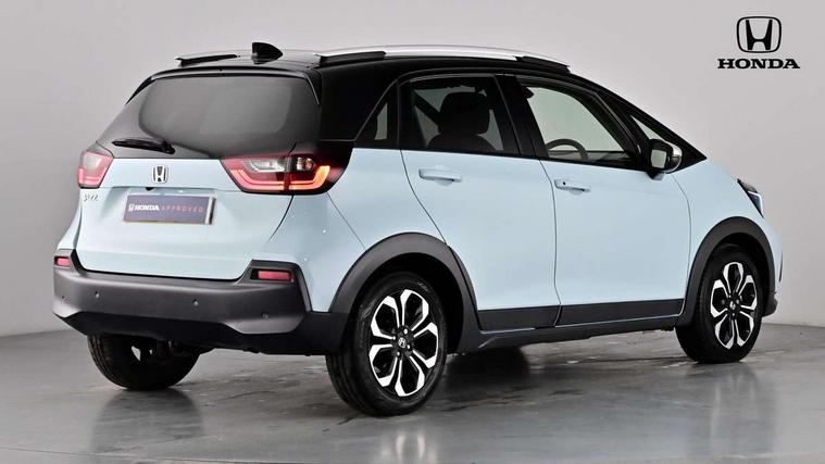 Adaptive cruise control, Adjustable speed limiter, Agile handling assist, Bluetooth hands free telephone connection, Econ mode, Electric power steering wheel with variable gear ratio steering, Emergency stop signalling system, Forward collision warning, Front and rear parking sensors, Honda CONNECT with HERE Navigation + 9" touchscreen, AM/FM/DAB/Apple Carplay and android auto, Idle stop, Intelligent speed limiter, Lane departure warning system, Lane keep assist system, Low speed following, Multi-information display, Rear view camera, Road departure mitigation, Traffic sign recognition, Vehicle stability assist, 'Shark fin' mobile antenna, 2 USB sockets in rear, 2x USB Front socket (1 data & 1 charge), Premium audio with 8 speakers, front tweeter, centre speaker, Remote audio controls on steering wheel, Subwoofer, Aspheric door mirrors, Auto wipers, Automatic headlights with on/off timer, Coming/leaving home function, Body colour door handles, eHEV emblem, Electric adjustable door mirrors, Electrically folding door mirrors, Exclusive styling includes Front and rear bumper, Front fog garnish, Black fender, side sill garnish, Front and rear electric windows, Heated door mirrors, High beam assist, LED daytime running lights, LED front fog lights, LED Headlights, LED rear lights, Privacy glass, Roof rails, Silver door mirrors, Single exhaust tailpipe, 60/40 split rear bench seat, Cargo net hooks, Climate control air conditioning, Driver and front passenger seat armrests, Driver and passenger front seat pockets, Driver's seat height adjustment, Fabric/Water repellent upholstery, Front accessory power socket, Front head restraints, Front map lights, Front/rear courtesy lights, Heated front seats, Isofix child seat restraint mechanism, Isofix points, Leather gearshift knob, Leather steering wheel, Magic seat flexibility system, Paddle shift controls, Plating interior door handles, Rear head restraints, Rear parcel shelf, Sunvisors with vanity mirrors, Tilt/telescopic adjustable steering wheel, Tonneau cover, Trunk light, 3x3 point rear seatbelts, Anti-lock braking system (ABS), Brake assist function, Brake hold function, Collision mitigation braking system, Deflation warning system, Driver knee airbag, Driver SRS airbag (single stage inflation), Driver/Front Passenger airbags, Electric parking brake, Front and rear side curtain airbag, Front side airbags, Hill start assist, Passenger SRS airbag cut-off device, Rear side airbags, Whiplash lessening front headrests, Front seat belt with emergency locking retractor, Honda super locks, Immobiliser, Mirrors and windows key fob operation, Remote central locking with 2 remote folding keys, Security alarm, Smart entry + Smart start, Soft pad mesh interior panels, 16" AL Crosstar alloy wheels in mat berlina black, Tyre repair kit,