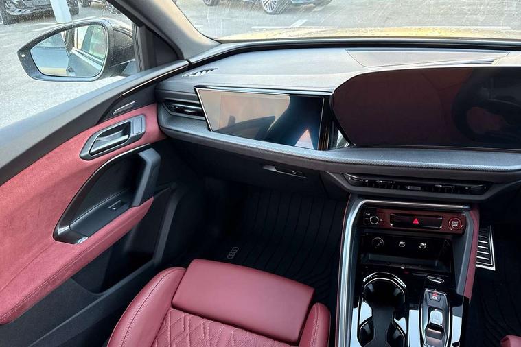 Adaptive cruise assist plus with steering intervention, Advanced driver attention alert, Audi application store, Audi connect emergency call and service, Audi digital key, Audi drive select, Audi smartphone interface, Audi virtual cockpit plus with 11.9" OLED colour display, Camera based traffic sign recognition, Fatigue monitor, Front cross traffic intersection assist, Garage door opener, Lane change assistant with exit warning system, rear cross traffic alert and rear turn assist, Lane departure warning with emergency assist, MMI 10.9" front passenger touch display, MMI navigation plus with high resolution 14.5" OLED touchscreen colour display, Park assist plus, Parking system plus with 360 display, PAS, Reversing camera, Swerve assist and turn assist, Top view camera, Traffic sign based speed limiter, S adaptive air suspension, 2 USB-C ports in both the front and rear, DAB Digital radio, Smartphone compartment with wireless charging, Acoustic glass for front door windows, Active digital light signatures - Six additional combinations of active daytime running light signature, Auto dimming rear view mirror, Coming/leaving home lighting function, Digital OLED tail lights including communication light, Electrically adjustable heated and folding + automatically dimming exterior mirrors, Exhaust tailpipes in dark chrome, Front and rear electric windows, Front door sill trims with aluminium inlays, illuminated with 'S' logo, Full body paint finish, Headlight cleaning system, Heated rear window, High beam assist, High gloss window surrounds, Inlay and front air inlets in matt anthracite chrome, Logo projection light in exterior mirrors, Matrix LED headlights, Memory function for door mirrors, Panoramic sunroof, Privacy glass, Projection light for rear window, Radiator grille in phantom black, Rear and side windows with heat insulating glass, Rear honeycombe grille in matt black with inlay in matt anthracite chrome, Rear side wing doors, Rear wash/wipe, Red S rhombus badging with 'S' lettering on rear, S exterior styling, Towbar preparation, Windscreen with acoustic glazing, 3 rear head restraints, 3 seat bench in 2nd row, 3 spoke leather steering wheel with multi-function buttons with touch control, flattened on top and bottom, with S badging and contrast stitching, 40:20:40 split folding rear seat bench with centre armrest and cup holders, Comfort centre armrest, Deluxe 3 zone electronic climate control, Electric steering wheel adjustment, Electrically adjustable front seats with memory function for driver's side, Front and rear floor mats, Front seat ventilation, Front sport seats with integrated head reastrains, Headlining in black cloth, Heated front seats, Heated outer rear seats, Heated steering wheel, i-Size child seat mounting on the front passenger side and outer rear seats, i-Size and top tether on the outer rear seats, Interior trim in aluminium look, Luggage compartment lid, electrically opening and closing, Perforated fine nappa leather with diamond stitching incl. ventilation and massage function for front seats, Pneumatically adjustable lumbar support with massage function for front seats, Single front passenger seat, Softwrap in Dinamica, Stainless steel pedals and footrest, Steering wheel grips in perforated leather and shift paddles, Ambient lighting package plus - Q5, Black styling package plus - Q5, Sound and Vision pack - Q5, Storage and luggage compartment pack - Q5, 3x3 point rear seatbelts, ABS, Acoustic vehicle alerting system, Convenience key with safelock, Driver and front passenger airbag with passenger airbag deactivation, Electric child safety locks, First aid kit with warning triangle and high visibility vests, Front emergency brake assist, Front side airbags with head airbag system and front interaction airbag, Hill hold assist, Occupant detection in rear seat area, Proactive passenger protection system for front, sides and rear, Red brake calipers, Side airbags in front and rear with head airbag system and front interaction airbag, Tyre pressure loss indicator, Anti theft alarm, Anti-theft wheel bolts, Remote control key with SAFELOCK and keyless go, Accent surfaces and control buttons in gloss black, Black dashboard with contrast stitching, Steel grey seat stitching, Upper and lower interior elements in dinamica microfiber, Tyre repair kit,