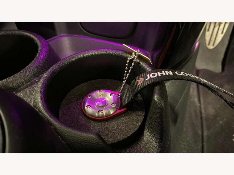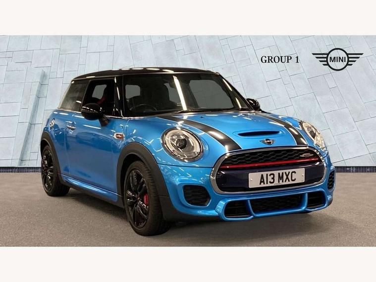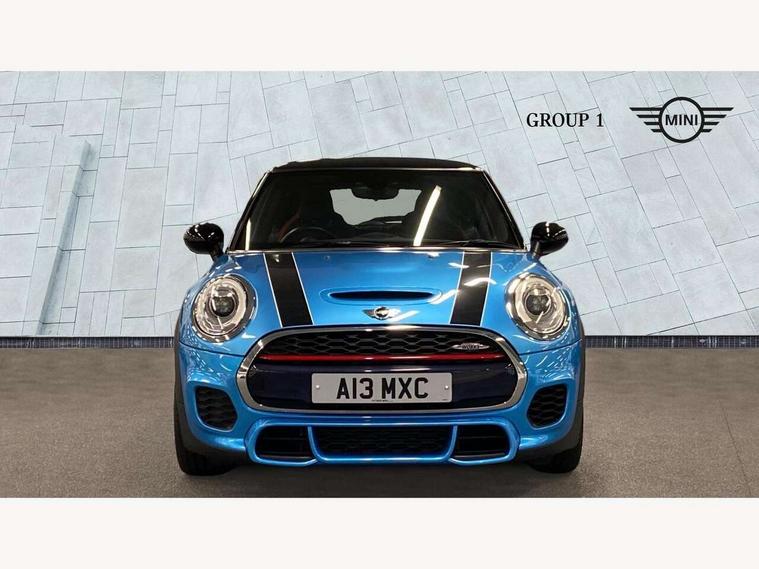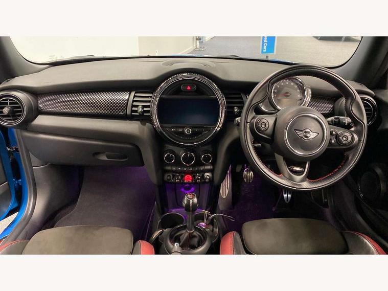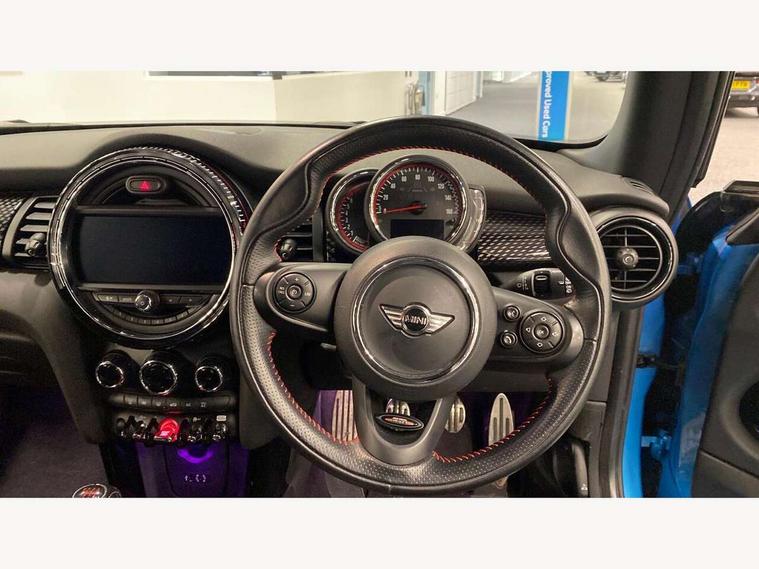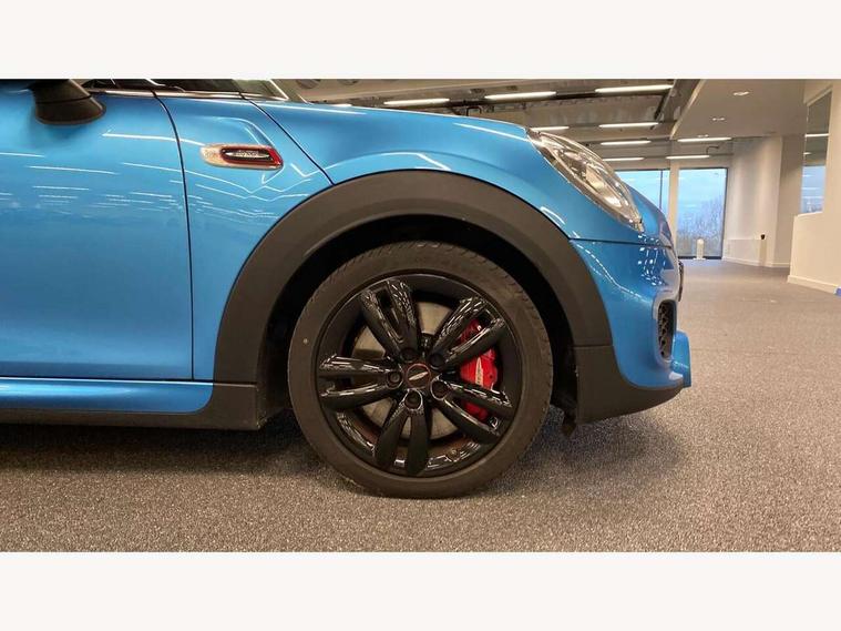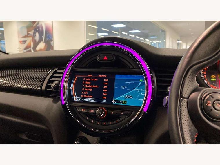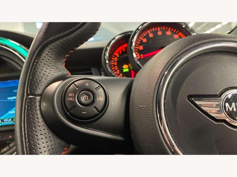 Acoustic seat-belt warning, Brake fluid level warning light, Brake pad wear indicator warning light, DTC - Dynamic traction control, Exterior temperature gauge, Intelligent emergency call, MINI Driving Modes - centre toggle switch to control driving setting (sport, mid and green), MINI TeleServices, Oil level indicator, On board computer, Push button starter, Service interval indicator, Servotronic PAS, Electronic differential lock, Performance Control, Auxiliary input socket, DAB digital radio module, 2 speed wipers+intermittent wipe, Anti dazzle mirror, Anti trapping/one touch open close front windows, Body colour scoop integrated into engine- compartment lid, Body coloured bumpers, Chili red grille bar, Chrome bezels around rear lights and headlights, Chrome door handles, Chrome plated fuel cap, Chrome plated trim on bottom edge of window, Chrome strip on lower grille, Electric front windows, Electrically adjustable door mirrors, Extended wheel arches, Follow me home headlights, Green tinted heat insulating glass, Heated door mirrors/heated windscreen washers, Heated rear window with auto timer, High gloss black tailgate, Honeycomb radiator grille, John Cooper Works roof spoiler, LED fog lights, Metal look door sill finishers, Rear apron, Rear wiper, Side scuttles, Twin chromed exhaust pipes, White indicator lights, 2 rear head restraints, 4 boot load lashing points, 6 way manually adjustable passenger seat, 6-way manually adjustable driver's seat, Active carbon filter, Air recirculation system, Anthracite headlining, Auxiliary socket in centre console storage compartment, Centre console storage, Driver's seat height adjuster, Driver/passenger sunvisors, Easy entry seats, Front and rear cupholders, Front head restraints, Front interior light, Front passenger grab handle, Front seat backrest storage nets, Front sports seats, Gear/selector and handbrake in artificial leather, Internal chrome door handles, Isofix child seat preparation, Luggage compartment lighting, Multifunction steering wheel, Passenger seat height adjuster, Reach + rake adjustable steering column, Rear grab handles, Rear storage trays, Split folding rear seats, Storage compartments in doors, Toolkit in luggage compartment, Vanity mirrors, 3 point seatbelts, ABS/EBD, ASC+T, Brake calipers in red, Cornering brake control (CBC), Crash Sensor - activates hazard/interior lighting + unlocks doors, Driver and passenger airbags, Driver/front passenger side airbags, DSC - Dynamic Stability Control, Fuel cut off safety device, Head airbags, Hill start assist, Manual passenger airbag deactivation function, Seatbelt pretensioners, Tyre pressure warning, Ventilated front disc brakes, Drive away door locking, Locking wheel bolts, Remote central locking/doors+fuel cap+tailgate, Second remote key, Thatcham category 1 alarm + immobiliser,