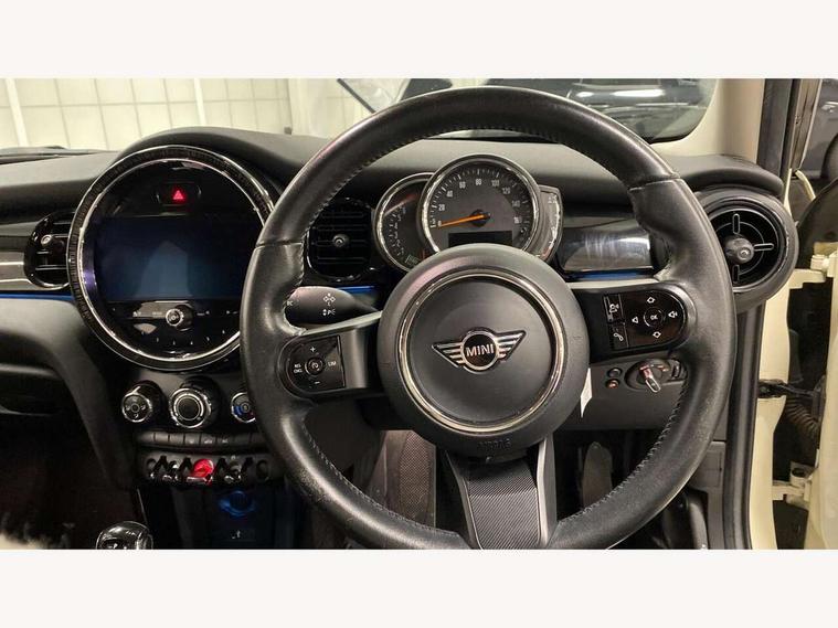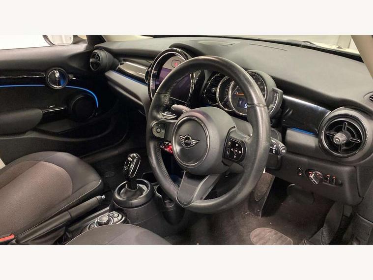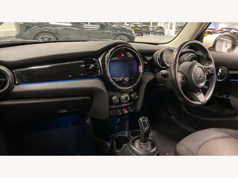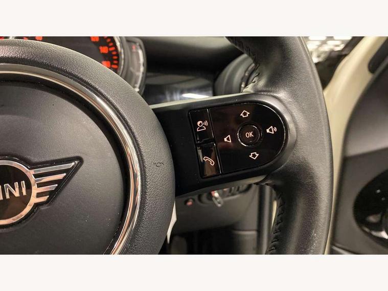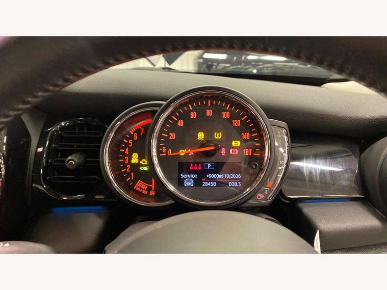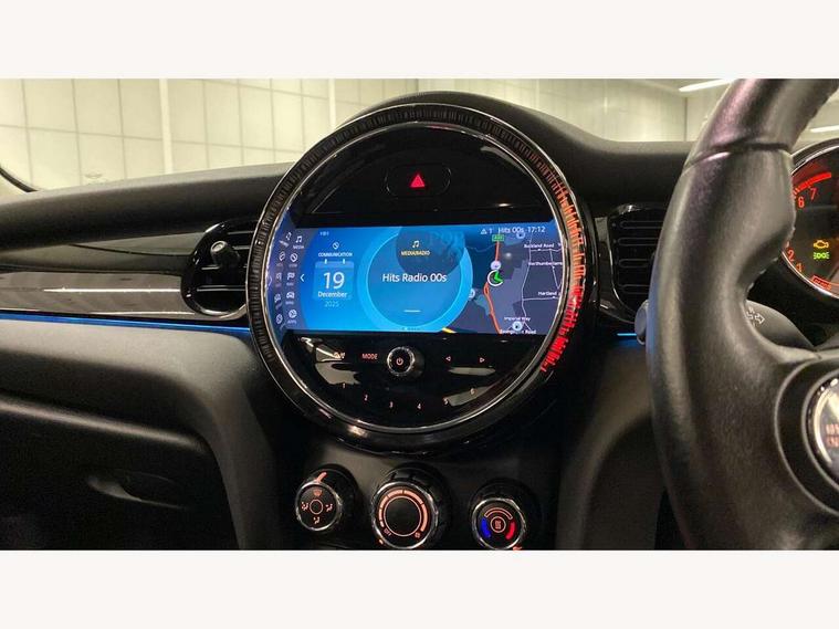 Apple CarPlay, Automatic start/stop function with brake energy recuperation, Compatible mobile phone bluetooth with audio streaming, Cruise control with brake assist, Electro-mechanical speed dependant steering assistance, Flexible car sharing preparation, Instrument cluster, Mini E-call, MINI TeleServices, On board computer, Service interval indicator, Double Vanos system, Fully variable valve control, Gear change indicator display, High precision injection, Performance Control, Steptronic transmission with double clutch, 8.8" touchscreen with LED ring, FM tuner and DAB digital radio, 3rd brake light, Automatic headlight activation switch, Body colour fuel filler cap, Body colour roof and mirror caps, Chrome border high gloss black slats radiator grille, Dynamic brake lights, Electric front+rear windows, Exhaust tailpipe, Heated rear window, Heated windscreen washer jets, LED headlight with closed ring and daytime driving lights, Metal door sill strips with MINI imprint, Rain sensor window wipers, Rear fog lights, Rear LED lights with union jack design, Rear side wing doors, Rear window wiper, Side scuttle panel with integrated indicator, Sun/heat protection glass, White indicator lenses, 12V Accessory socket in centre console, 3 seat bench in 2nd row, 4 lashing eyes in luggage compartment, 60/40 split folding rear seat, Ambient lighting, Carbon black colour line - Knee roll and door armrest, Chrome interior highlights, Cupholders, Front and rear head restraints, Front and rear isofix with front passenger airbag deactivation, Front and rear velour floor mats, Glove compartment, Height and length steering column adjustment, Interior lighting with 12 different colours across the dashboard, underneath door bezel with illuminated laser-engraved design on central display, Leatherette gearshift lever and handbrake gaiters, LED reading lights, vanity mirror lights, front foot well light and spotlight on front seats, Manual air conditioning, Mechanical seat adjustment - forward/back & backrest for front seats and driver seat height adjust, Multifunction steering wheel, Satellite grey headlining including grab handles and clothes hooks, Single front passenger seat, Sport leather steering wheel with speed limiter and audio/communication controls, Storage compartments in doors, Sunvisors with vanity mirrors, 3 point seatbelts on all five seats, 6 Airbags - front, side, head and seat belt tensioners, Anti-lock braking system (ABS), Child locks on rear doors, DSC - Dynamic Stability Control, Front and rear disc brakes, Hill start assist, Single tone fanfare horn, Tyre pressure monitoring system, Alarm system with tilt sensor, monitoring doors, bonnet interior and tailgate, Electronic vehicle immobiliser, Start/stop toggle with keyless go, Piano black interior trim, Tool kit, Tyre repair kit,