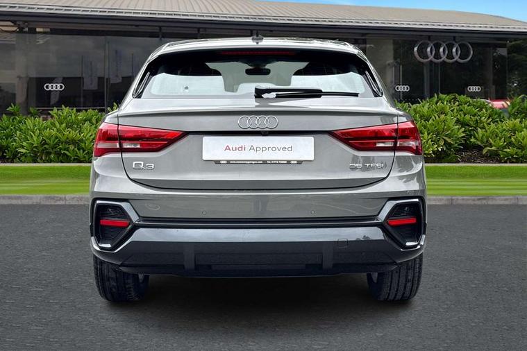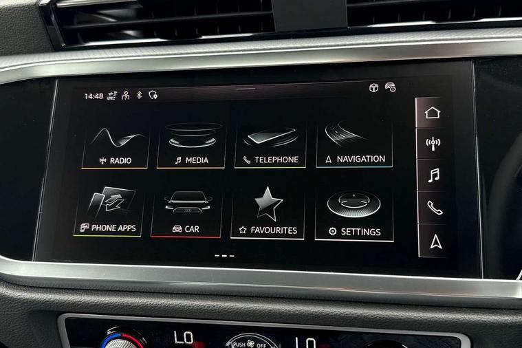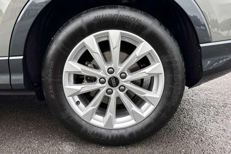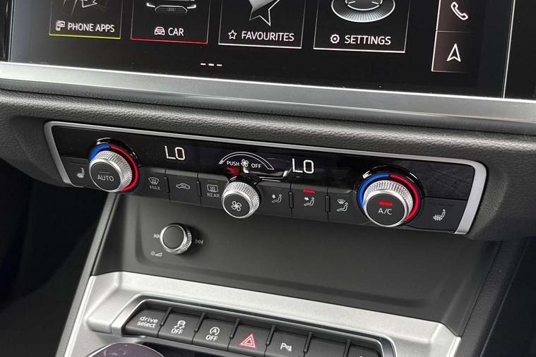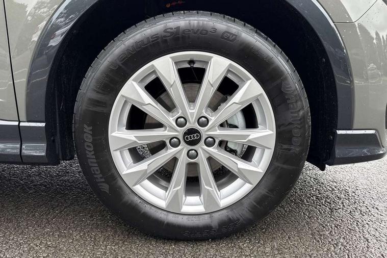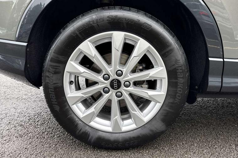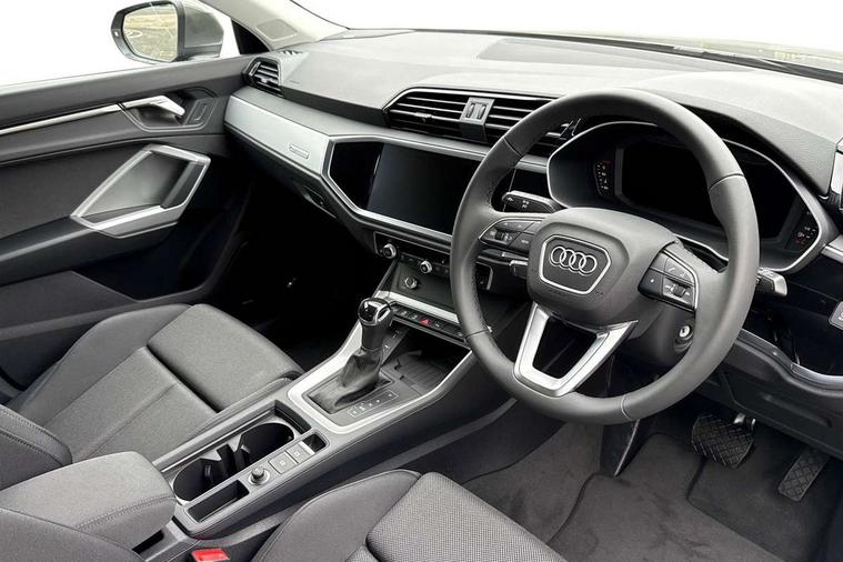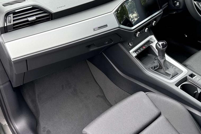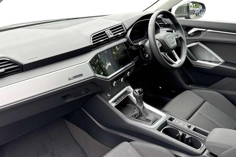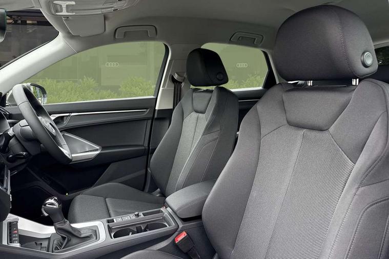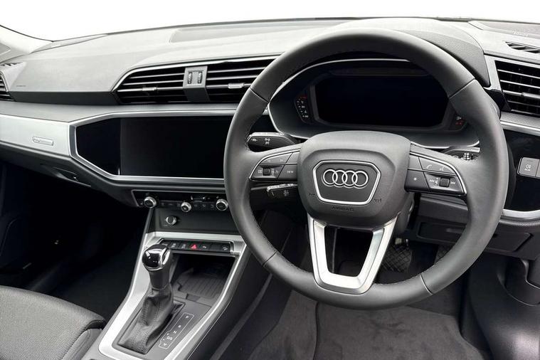 Audi connect safety and service, Audi drive select, Audi lane departure warning, Audi Virtual Cockpit - 10.25" display, Bluetooth interface, Camera based traffic sign recognition, Distraction and Fatigue warning, Legal emergency call, MMI Navigation Plus with high resolution 10.1 inch touchscreen colour display, Power operated tailgate, Progressive steering, Service interval indicator, Smartphone interface includes wireless Apple carplay/Android Auto, Start stop system with recuperation, Voice control system with natural language interaction, Standard suspension, 2 USB-C ports with charge and data functions, 6 passive loudspeakers, DAB digital radio module, Acoustic windscreen, Aluminium window trim, Auto dimming door mirrors, Auto dimming frameless rear view mirror, Bumpers and underbody protection in contrasting manhattan grey paint finish, Diffuser grille in grained matt black, Diffuser trim in manhattan grey metallic, Door sill trims with illuminated aluminium inlay, Electrically folding, adjustable and heated door mirrors with integrated LED side indicators and kerb view function for passenger side, Front and rear electric windows, Front fog lights, Front side air inlets in Manhattan grey metallic, Grille surround in aluminium silver matt, High gloss black finish B and C pillars, Honeycomb design radiator grille in matt anthracite black, LED headlights with LED daytime running lights, LED third brake light, Rain and light sensors, Rear side wing doors, Rear wiper, Variable front intermittent wipers, 12V socket in rear centre console, 3 seat bench in 2nd row, 3 spoke multi-function leather steering wheel, 40:20:40 folding with manual adjustment for 60:40 forwards/backwards position and backrest angle, Black carpet mats, Dual zone electronic climate control, Electric lumbar support, Front and rear floor mats, Front and rear headrests, Front centre armrest, Height and reach adjustable steering wheel, ISOFIX child seat mounting for front passenger with airbag deactivation and outer rear seat including top tether attachment point for outer rear seats, Luggage compartment sill protection in stainless steel, Lunar silver cloth headlining, Manual front seats with height adjustment, Single front passenger seat, Non smoking pack - Q3, 3x3 point rear seatbelts, 6 airbags - Driver, front passenger, curtain and side windows, Audi pre-sense front with pedestrain and cyclist recognition, Electrically operated child locks on rear doors, Electromechanical parking brake, Electronic stabilisation control including ABS, ASR and EDL, Front seatbelt reminder, Hill descent control, Hill hold assist, Pre sense basic, Seatbelt monitoring, Tyre pressure warning, Warning triangle and first aid kit, Anti theft wheel bolts, Immobiliser, Remote central locking, Thatcham approved category 1 anti theft alarm, Aluminium look interior elements, Detail dashboard around MMI touch colour display in glass look, black with surround in aluminium look, Micrometallic silver inlay,