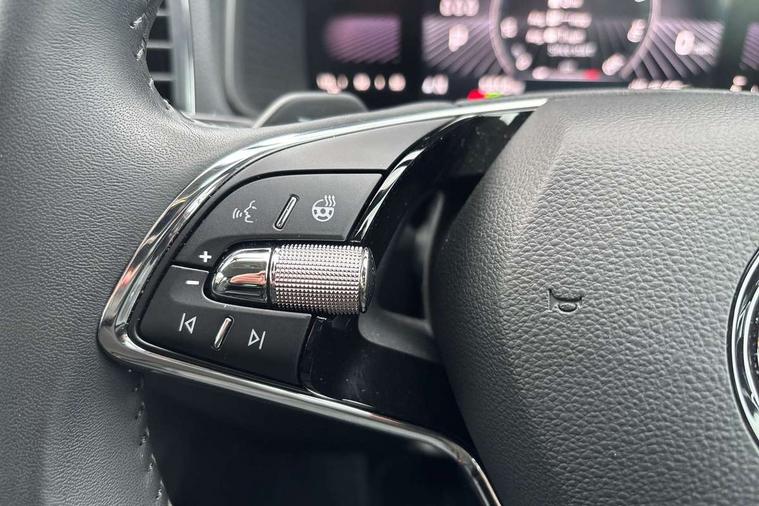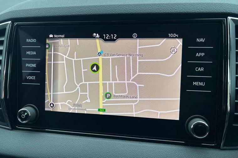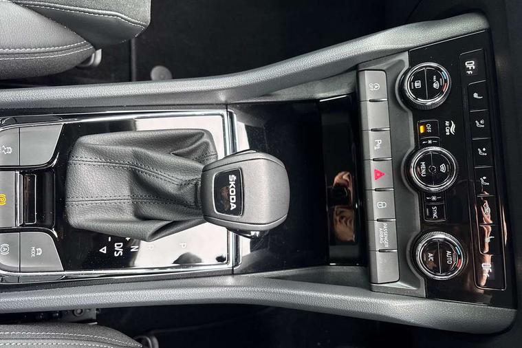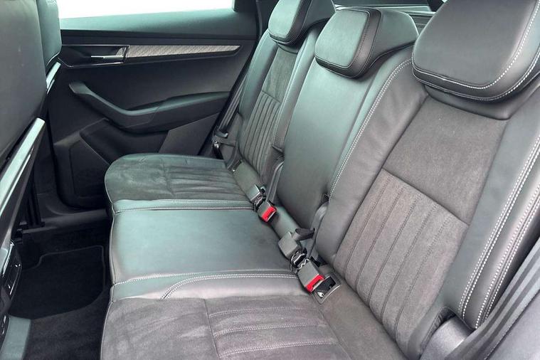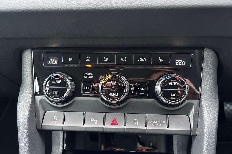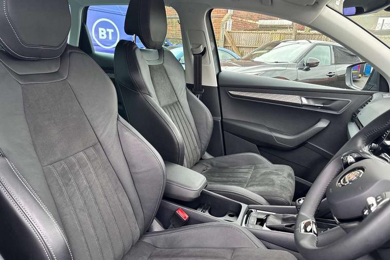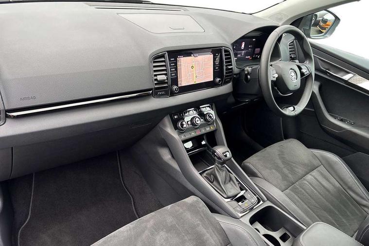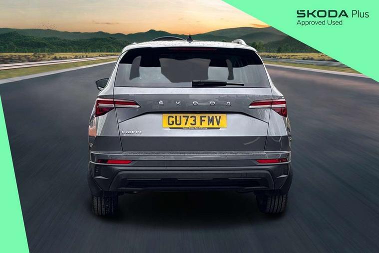 8" Digital display, Care connect, Driver fatigue sensor, Emergency services call system, Outside temperature gauge, Service interval indicator, SmartLink wireless for Apple and wired for Android, Start/stop system with regenerative braking, USB C Port x 2 in front centre console, 8 Speakers, DAB radio with Bluetooth, USB connection, Acoustic glass, Aero front windscreen wipers with intermittent function, Auto dimming rear view mirror with light and rain sensors, Black electric window control buttons, Body colour door mirrors and handles, Dynamic headlight range control with cornering light function, Electric front and rear windows with child proof lock, Heated rear windscreen, LED daytime running lights, LED rear lights with high functionality welcome effect and dynamic indicators, Light assistant (coming/leaving home/tunnel light), Plastic scuff plates, Privacy glass, Rear side wing doors, Rear spoiler, Rear window wiper with washer system and intermittent control, Safety reflectors on front doors, 1.5 litre bottle holders in driver and front passenger door panels, 12V socket in boot, 12v socket in front centre armrest with storage compartment and rear air vents, 2 spoke leather heated multifunction steering wheel with DSG paddles, 2 x Tablet holder, 3 rear height adjustable headrests, 3 seat bench in 2nd row, 4 foldable roof handles with rear coat hooks, Black floor carpet, Chrome inner door handles, Decorative door sills with KAROQ badging, Double sided boot floor, Foldable hooks in the boot, Front head restraints, Height adjustable front three point seats belts with tensioners, Height/reach adjust steering wheel, Ice scraper, Illuminated glovebox, Illuminated luggage compartment, Isofix child seat preparation for front passenger seat, Isofix child seat preparation outer rear, Manual lumbar support for front seats, Pen holder, Pollen filter, Rear boot cover, Rear reading lights, Rubbish bin door, Safety vest holder, Single front passenger seat, Storage box in upper central dashboard closed, Sunvisors with illuminated vanity mirrors, Textile floor mats, Ticket holder, VarioFlex seats with standard rear seat release, Boot pack - Karoq, Chrome roof rails + chrome pack - Karoq, Parking pack - Karoq, Automatic door unlocking in case of crash, Automatic fuel cut off in case of crash, Child locks on rear doors, Driver airbag, Electronic parking brake with auto hold function, Emergency rear braking signal, ESC including ABS, MSR, ASR, EDS, HBA, DSR, RBS, MKB and traction control, Front side airbags, Hill hold control, Knee airbags, Passenger airbag with switch-off function, Pedestrian monitor, Seatbelt reminder signalisation and pretensioner for all seats, Three point seatbelts rear, Two tone horn, Tyre pressure display, Tyre pressure monitor, Alarm with interior monitoring, back up horn and tilt sensor with safe function, Electronic engine immobiliser, Keyless entry and start/stop, Remote central locking with 2 remote folding keys, Chrome framed air vents, 18" Miran alloy wheels in black, Anti-theft wheel bolts protection, Storage on wheel cover, Tool kit,