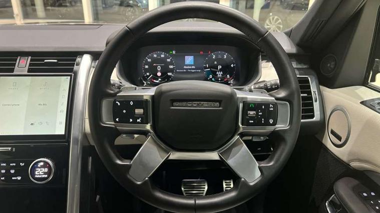11.4" touchscreen, 3D surround camera, Adaptive cruise control, Android Auto, Apple car play, Blind spot assist, Driver condition monitor, Electric power assisted steering (EPAS), Emergency services call system, Front and rear parking aid, Lane keep assist, Power inner tailgate, Push button start, Rear collision monitor, Rear traffic monitor, Remote, Remote boot release, Service interval indicator, Speed proportional steering, Sportshift selector, Stop/start system, Traffic sign recognition with adaptive speed limiter, Trip computer, Wade Sensing, Adaptive dynamics, Dynamic stability control, Electronic air suspension, Front axle open differential, Digital Audio Broadcast radio-DAB, Dynamic volume control, Pivi pro connected, USB/aux input socket, Acoustic laminated windscreen, Animated directional indicators, Auto dimming interior rear view mirror, Automatic headlight levelling, Automatic headlights, Body colour bumpers, Body colour door handles, Centre high mounted stop light, D300 badge, Electric heated/power fold memory door mirrors with approach lights and auto dimming driver side, Electric windows with one touch open/close and anti-trap, Heated rear window, Heated windscreen, LED darkend tail lights, Metal treadplates with R-Dynamic branding, Narvik black Discovery script, Privacy glass, Puddle lights, Rain sensing windscreen wipers, Rear fog lights, Rear side wing doors, Rear wash/wipe, Trailer stability assist, Variable intermittent wiper, 12V power sockets, 12V USB charging socket in loadspace, 2 seat bench in 3rd row, 3 seat bench in 2nd row, Central hinged twin lidded storage, Ebony morzine headlining, First and second row door bins, Footwell lights, Front and rear 12V with front USB, Front passenger seat isofix location point, In-facia storage, Isofix child seat preparation for front passenger seat, Loadspace cover, Loadspace Hook, Loadspace light, Lockable glovebox, Lower centre console storage, Luggage tie downs in loadspace, Multi function steering wheel, Overhead lighting console, Premium carpet mats, Rear ISOFIX, Shopping bag hook, Single front passenger seat, Storage glovebox, Sunvisors with illuminated vanity mirrors, Third row storage, Twin front cupholders with cover, USB with 12V socket in centre console, Online pack with data plan - Discovery, R-Dynamic black exterior pack - Discovery, 3x3 point rear seatbelts, Anti-lock braking system (ABS), Brake pre-fill technology, Cornering brake control, Curtain airbags, Customer configurable autolock, Driver and passenger airbags, EBD - Electronic brakeforce distribution, Electronic traction control, Emergency brake assist, Emergency braking, ESP, Front side airbags, Gradient acceleration control, Hill descent control, Hill launch assist, Power operated child locks, Rear airbags, Roll stability control, Seat belt reminder, Torque vectoring brake, Tyre pressure monitoring system, Immobiliser, Intrusion sensor, Keyless entry, Locking wheel nuts, Remote central locking, All terrain tyres,
