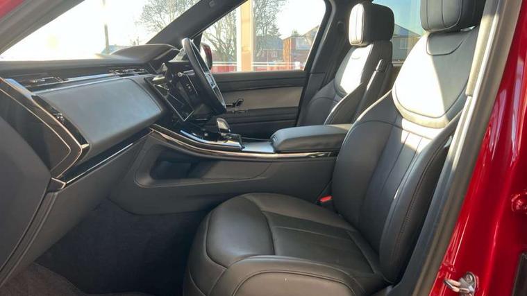 13.1" Touchscreen, 3D 360 degree surround camera with wade sensing, Adaptive cruise control with steering assist, Android Auto, Apple car play, Blind spot assist, Bluetooth connectivity streaming, Driver condition response, Eco mode, Front and rear parking aid, Interactive Driver display instrument cluster, Lane departure warning system, Lane keep assist, Push button start, Rear collision monitor, Rear traffic monitor, Remote, Traffic sign recognition with adaptive speed limiter, Trip computer, Wireless device charging, 8 speed automatic transmission, Adaptive dynamics, All wheel drive system, Automatic access height, Home charging cable, Public charging cable, Terrain Response 2, Twin speed transfer box, DAB Radio (Digital Audio Broadcasting), Incontrol protect - SOS emergency call with automatic collision detection, optimised assistance call and Incontrol remote app essential, Pivi pro connected, USB/aux input socket, Adaptive brake lights, Automatic headlight levelling, Automatic headlights, Centre high mounted stop light, Electric heated/power fold memory door mirrors with approach lights and auto dimming driver side, Electric windows with one touch open/close and anti trap, Flush deployable exterior door handles, Follow me home lighting, Front and rear recovery eyes, Headlight power wash, Heated rear window, Heated washer jets, Heated windscreen, Illuminated aluminium treadplates with Range Rover script, Integrated twin tailpipes, LED tail lights, Metal load space scuff plates, No badges, Rain sensing windscreen wipers, Rear animated directional indicators, Rear fog lights, Rear side wing doors, Rear wash/wipe, Remote window closing, Side repeater indicators in mirror, Trailer stability assist, Winter wiper park position, 3 seat bench in 2nd row, 60:40 seats with power recline and loadthrough, Air quality sensor, Auto air recirculation, Bright metal foot pedals, Centre console with armrest, Customer configurable single point entry, Driver's footrest, Easy boot loading, Ebony console door armrests and seatbelts, Electric adjustable steering column, Front and rear cupholders, Front door storage space, Front head restraints, Front map lights, Front seat back map pockets, Front stowage pocket, Front/rear passenger grab handles, Gearshift paddles, Heated steering wheel, Isofix child seat preparation, Loadspace cover, Loadspace Hook, Loadspace light, Loadspace mounting provisions, Lockable glovebox, Luggage tie-downs in loadspace, Multifunction steering wheel, Pollen filter, Power socket, Rear centre armrest, Rear head restraints, Rear ISOFIX, Single front passenger seat, Three 12V accessory power outlets, Upper secondary glovebox, Online pack with data plan - Range Rover Sport, 3 point seatbelts on all seats, Anti-lock braking system (ABS), Brake pre-fill technology, Configurable autolock, Cornering brake control (CBC), DSC - Dynamic Stability Control, EBD - Electronic brakeforce distribution, Electric parking brake, Electronic traction control, Emergency braking, Front seatbelt pretensioners, Front side airbags, Height adjustable front seatbelts, Hill descent control, Hill launch assist, Low traction launch, Occupant protection assist, Passenger seat occupant detector with front airbags, Power operated child locks, Roll stability control, Seatbelt warning, TPMS (Tyre pressure monitoring system), Immobiliser, Intrusion sensor, Keyless entry, Locking wheel nuts, Perimetric and volumetric anti theft alarm, Remote locking,