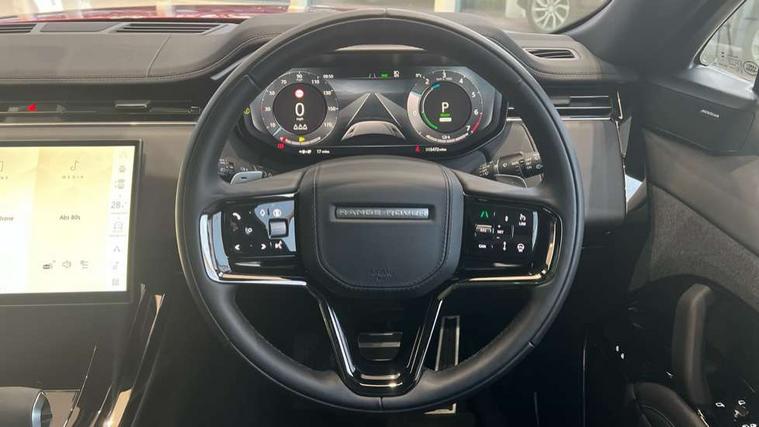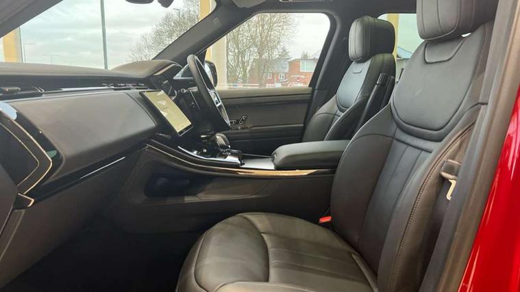 13.1" Touchscreen, 3D 360 degree surround camera with wade sensing, Adaptive cruise control with steering assist, Android Auto, Apple car play, Blind spot assist, Bluetooth connectivity streaming, Driver condition response, Eco mode, Front and rear parking aid, Interactive Driver display instrument cluster, Lane departure warning system, Lane keep assist, Push button start, Rear collision monitor, Rear traffic monitor, Remote, Traffic sign recognition with adaptive speed limiter, Trip computer, Wireless device charging, 8 speed automatic transmission, Adaptive dynamics, All wheel drive system, Automatic access height, Home charging cable, Public charging cable, Terrain Response 2, Twin speed transfer box, DAB Radio (Digital Audio Broadcasting), Incontrol protect - SOS emergency call with automatic collision detection, optimised assistance call and Incontrol remote app essential, Pivi pro connected, USB/aux input socket, Adaptive brake lights, Automatic headlight levelling, Automatic headlights, Centre high mounted stop light, Electric heated/power fold memory door mirrors with approach lights and auto dimming driver side, Electric windows with one touch open/close and anti trap, Flush deployable exterior door handles, Follow me home lighting, Front and rear recovery eyes, Headlight power wash, Heated rear window, Heated washer jets, Heated windscreen, Illuminated aluminium treadplates with Range Rover script, Integrated twin tailpipes, LED tail lights, Metal load space scuff plates, No badges, Rain sensing windscreen wipers, Rear animated directional indicators, Rear fog lights, Rear side wing doors, Rear wash/wipe, Remote window closing, Side repeater indicators in mirror, Trailer stability assist, Winter wiper park position, 3 seat bench in 2nd row, 60:40 seats with power recline and loadthrough, Air quality sensor, Auto air recirculation, Bright metal foot pedals, Centre console with armrest, Customer configurable single point entry, Driver's footrest, Easy boot loading, Ebony console door armrests and seatbelts, Electric adjustable steering column, Front and rear cupholders, Front door storage space, Front head restraints, Front map lights, Front seat back map pockets, Front stowage pocket, Front/rear passenger grab handles, Gearshift paddles, Heated steering wheel, Isofix child seat preparation, Loadspace cover, Loadspace Hook, Loadspace light, Loadspace mounting provisions, Lockable glovebox, Luggage tie-downs in loadspace, Multifunction steering wheel, Pollen filter, Power socket, Rear centre armrest, Rear head restraints, Rear ISOFIX, Single front passenger seat, Three 12V accessory power outlets, Upper secondary glovebox, Online pack with data plan - Range Rover Sport, 3 point seatbelts on all seats, Anti-lock braking system (ABS), Brake pre-fill technology, Configurable autolock, Cornering brake control (CBC), DSC - Dynamic Stability Control, EBD - Electronic brakeforce distribution, Electric parking brake, Electronic traction control, Emergency braking, Front seatbelt pretensioners, Front side airbags, Height adjustable front seatbelts, Hill descent control, Hill launch assist, Low traction launch, Occupant protection assist, Passenger seat occupant detector with front airbags, Power operated child locks, Roll stability control, Seatbelt warning, TPMS (Tyre pressure monitoring system), Immobiliser, Intrusion sensor, Keyless entry, Locking wheel nuts, Perimetric and volumetric anti theft alarm, Remote locking,