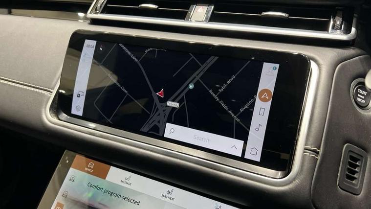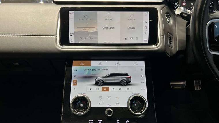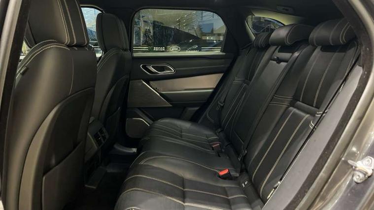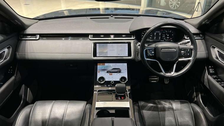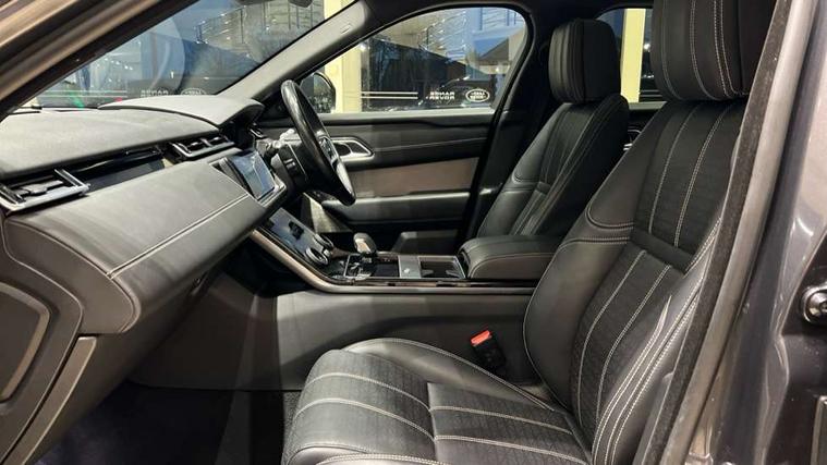 10" touch screen, Adaptive cruise control with steering assist, Android Auto, Apple car play, Blind spot assist, Bluetooth connectivity, Brake pad wear indicator warning light, Driver condition monitor, InControl remote, Interactive Driver display instrument cluster, Land Rover InControl apps, Lane keep assist, Pivi pro connected includes upgraded infotainment, smart settings, connected navigation pro, Nuance speech licence, Push button start, Rear collision monitor, Rear traffic monitor, Service indicator, Speed proportional electronic power assisted steering (EPAS), Traffic sign recognition with adaptive speed limiter, Trip computer, Voice control system, 8 speed automatic transmission, Adaptive dynamics, All terrain progress control, Electronic air suspension, Open differential with torque vectoring by braking, Single speed transfer box, Digital Audio Broadcast radio-DAB, Steering wheel mounted controls, Acoustic laminated windscreen, Adaptive front lighting system, Auto dimming interior rear view mirror, Automatic headlamp levelling, Automatic headlights, Body coloured bumpers, Boot protection plate, Electric heated/power fold door mirrors with approach lights and auto dimming driver side, Electric windows with one touch open/close and anti trap, Flush deployable exterior door handles, Follow me home headlights, Heated rear window with timer, Heated windscreen, HSE badge, Metal load space scuff plates, Rain sensor windscreen wipers, Rear fog lights, Rear wash/wipe, Tailgate/boot lid spoiler, Trailer stability assist, Velar and R-dynamic badge, Ambient lighting, Bright metal pedals, Driver/passenger sunvisors with illuminated vanity mirrors, Electric adjustable steering column, Isofix system on outer rear seats, Loadspace cover, Overhead lighting console, Overhead stowage for sunglasses, Passive front headrests, Rear air vents, Rear centre headrest, Satin chrome gearshift paddles, Twin front cupholders, Twin sliding front centre armrest, Online pack with data plan - Velar, 380mm front brakes and 325mm rear brakes, 3x3 point rear seatbelts, Anti-lock braking system (ABS), Cornering brake control, Curtain airbags, Customer configurable autolock, Door side intrusion beams, Driver airbag, DSC - Dynamic Stability Control, Electronic brake force distribution, Electronic parking brake, Electronic traction control, Emergency brake assist, Emergency braking, Front and rear seatbelt reminder, Hill descent control, Hill launch assist, Low traction launch, Passenger airbag, Power operated child locks, Rear airbags, Roll stability control, Side airbags, Tyre pressure monitoring system, Unpainted brake calipers, Global lock and unlock switch on driver door, Immobiliser, Intrusion sensor, Keyless entry, Lock only switch on front passenger door, Locking wheel nuts, Perimetric alarm, Remote central locking,