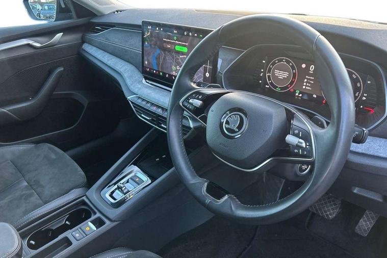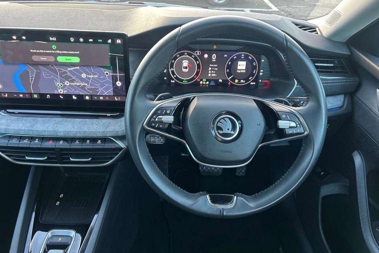 1x USB Typc C port in rear view mirror, 4x USB Type C ports - 2x in front centre console and 2x in rear (45W), Drive mode selection, Driver fatigue sensor, eCall emergency system, Electro-mechanical power steering, Front and rear parking sensors with manoeuvre assist, Front assist system, Traffic jam assist, Traffic sign recognition, Turn Assist, Virtual Cockpit - 10.25" digital display, Voice control system, Wireless charging (15W) with cooling function, Wireless SmartLink for Apple CarPlay and Android Auto, 13" touchscreen display with navigation, DAB Digital radio, Aero front windscreen wipers with intermittent function, Auto dimming rear view mirror, Body colour bumpers, Body colour door mirrors and handles, Chrome grille surround, Chrome strip in lower front bumper, Chrome window surrounds, Electric front and rear windows, Heated rear windscreen, High level third brake light, Ice scraper in fuel cap, LED daytime running lights, LED Headlights, Logo projection in front doors, Rain and light sensors, Rear fog light on one side, Rear privacy glass, Rear side wing doors, 12 volt socket in boot, 3 rear headrests, 3 seat bench in 2nd row, 4 foldable roof handles, Boot net programme, Front head restraints, Heated front seats, Illuminated glovebox, Interior door handles in dark chrome, Jumbo Box storage, Luggage compartment lighting x2 lights, Mechanical rear seat release from boot, Parcel shelf - folding, Single front passenger seat, Steering wheel in black leather with black stitching, Storage compartments in left and right of boot, Sun visors with mirrors, Sunglasses storage, Ticket holder, Umbrella in door panel, Unsplit rear bench seat, split folding backrest with centre armrest with cupholder, Comfort package - Octavia, 3x3 point rear seat belts, Alarm with interior monitoring, tilt sensor and back up horn, Curtain airbags and front side airbags, Driver and front passenger airbags, Drivers knee airbag, Electronic parking brake, ESC including ABS, EBV, MSR, ASR, EDS, HBA, DSR, Front central airbag, Hill hold assist, ISOFIX on front passenger seat and outer rear seats, Passenger airbag deactivate switch, Three point seat belts in front and rear, Two tone horn, Tyre pressure monitor, Visual and acoustic seat belt reminder, Warning reflectors in front door, Anti-theft wheel bolts, Keyless start/stop, Remote central locking, Chrome air vent surrounds,