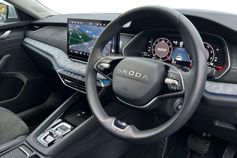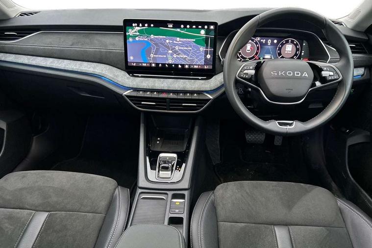 1x USB Typc C port in rear view mirror, 4x USB Type C ports - 2x in front centre console and 2x in rear (45W), Drive mode selection, Driver fatigue sensor, eCall emergency system, Electro-mechanical power steering, Front assist system, Traffic jam assist, Traffic sign recognition, Turn Assist, Virtual Cockpit - 10.25" digital display, Voice control system, Wireless charging (15W) with cooling function, Wireless SmartLink for Apple CarPlay and Android Auto, 13" touchscreen display with navigation, DAB Digital radio, Aero front windscreen wipers with intermittent function, Auto dimming rear view mirror, Body colour bumpers, Body colour door mirrors and handles, Chrome grille surround, Chrome roof rails, Chrome strip in lower front bumper, Chrome window surrounds, Electric front and rear windows, Heated rear windscreen, High level third brake light, Ice scraper in fuel cap, LED daytime running lights, LED Headlights, Logo projection in front doors, Rain and light sensors, Rear fog light on one side, Rear privacy glass, Rear side wing doors, Rear spoiler, Rear window wiper, 12 volt socket in boot, 3 rear headrests, 3 seat bench in 2nd row, 4 foldable roof handles, Front head restraints, Heated front seats, Illuminated glovebox, Interior door handles in dark chrome, Jumbo Box storage, Luggage compartment lighting x2 lights, Mechanical rear seat release from boot, Single front passenger seat, Steering wheel in black leather with black stitching, Storage compartments in left and right of boot, Sun visors with mirrors, Sunglasses storage, Ticket holder, Umbrella in door panel, Unsplit rear bench seat, split folding backrest with centre armrest with cupholder, Comfort package - Octavia Estate, Simply clever package premium - Octavia, 3x3 point rear seat belts, Alarm with interior monitoring, tilt sensor and back up horn, Curtain airbags and front side airbags, Driver and front passenger airbags, Drivers knee airbag, Electronic parking brake, ESC including ABS, EBV, MSR, ASR, EDS, HBA, DSR, Front central airbag, Hill hold assist, ISOFIX on front passenger seat and outer rear seats, Passenger airbag deactivate switch, Three point seat belts in front and rear, Two tone horn, Tyre pressure monitor, Visual and acoustic seat belt reminder, Warning reflectors in front door, Anti-theft wheel bolts, Keyless start/stop, Remote central locking, Chrome air vent surrounds,