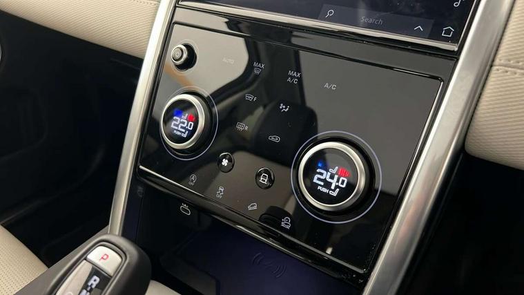 10" touch screen, Adaptive cruise control, Android Auto, Apple CarPlay, Driver condition monitor, eCall emergency call system, Front and rear parking aid, InControl remote premium, Lane keep assist, Locking fuel flap, PAS, Pivi Pro connected navigation system with upgraded Infotainment, Powered tailgate/boot lid, Push button start, Rear collision monitor, Service interval indicator, Traffic sign recognition with adaptive speed limiter, Trip computer, Wade Sensing, All terrain progress control, Coil suspension system, Diesel particulate filter, Dynamic stability control, Terrain Response 2, Bluetooth connectivity including audio streaming, Digital Audio Broadcast radio-DAB, Steering wheel mounted audio controls, 3rd brake light, Automatic headlights, ClearSight interior rear view mirror, Electric front/rear windows, Electric heated/power fold door mirrors with approach lights and auto dimming driver side, Fixed panoramic sunroof with powered sunblind, Front and rear recovery eyes, Heated rear window, Heated windscreen including heated washer jets, No badges, R Dynamic badge, Rain sensing windscreen wipers, Rear fog lights, Rear side wing doors, Rear wing door, Rear wiper, 5 seats, Bright metal pedals, Centre console with armrest, Footwell lights, Front and rear grab handles, Front passenger isofix child seat attachment, Loadspace cover, Loadspace light, Overhead lighting console, Overhead stowage for sunglasses, Rear headrests, Satin chrome gearshift paddles, Sunvisors with illuminated vanity mirrors, Tilt/reach adjustable steering wheel, Black exterior pack - Discovery sport, Online pack with data plan - Discovery, 3 point seatbelts on all seats, ABS, Brake hold function, Child locks on rear doors, Collision mitigation braking system, Cornering brake control (CBC), Driver/Front Passenger airbags, Drivers knee airbag, Electronic brake force distribution, Electronic parking brake, Emergency brake assist, ESP + traction control, Hill descent control, Hill launch assist, Pedestrian airbag system, Rear seat ISOFIX, Roll stability control, Side and curtain airbags for front and 2nd row seats, Trailer stability control, Tyre pressure monitoring system, Battery Back Up System (BBUS) with tilt sensor, Global lock and unlock switch on driver door, Intrusion sensor, Keyless entry, Locking wheel nuts, Centre stack rails in noble chrome,