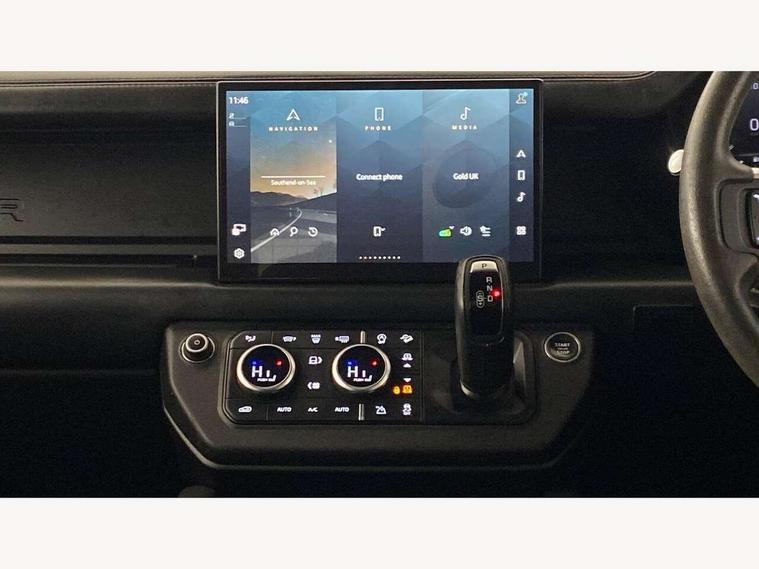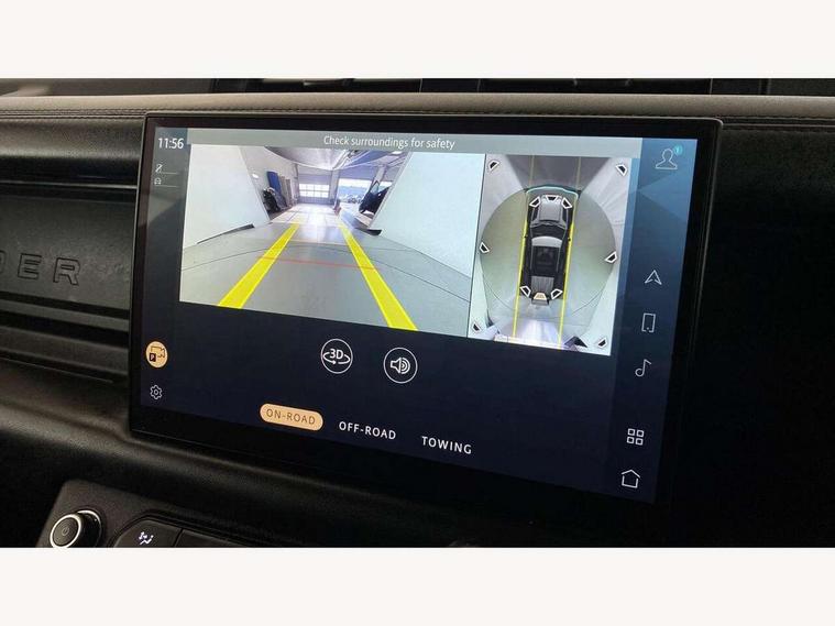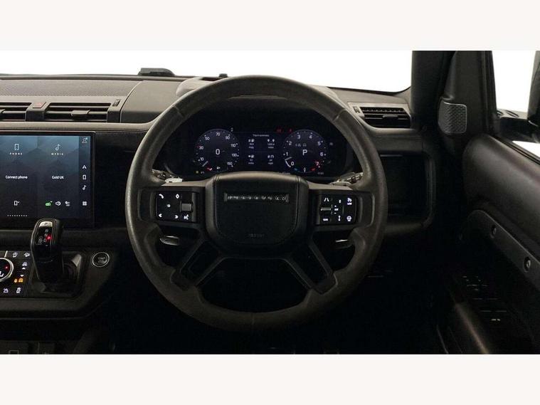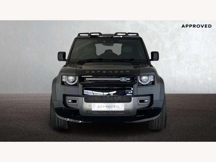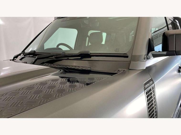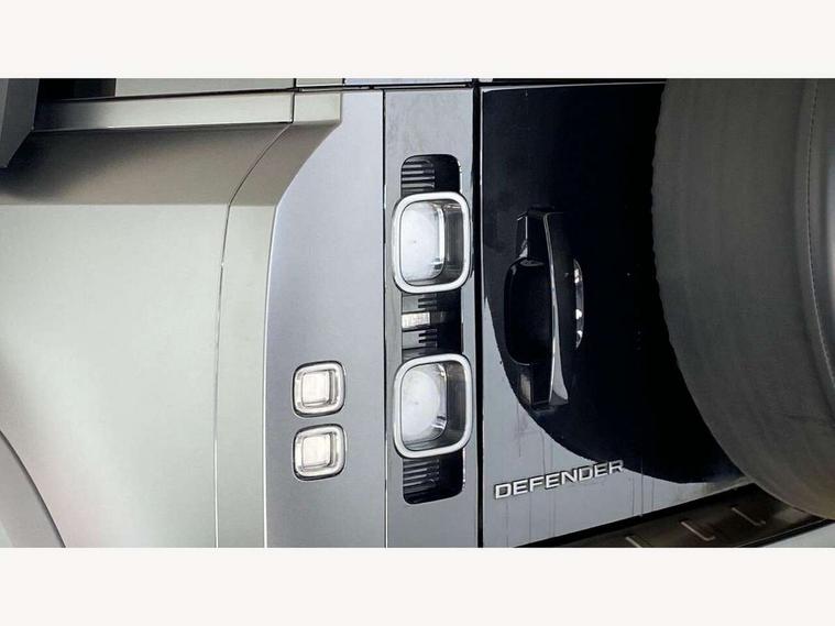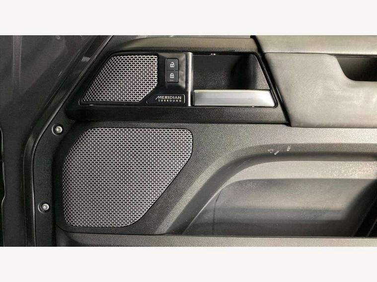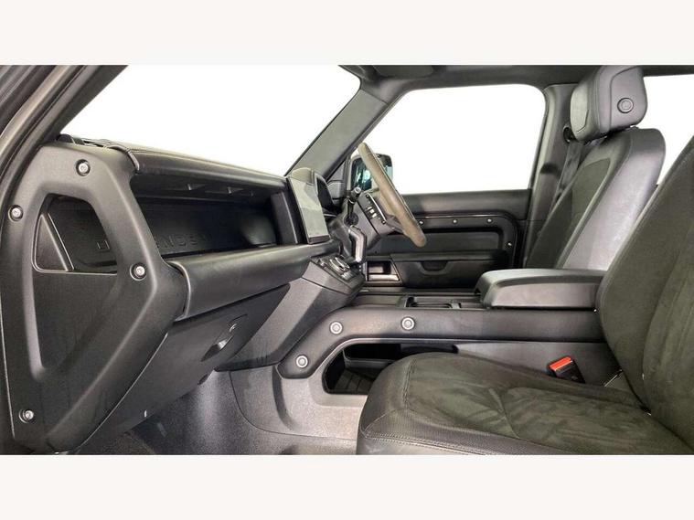 11.4" touchscreen, 360 degree parking aid, 3D Surround Camera with 360 View, 180 Rear View, Front Traffic Detection, Forward Vehicle Guidance, Tow Hitch Assist and clear sight Ground View, Adaptive cruise control, Android Auto, Apple CarPlay, Assisted tailgate with soft close, Blind spot assist, Bluetooth system, Brake pad wear indicator, Clear exit monitor, Connected navigation pro, Driver condition monitor, Electric power assisted steering (EPAS), Garage door opener (Homelink), Head up Display, Lane keep assist, Push button start, Rear collision monitor, Rear traffic monitor, Traffic sign recognition with adaptive speed limiter, Trip computer, Wade Sensing, Wireless device charging with phone signal booster, 8 speed automatic transmission, Adaptive dynamics, All terrain progress control, All wheel drive system, Configurable Terrain Response, Electronic active differential with brake torque vectoring, Electronic air suspension, Terrain Response 2 with dynamic program, Twin speed transfer box, DAB Radio (Digital Audio Broadcasting), Meridian 700w surround sound audio system with 15 speakers, Pivi pro connected, Advanced tow assist, Automatic headlight levelling, Automatic headlights, Black contrast bonnet, Black contrast roof, Black contrast tail door, Centre high mounted stop light, ClearSight interior rear view mirror, Darkened LED tail lights, Electric heated/power fold door mirrors with approach lights and auto dimming driver side, Electric windows with one touch open/close and anti-trap, Electrically deployable towbar, Follow me home lighting, Front fog lights, Gloss black contrast tail door, Headlamp power wash, Heated rear window with timer, Heated washer jets, Heated windscreen, Illuminated metal treadplates with V8 branding, Less roof rack or roof rails, Matrix LED headlights with signature DRL, Premium metallic paint, Privacy glass, Puddle lights, Quad outboard mounted exhaust pipes, Rain sensing windscreen wipers, Rear fog lights, Rear side wing doors, Rear wiper, Satin Protective Film, Side hinged tailgate, Signature graphic (with interior storage), Sliding panoramic roof, Solar attenuating windscreen, Trailer stability assist, V8 badge, 12V power socket in loadspace, 14 way heated and cooled electric adjustable memory front seats with 4 way manual headrests, 3 seat bench in 2nd row, 40:20:40 folding, heated rear seats with centre armrest, Air quality sensor, Alpine lights, Bright metal pedals, Cabin Air Purification plus, Domestic plug socket, Durable rubber cabin flooring, Durable rubber loadspace flooring, Ebony morzine headlining, Electric cabin pre conditioning, Electric reach + rake adjustable steering column, Extended leather upgrade, Footwell lights, Front centre console refrigerator compartment, Front passenger isofix child seat attachment, Heated steering wheel, Leather gearshift, Loadspace cover, Loadspace Hook, Multifunction steering wheel, Overhead stowage for sunglasses, Premium cabin lighting, Rear headrests, Rear ISOFIX, Rear reading lights, Satin chrome gearshift paddles, Single front passenger seat, Standard seat configuration, Storage glovebox, Suedecloth steering wheel, Sunvisors with illuminated vanity mirrors, Three-zone Climate Control with Rear Cooling Assist, Twin front cupholders with cover, Carpathian exterior pack - Defender, Online pack with data plan - Defender, 5 x 3 point seatbelts, ABS, Brake hold function, Cornering brake control (CBC), Cross car beam in satin black powder coat brushed finish, Customer configurable autolock, DSC - Dynamic Stability Control, EBD - Electronic brakeforce distribution, Electric parking brake (EPB), Emergency brake assist, Emergency braking, ESP + traction control, Front airbags with passenger seat occupant detector, HDC - Hill descent control, Hill launch assist, Low traction launch, Power operated child locks, Remote for (e-Call, Optimised assistance call, InControl app, Climate, beep and flash and door), RSC - Roll stability control, Seat belt reminder, TPMS (Tyre pressure monitoring system), Activity key, Alarm, Immobiliser, Intrusion sensor, Keyless entry, Locking wheel nuts, Robustec veneer,