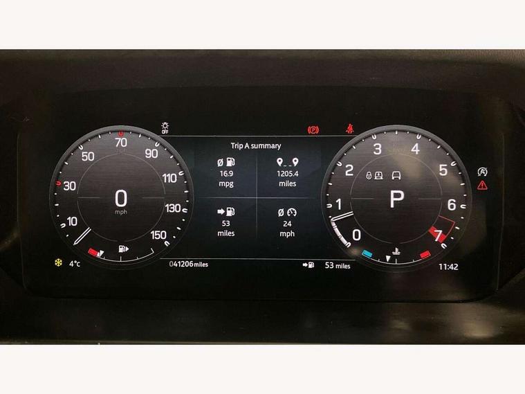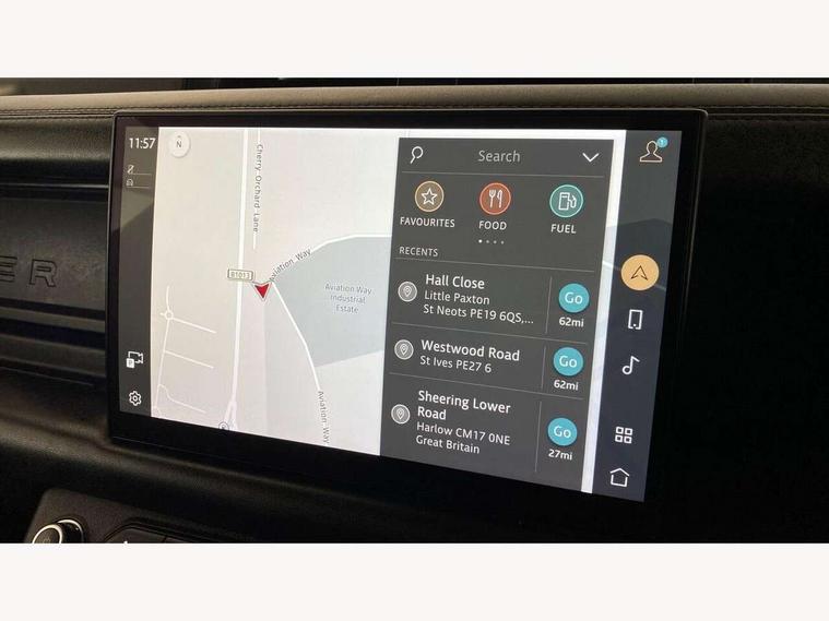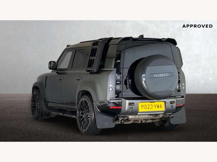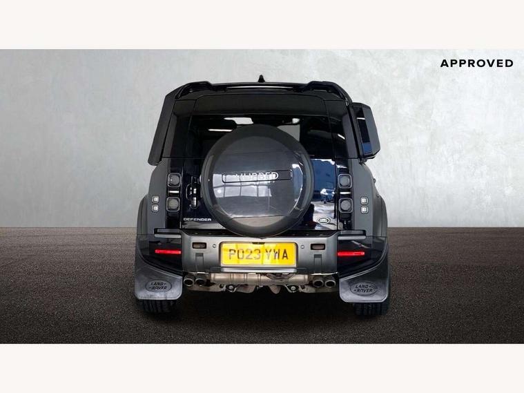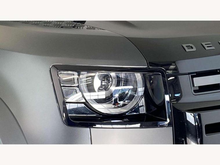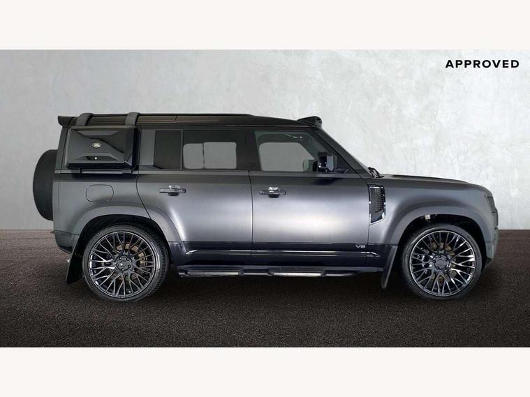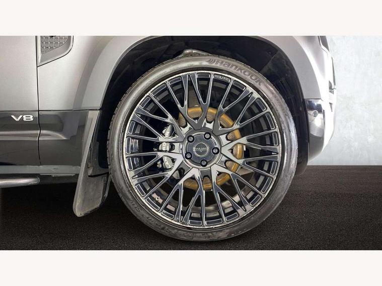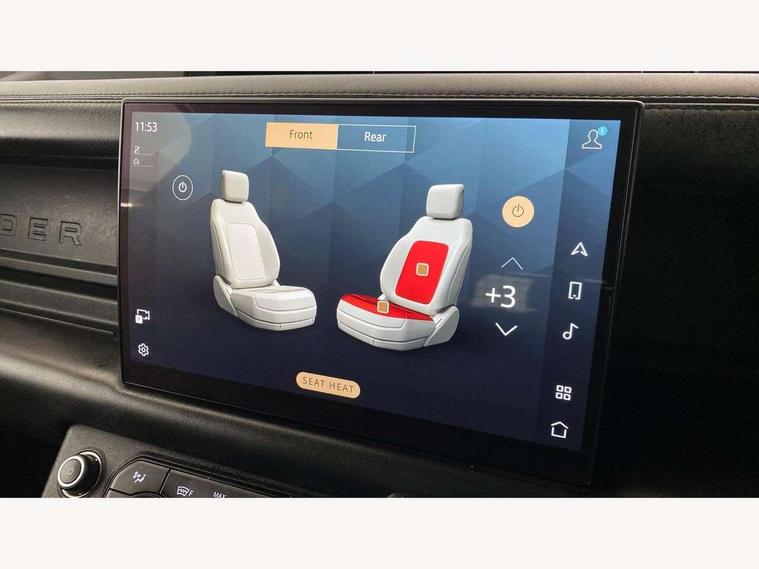 11.4" touchscreen, 360 degree parking aid, 3D Surround Camera with 360 View, 180 Rear View, Front Traffic Detection, Forward Vehicle Guidance, Tow Hitch Assist and clear sight Ground View, Adaptive cruise control, Android Auto, Apple CarPlay, Assisted tailgate with soft close, Blind spot assist, Bluetooth system, Brake pad wear indicator, Clear exit monitor, Connected navigation pro, Driver condition monitor, Electric power assisted steering (EPAS), Garage door opener (Homelink), Head up Display, Lane keep assist, Push button start, Rear collision monitor, Rear traffic monitor, Traffic sign recognition with adaptive speed limiter, Trip computer, Wade Sensing, Wireless device charging with phone signal booster, 8 speed automatic transmission, Adaptive dynamics, All terrain progress control, All wheel drive system, Configurable Terrain Response, Electronic active differential with brake torque vectoring, Electronic air suspension, Terrain Response 2 with dynamic program, Twin speed transfer box, DAB Radio (Digital Audio Broadcasting), Meridian 700w surround sound audio system with 15 speakers, Pivi pro connected, Advanced tow assist, Automatic headlight levelling, Automatic headlights, Black contrast bonnet, Black contrast roof, Black contrast tail door, Centre high mounted stop light, ClearSight interior rear view mirror, Darkened LED tail lights, Electric heated/power fold door mirrors with approach lights and auto dimming driver side, Electric windows with one touch open/close and anti-trap, Electrically deployable towbar, Follow me home lighting, Front fog lights, Gloss black contrast tail door, Headlamp power wash, Heated rear window with timer, Heated washer jets, Heated windscreen, Illuminated metal treadplates with V8 branding, Less roof rack or roof rails, Matrix LED headlights with signature DRL, Premium metallic paint, Privacy glass, Puddle lights, Quad outboard mounted exhaust pipes, Rain sensing windscreen wipers, Rear fog lights, Rear side wing doors, Rear wiper, Satin Protective Film, Side hinged tailgate, Signature graphic (with interior storage), Sliding panoramic roof, Solar attenuating windscreen, Trailer stability assist, V8 badge, 12V power socket in loadspace, 14 way heated and cooled electric adjustable memory front seats with 4 way manual headrests, 3 seat bench in 2nd row, 40:20:40 folding, heated rear seats with centre armrest, Air quality sensor, Alpine lights, Bright metal pedals, Cabin Air Purification plus, Domestic plug socket, Durable rubber cabin flooring, Durable rubber loadspace flooring, Ebony morzine headlining, Electric cabin pre conditioning, Electric reach + rake adjustable steering column, Extended leather upgrade, Footwell lights, Front centre console refrigerator compartment, Front passenger isofix child seat attachment, Heated steering wheel, Leather gearshift, Loadspace cover, Loadspace Hook, Multifunction steering wheel, Overhead stowage for sunglasses, Premium cabin lighting, Rear headrests, Rear ISOFIX, Rear reading lights, Satin chrome gearshift paddles, Single front passenger seat, Standard seat configuration, Storage glovebox, Suedecloth steering wheel, Sunvisors with illuminated vanity mirrors, Three-zone Climate Control with Rear Cooling Assist, Twin front cupholders with cover, Carpathian exterior pack - Defender, Online pack with data plan - Defender, 5 x 3 point seatbelts, ABS, Brake hold function, Cornering brake control (CBC), Cross car beam in satin black powder coat brushed finish, Customer configurable autolock, DSC - Dynamic Stability Control, EBD - Electronic brakeforce distribution, Electric parking brake (EPB), Emergency brake assist, Emergency braking, ESP + traction control, Front airbags with passenger seat occupant detector, HDC - Hill descent control, Hill launch assist, Low traction launch, Power operated child locks, Remote for (e-Call, Optimised assistance call, InControl app, Climate, beep and flash and door), RSC - Roll stability control, Seat belt reminder, TPMS (Tyre pressure monitoring system), Activity key, Alarm, Immobiliser, Intrusion sensor, Keyless entry, Locking wheel nuts, Robustec veneer,