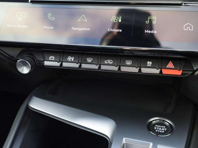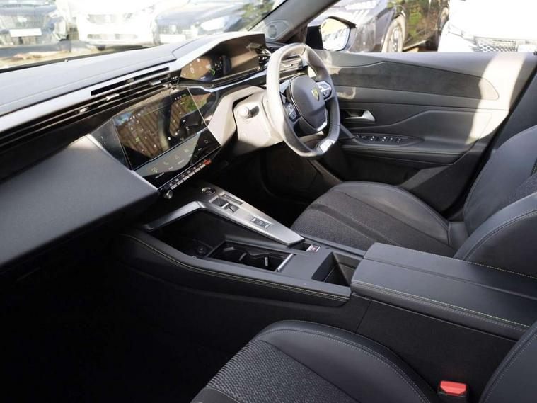 Bluetooth telephone facility, Compact drive selector, Driver attention warning, Emergency call service, Exterior temperature indicator with ice warning, Front and rear parking sensors, Intelligent speed adaptation, Lane keep assist, Mirror screen with wireless apple carplay and android auto, Multi driving mode selector - Eco / Normal / Sport mode selector, Multi function trip computer, Peugeot connect advanced with connected 3D navigation, PEUGEOT i-Cockpit - compact steering wheel, 10" HD colour touchscreen with configurable 3D headup instrument panel, Service interval indicator, Speed limit recognition and recommendation, Sport pedals with foot rest, DAB Digital radio, Peugeot customisable iToggles, Voice recognition for radio, navigation and telephony features, 2 X LED rear number plate lights, Acoustic and tinted windscreen, Acoustic laminated front side windows, Automatic hazard light activation upon heavy brake application, Automatic triggered rear windscreen wiper in reverse gear, Body colour door handles, Body colour rear roof spoiler, Dark chrome chequered radiator grille, Dark tinted rear side and tailgate windows, Electric operated/heated door mirrors, Extended lower body sills to the front and side, Framed electrochromatic rear view mirror, Front and rear electric windows with one touch/anti pinch, Full LED matrix headlights with automatic adjustment, Gloss black finish B pillar, Gloss black rear cluster connecting strip, GT model designation badging on tailgate, High beam assist, LED 3rd brake light, LED side indicator lights integrated into door mirrors, Lion emblem badging on front wings, Model designation badges on front and rear, Nera black door mirrors, Peugeot aluminium door sills, Peugeot signature LED daytime running lights, Power folding door mirrors, Rear full LED 3D Peugeot new claw effect lights with sequential welcome sequence upon unlocking the vehicle, Rear lower bumper gloss black diffuser effect trim, Rear reversing lights, Rear side wing doors, Tailgate with heated rear windscreen and wiper blade, Twin exhaust pipes with chrome surround, 1/3 to 2/3 split folding rear seats, 12V socket, 2 front USB socket including 1 USB type c, 3 seat bench in 2nd row, 8 Colour personalisable ambient lighting, Automatic air conditioning with AQS 3, Belomka tri-material woven cloth with Isabella leather effect upholstery, Carpet mats, Central front armrest with storage compartment, Dynamic front seats, Electric power steering with reach and rake adjustable steering column, Front central console with two cup holders, LED Glovebox light, Manual driving mode - change gear manually via steering mounted paddles, Multifunction full grain leather steering wheel with admite green stitching & GT badging, Piano keys gloss black plated toggle switches to access main functions of the vehicle, Roof lining - Mistral black, Seatbelt unfastened on the move audible and visual alert for front and rear seats, Single front passenger seat, Ski hatch with central rear armrest with cup holder, Sunvisor with concealable mirrors and LED lighting, Twin USB charging ports in the rear (Type C), Driver sport pack with sports power steering - 308, Visibility pack with automatic magic wash windscreen wipers - 308, 2x Isofix child seat fitting on outer rear seats, 3x Rear three-point retractable seatbelts with force limiters in the outer rear seats, ABS + EBD + EBA, Active safety brake with night function/cyclists/pedestrians, Adaptive driver and front passenger airbags with passenger airbag deactivation function, Automatic post collision braking, Child locks on rear doors, Driver/front passenger side airbags, Electronic parking brake, ESP, Front and rear curtain airbags, Front optimised safety headrests and rear retractable headrests (x3), height adjustable, Front three point retractable seatbelts with force limiters, Front/rear disc brakes, Hill start assist, Tyre pressure sensor, Automatic door locking when moving off, Deadlocking system, Electronic code immobiliser, Locking wheel nuts, PEUGEOT Open and Go keyless entry system, Thatcham cat. 1 alarm with anti lift sensor,