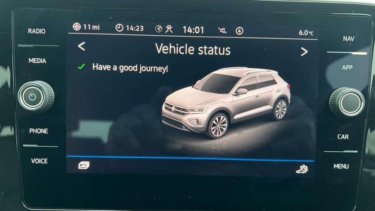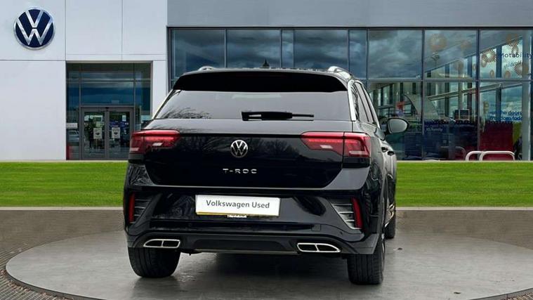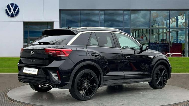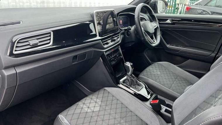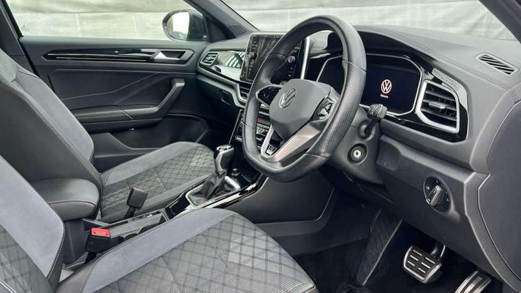 10.25" Digital cockpit pro, Bluetooth mobile phone interface, Driver alert system with fatigue detection, Driver tips and journey analysis, Emergency call service, Lane keeping system Lane Assist, Modified key software - reduce switch off time for key status change to Long no motion, Online services, Park assist including front and rear parking sensors, Service interval indicator, Tailgate/trunk lid release from outside, Think blue trainer driver tips and journey analysis, Warning sound and light for front seatbelts unfastened, Wireless app connect, Battery regeneration during braking, Start/stop function with battery regeneration, Diversity antenna for FM reception, Front and rear 6 speakers, Music playback - MP3, WMA and AAC files, Premium USB cable in choice of either Apple or Android smartphone compatibility, SD card slot, Simultaneous pairing of 2 compatible mobile devices, Title and cover art display, We Connect and We Connect Plus functionality, 3rd brake light, Auto dimming interior rear view mirror, Automatic hazard lights activation under emergency braking, Automatic headlight control with LED separate daytime running lights with coming/leaving home function, Extended roof spoiler, Exterior mirrors aspherical on driver side, convex on front passenger side, External USB type C socket and charging sockets, Front windscreen wiper with intermittent wipe and 4 position delay, Heated rear window, LED Plus headlamps, LED rear combination lamps, LED rear number plate lights, LED tail lamp rear comination lamps, Power windows with comfort operation and circuit breaker, R-Line design body coloured bumpers, Rain sensor, Rear exhaust tailpipe, Rear fog light on one side and reversing lights on both sides, Rear side wing doors, Rear wash/wipe with intermittent wipe setting, Remote electrically foldable door mirrors, puddle lights and reverse activated passenger's door mirror, 12V power socket in centre console, 3 rear head restraints, 3 seat bench in 2nd row, 4 load lashing points in luggage compartment, Air care climatronic air conditoning system with active combination filter and 2-zone temperature control, Black roof lining, Chrome plated radiator grille inserts, air vent surrounds and light switch surrounds, Door and side trim panel with leatherette insert, Drawer under drivers seat, Front + rear carpet mats, Front centre armrest, Front cupholders x 2, Front footwell illumination, Front reading light, Front scuff plates with R logo, Instrument lighting, white adjustable panel illumination, Interior ambient lighting and surround lighting, Interior light delay, Isofix child seat preparation, Leather gearshift handle, Load-through provision with cup holder when folded down ('Unsplit rear seat bench, split folding backrest, with centre armrest), Luggage compartment lighting, Single front passenger seat, Stainless steel pedals, Storage compartment in left and right luggage area, Storage compartment in rear doors, Storage compartments in driver and front passenger doors, Sunvisors with illuminated vanity mirrors, Variable boot floor, height adjustable and removable, Driver assistance pack without proactive passenger protection - T-Roc, 3 point height adj front seatbelts + pretensioners, 3 point seatbelts in outer rear with ECE label, ABS, Child locks on rear doors, Driver and front passenger airbag with front passenger airbag deactivation, Driver and front passenger safety-optimised head restraints, Drivers seatbelt reminder, Electronic parking brake, Electronic Stability Control (ESC) inc EDL (Electronic Differential Lock) and ASR (Traction Control), Front and rear passengers curtain airbag system including front side airbags, Front assist with city emergency braking and pedestrian monitoring, Front seat side impact airbags, Hill start assist, Predictive pedestrian protection, Rear disc brakes, Single tone horn, Tyre pressure loss indicator, Volkswagen roadside assistance, Alarm with interior protection, Anti-theft alarm system with interior monitoring, backup horn, and towing protection, Remote central locking with SAFELOCK, radio remote control with 2 remote control folding keys, Trims for alloy wheels,