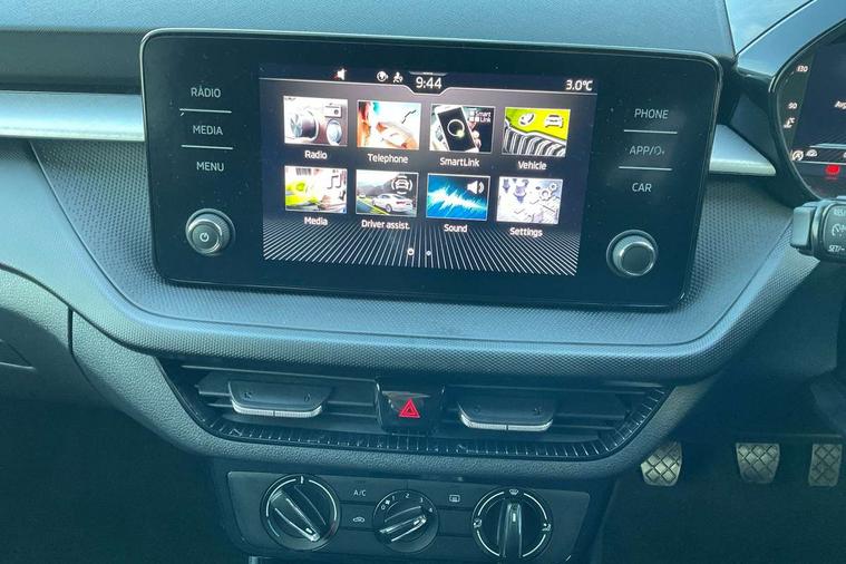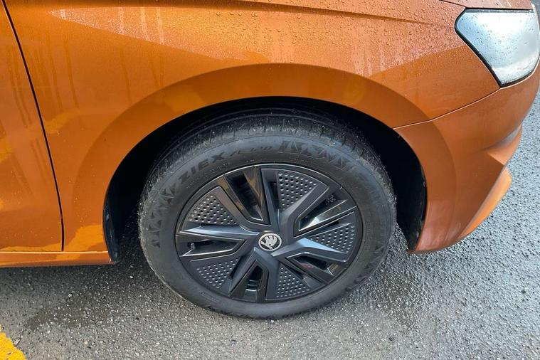 Bluetooth connection, Driver alert system - DAS, Electromechanical power steering, Exterior temperature gauge, Lane assist including road edge detection, Service interval indicator, Virtual cockpit with 10.25" colour display, 2x USB-C in the front (for data transmission and charging), 6 Speakers (4 in front and 2 in rear), Auxiliary socket for external MP3 player, Bolero radio with 8" colour display, DAB digital radio reception, Basic LED Headlights, Body coloured bumpers, Dimming rear view mirror with black frame, Door mirror integrated indicators, Electrically adjustable and heated door mirrors, Electrically adjustable front windows with function auto up/down, Front fog lights, Front window wiper intermittent control, Headlight range control - Automatic, Ice scraper in fuel cap, LED daytime running lights with coming and leaving home feature, Mechanical adjustable rear windows, Privacy glass, Rain sensor, Rear LED fog light, Rear side wing doors, Rear window wiper with washing nozzles, Roof mounted spoiler, SKODA tailgate lettering in chrome, Third brake light, 2 reading lights in front and 2 reading lights in rear, 3 rear headrests, Backrest split and folding, Central console with fixed cup holder and storage box, Chrome handbrake release button, Fabric upholstery, Gearshift knob/handle in leather, Grain satin black interior door handles, Hand brake lever handle in leather, Height adjustable drivers seat, Height adjustable front headrests, Height adjustable steering wheel, ISOFIX and TopTether anchorage points to the outer rear seats, ISOFIX and TopTether on the front passenger seat, Luggage compartment lighting, Pollen filter, Rear seat bench unsplit, Single front passenger seat, Storm grey headlining, Sun visors with mirror and airbag label on passenger side, Ticket holder, Umbrella in drivers door, 3-point height adjustable front seats belts with pretensioner and force limiter, Automatic warning lights in case of crash, Driver and passengers airbag with switch off function, e-Call+, ESC including ABS, MSR, ASR, EDS, HBA and XDS, Front and rear seat belt warning, FRONT ASSIST (AEB City and AEB Inter Urban), Front side airbags, Head airbags, One tone horn, Pedestrian protection, Three rear 3-points safety seat belts with pretensioner and force limiter including stop function for outer rear seat belts, Tyre pressure monitoring system, Anti-theft alarm system including immobiliser, interior monitoring, backup horn, and towing protection, Central locking with radio remote control, interior controls, SAFE function and 2 foldable keys, KESSY - Keyless engine start/stop, Anodized cross line upper decorative trim, Colour Edition air vents, Grain satin black central console cover, Grain satin black lower decorative trim, Satin black door and side trim panel in front, Anti-theft wheel bolts protection, Super-low rolling resistance tyres,