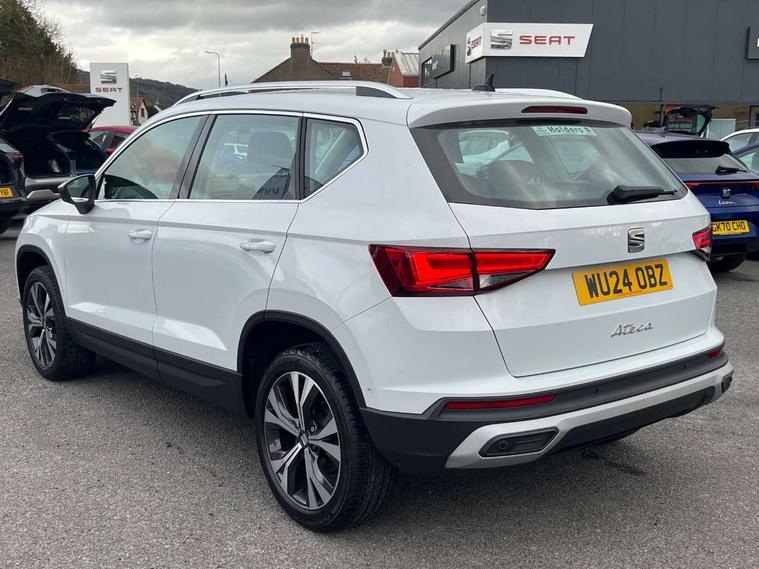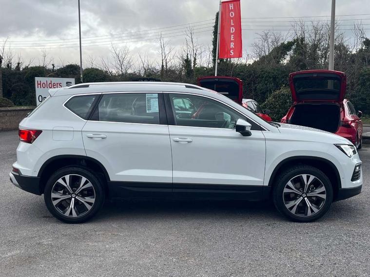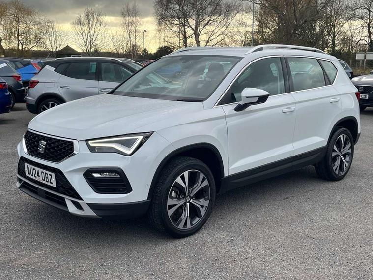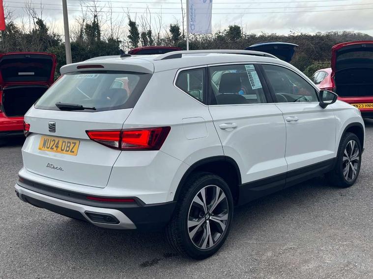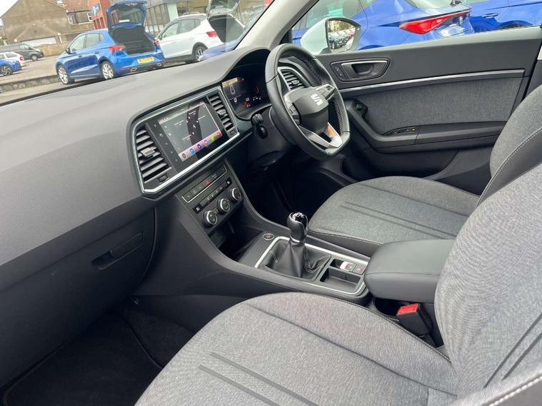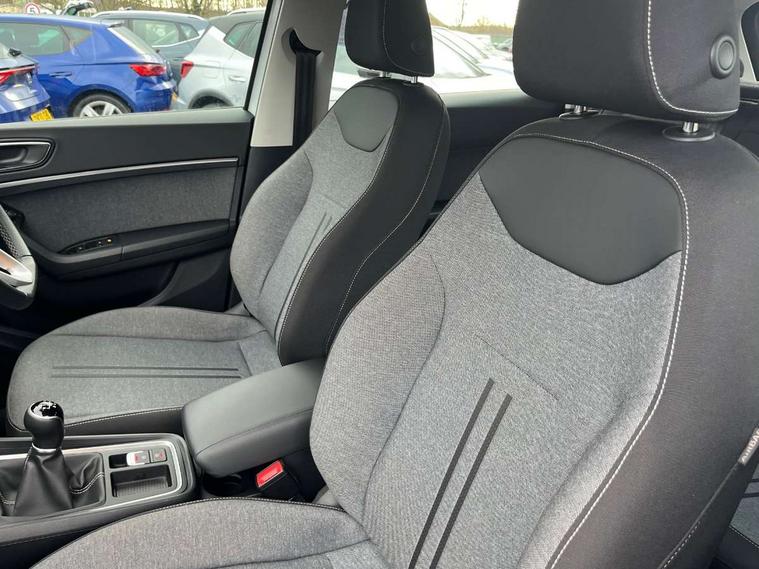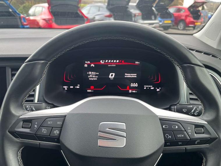 8" Digital cockpit, Colour multi-function on board computer display, Cruise control system with speed limiter, E-call, Outside temperature gauge, PAS, SEAT drive profile with driving experience button - Normal, Sport, Eco and Individual mode, steering and throttle response, Self parking functionality (includes front and rear parking sensors), Start/stop system, Tailgate, Trip computer, Wireless full link smartphone integration, Wireless phone charger, Steering wheel mounted audio/phone controls, Black wheel arch surrounds, Body colour bumpers, Chrome front grille frame, Chrome roof rails, Chrome side window trim, Daytime running lights, Door mirrors with welcome light silhouette, Dynamic headlight range control with self adjusting whilst driving, Electric adjustable/heated/folding door mirrors, Front and rear electric windows, Full LED headlamps with lens and LED front fog lamps with cornering function, LED rear tail lights with dynamic indicators, Rear fog lights, Rear side wing doors, Rear wash/wipe, Simulated exhaust pipes, Variable front intermittent wipers, 12V socket in front, 3 seat bench in 2nd row, 60/40 split folding rear seat, Cloth upholstery with front comfort seats, Drawer under right front seat, Dual zone climate control, Front and rear head restraints, Front centre armrest, Front seat back storage pockets, Height adjustable driver and passenger seat with lumbar adjustment, ISOFIX points in outer rear seats with top tether anchorage points, Leather steering wheel and gear knob, Rear armrest and easy back seat release mechanism from boot, Single front passenger seat, Interior lighting pack - Ateca, Navigation system pack with DAB - Ateca, 3x3 point rear seatbelts, ABS, Traction control system (TCS), Electronic stability control (ESC) and Electronic differential lock system (XDS), Airbags - Driver and front passenger airbag with deactivation, front side, two curtain and driver's knee airbags, Electric parking brake with auto hold function, Front and rear seatbelt reminder, Front assist with autonomous emergency braking, Hill hold control, Manual rear child locks, Single tone horn, Tiredness recognition system, Traction control, Tyre pressure monitoring system, Alarm, Keyless entry, Locking wheel bolts, Remote central locking, Chrome interior detailing, 18" Performance machined alloy wheels 36/2 in nuclear grey,