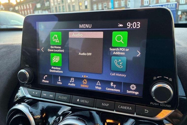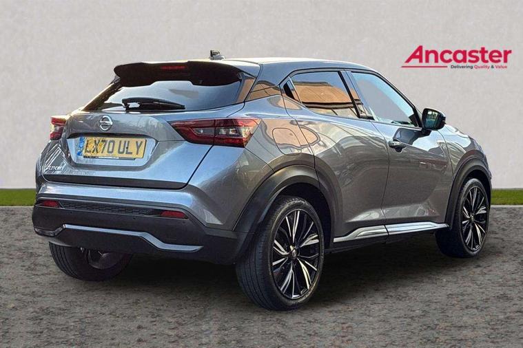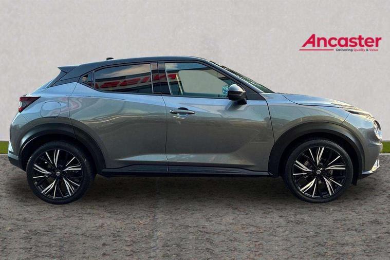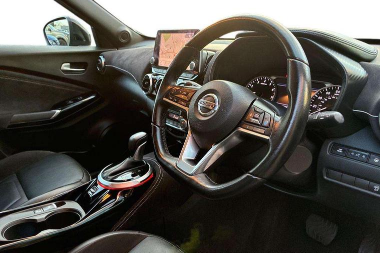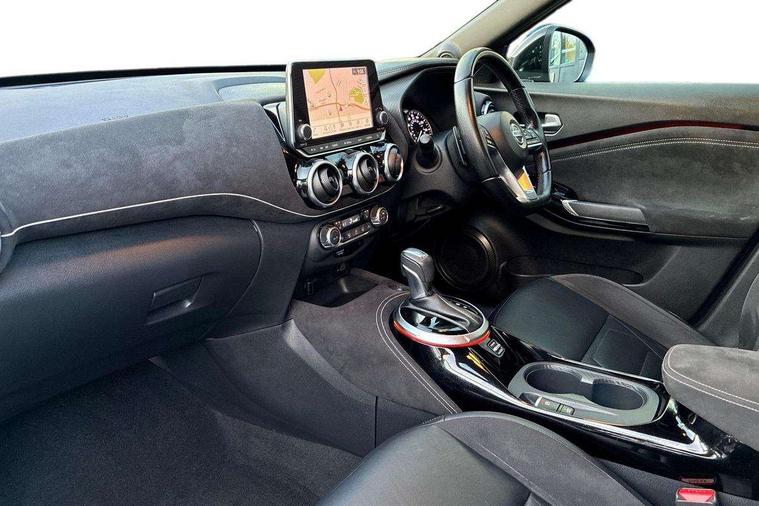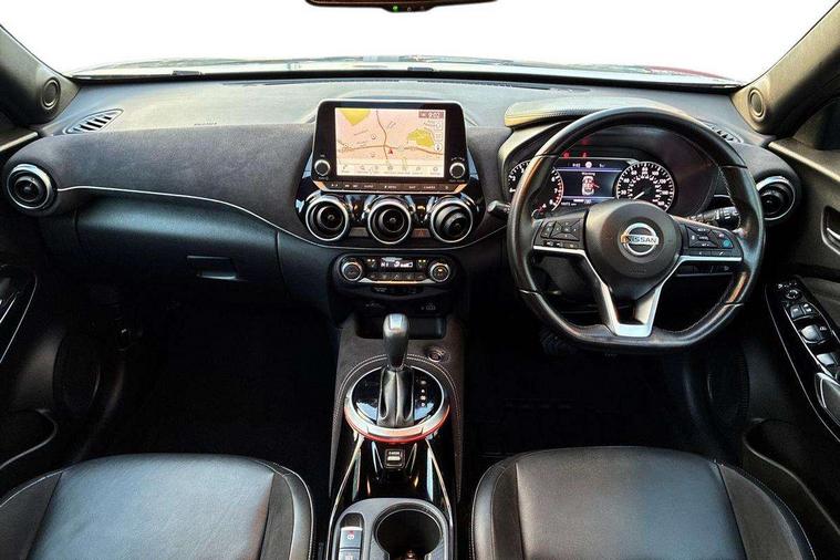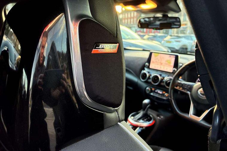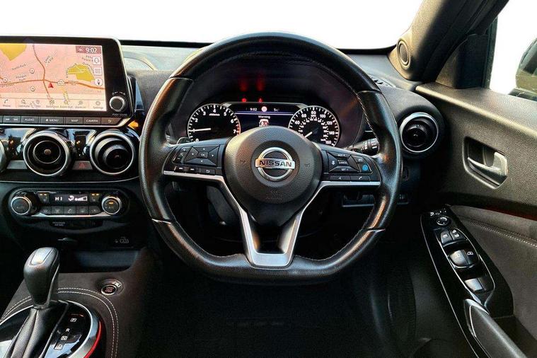 7" full colour TFT screen combimeter, 8" infotainment colour display with touch screen, Apple CarPlay and Google Android auto, Drive modes select (Eco, normal and sport), Emergency and breakdown call, Front parking sensor, Idle start/stop system, Intelligent lane intervention, Lane departure warning system, Nissan connect nav with TomTom traffic, Nissan connect services and Wifi connection, Outside temperature sensor, Power Steering, Rear parking sensor, Traffic sign recognition, Trip computer, Gasoline particulate filter, Bluetooth system, USB, Aux-in and 12V socket, Bose personal plus audio system with 8 speakers(4 speakers and 2 headrest speaker for driver and passenger seats), Bose personal sound stage control, DAB Digital radio, Front lower bumper painted in silver finisher, Rear console USB port, Auto dimming interior rear view mirror, Automatic hazard signal with emergency stop signal, Body colour bumpers, Body colour door handles, Electrically adjustable door mirrors with integrated indicators, Follow me home headlights, Front and rear electric window with one touch driver and passenger window, Heated and auto folding door mirrors, High beam assist, LED daytime running lights, LED front fog lights, LED headlamps, LED rear fog lamp, LED rear lamps, Rain sensor windscreen wipers, Rear privacy glass, Rear spoiler, Rear wiper, Thermaclear heated windscreen, Three blink turn signal, 3 height adjustable rear headrests, 60/40 split folding rear seat, Automatic climate control, Card holder on driver sunvisor, Door ambient lighting, Driver and passenger sliding and reclining seats, Driver seat back pocket, Driver side rear coat hanger, Driver/passenger sunvisors and illuminated vanity mirrors, Front and rear cabin lights, Front armrest, Front door pockets with bottle holders, Front head restraints, Front passenger isofix child seat anchorage point, Front/rear passenger grab handles, Gear console ambient circle lighting, Grey synthetic leather kneepad, Heated front seats, Height adjustable driver's seat, Height adjustable passenger seat, Internal chrome door handles, Leather gearshift knob, Leather steering wheel, Luggage board, Luggage space lighting, Monoform sporty seats, Multifunction steering wheel, Passenger seat back pocket, Rear door bottle holders, Steering wheel mounted gearshift paddles, Telescopic steering wheel adjustment, Two cupholders in front centre console, Two rear isofix child seat anchorage points with top tether, Voice recognition switch on steering wheel, Welcome light and console tray ambient lighting, ProPilot pack - Juke, ABS with EBD and brake assist, Active ride control, Active Trace Control, Driver and passenger airbags, Driver and passenger side airbags, Electric handbrake with auto hold function, Electronic Stability Programme (ESP), Front and rear curtain airbags, Height adjustable seatbelts, Hill start assist, Intelligent emergency braking with pedestrian and cyclist recognition, Seatbelt reminder for driver/front passenger and rear seats, Single tone horn, Three 3 point rear seatbelts, Traction control, Tyre pressure monitoring system, VDC Dynamic Vehicle Control, Ventilated rear brake discs, Alarm, Immobiliser, Intelligent Key with push button starter, Remote central locking, 19" Akari alloy wheels,