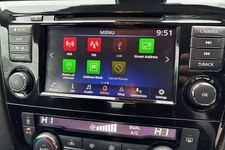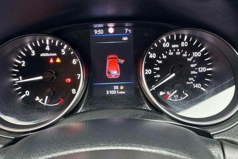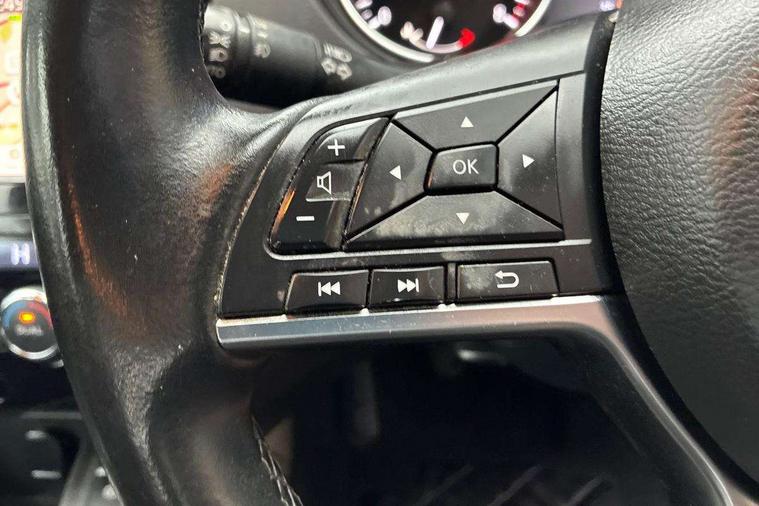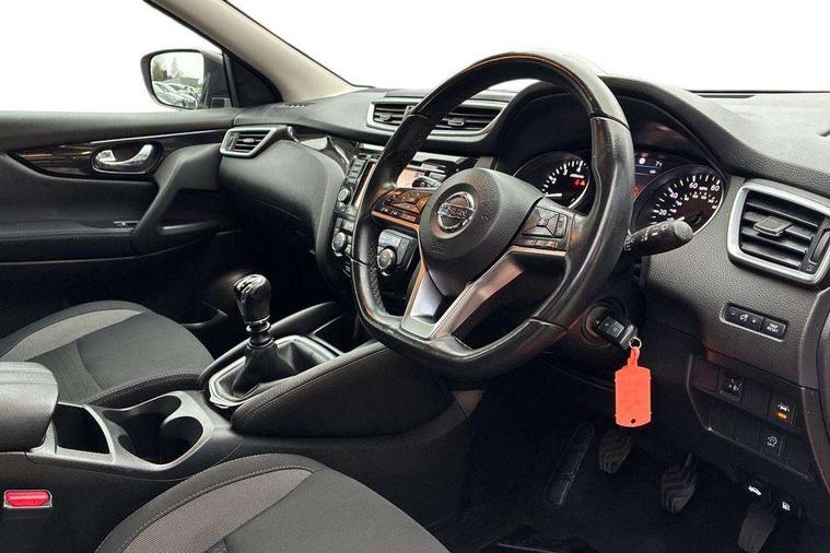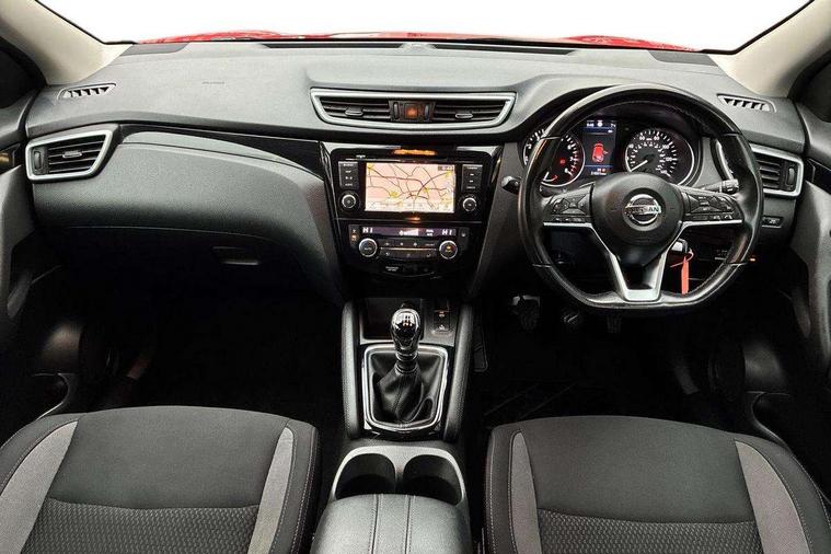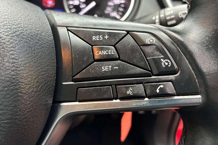 Advanced drive assist display 5'' TFT coloured screen, Android Auto, Apple CarPlay preparation, Bluetooth connectivity, Cruise control + speed limiter, Electric speed sensitive power steering, Front parking sensors, Lane departure warning system, Nissan connect evo 7" touchscreen navigation and entertainment system, Normal or sport selectable steering, Outside temperature sensor, Rear parking sensors, Rear view camera, Service interval indicator, Smartphone integration, Stop/start system, Tomtom connected services, Traffic sign recognition, Trip computer, Voice control system, Nissan chassis control (intelligent ride control, intelligent trace control, intelligent engine brake), 6 speakers, AM/FM radio, CD audio system, Aux-in socket, DAB Digital radio, Steering wheel mounted audio controls, USB port, Anti dazzle rear view mirror, Auto wipers, Body colour bumpers, Body coloured door handles, Body coloured door mirrors, Chrome window surround, Daytime running lights dip function when turn signal applied, Electric folding door mirrors, Electric front and rear windows with one touch illuminated window controls, Electric front/rear windows, Electrically adjustable door mirrors, Front fog lights, Halogen headlights, Heated door mirrors, High beam assist, Intelligent auto headlights, LED indicators in door mirrors, Rear roof spoiler, Rear wiper with reverse link, Shark fin antenna, Signature LED daytime running lights, Underbody vortex generators, 2 X front 12v power sockets, 3 height adjustable rear headrests, 60/40 split folding rear seat, Ambient lighting in centre console, Boot lighting, Centre console storage box/armrest, Chrome interior door handles, Cloth upholstery, Driver's seat manual height adjust, Dual zone climate control, Front and rear door pockets with bottle holders, Front and rear seat belt pre-tensioners with load limiters, Height adjustable front headrests, ISOFIX on outer rear seats, Leather D shaped steering wheel, Leather gear lever, Leather knee pad, Manual height adjustable front passenger seat, Manual lumbar support on driver seat, Parcel shelf stow function under luggage board, Pollen filter, Rear armrest with 2 cupholders, Tilt/telescopic adjustable steering wheel, 6 airbags - Driver, front passenger, curtain and side airbags, ABS, ESP, EBD and brake assist, Auto hold function, Child locks on rear doors, Electronic parking brake, Front and rear seat belt warning, Front passenger airbag deactivation, Height adjustable front seatbelts, Hill start assist, Intelligent emergency braking with pedestrian recognition, Three 3 point rear seatbelts, Tyre pressure monitoring system, Anti-theft immobiliser, Remote central locking, Thatcham Cat.1 alarm, Piano black dash trim, 17" Alloy wheels, Tyre puncture repair kit,