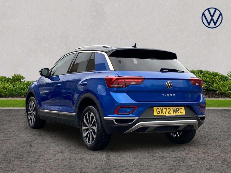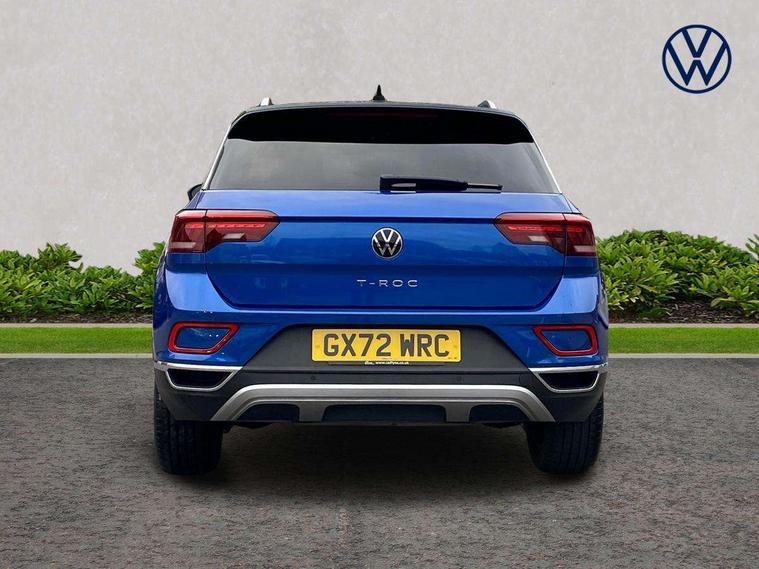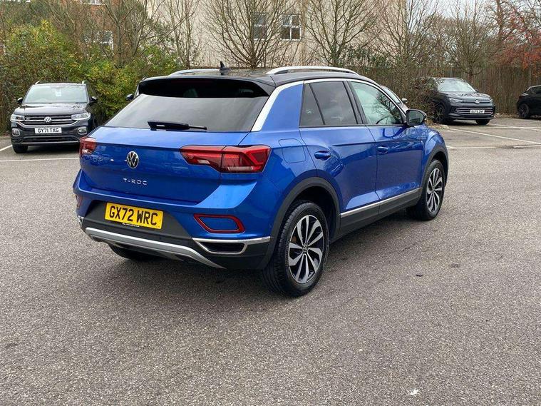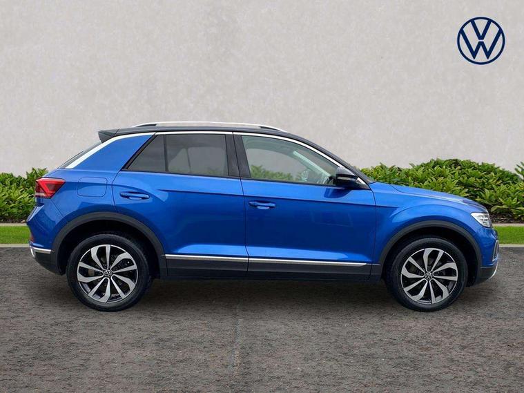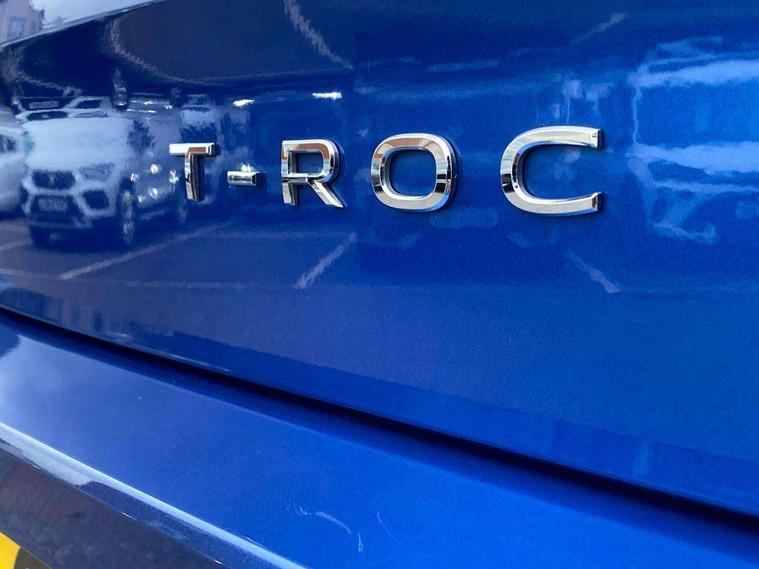 10.25" Digital cockpit pro, Bluetooth mobile phone interface, Driver alert system with fatigue detection, Driver tips and journey analysis, Dynamic road sign display, Emergency call service, Lane keeping system Lane Assist, Modified key software - reduce switch off time for key status change to Long no motion, Online services, Park assist including front and rear parking sensors, Power assisted speed sensitive steering, Service interval indicator, Tailgate/trunk lid release from outside, Think blue trainer driver tips and journey analysis, Warning sound and light for front seatbelts unfastened, Wireless app connect, Battery regeneration during braking, Front shock absorption, Rear shock absorption chassis with increased ride height, Start/stop function with battery regeneration, Diversity antenna for FM reception, Front and rear 6 speakers, Music playback - MP3, WMA and AAC files, Premium USB cable in choice of either Apple or Android smartphone compatibility, SD card slot, Simultaneous pairing of 2 compatible mobile devices, Title and cover art display, We Connect and We Connect Plus functionality, 3rd brake light, Auto dimming interior rear view mirror, Automatic hazard lights activation under emergency braking, Automatic headlight control with LED separate daytime running lights with coming/leaving home function, Body colour sports bumpers with silver metallic underbody fascia, Dynamic headlight range control with self adjusting whilst driving, Extended roof spoiler, Exterior mirrors aspherical on driver side, convex on front passenger side, External USB type C socket and charging sockets, Front windscreen wiper with intermittent wipe and 4 position delay, Heated rear window, LED Plus headlamps, LED rear combination lamps, LED rear number plate lights, LED tail lamp rear comination lamps, Light mode for poor weather, rain, fog or snow, Power windows with comfort operation and circuit breaker, Rain sensor, Rear exhaust tailpipe, Rear fog light on one side and reversing lights on both sides, Rear side wing doors, Rear wash/wipe with intermittent wipe setting, Remote electrically foldable door mirrors, puddle lights and reverse activated passenger's door mirror, 12V power socket in centre console, 3 rear head restraints, 3 seat bench in 2nd row, 4 load lashing points in luggage compartment, Air care climatronic air conditoning system with active combination filter and 2-zone temperature control, Chrome plated radiator grille inserts, air vent surrounds and light switch surrounds, Door and side trim panel with leatherette insert, Drawer under drivers seat, Front + rear carpet mats, Front centre armrest, Front comfort sports seats, Front cupholders x 2, Front footwell illumination, Instrument lighting, white adjustable panel illumination, Interior ambient lighting and surround lighting, Interior light delay, Isofix child seat preparation, Leather gearshift handle, LED interior light with switch off delay/dimmer and 2 front/rear LED reading lights, Load-through provision with cup holder when folded down ('Unsplit rear seat bench, split folding backrest, with centre armrest), Luggage compartment lighting, Non-folding front passenger seat backrest, Single front passenger seat, Storage compartment in left and right luggage area, Storage compartment in rear doors, Storage compartments in driver and front passenger doors, Sunvisors with illuminated vanity mirrors, Variable boot floor, height adjustable and removable, Driver assistance pack without proactive passenger protection - T-Roc, 3 point height adj front seatbelts + pretensioners, 3 point seatbelts in outer rear with ECE label, ABS, Child locks on rear doors, Driver and front passenger airbag with front passenger airbag deactivation, Driver and front passenger safety-optimised head restraints, Drivers seatbelt reminder, Electronic parking brake, Electronic Stability Control (ESC) inc EDL (Electronic Differential Lock) and ASR (Traction Control), Front and rear passengers curtain airbag system including front side airbags, Front assist with city emergency braking and pedestrian monitoring, Front disc brakes, Front seat side impact airbags, Predictive pedestrian protection, Rear disc brakes, Single tone horn, Tyre pressure loss indicator, Volkswagen roadside assistance, Alarm with interior protection, Anti-theft alarm system with interior monitoring, backup horn, and towing protection, Remote central locking with SAFELOCK, radio remote control with 2 remote control folding keys, Trims for alloy wheels,