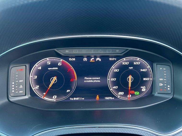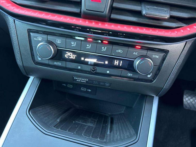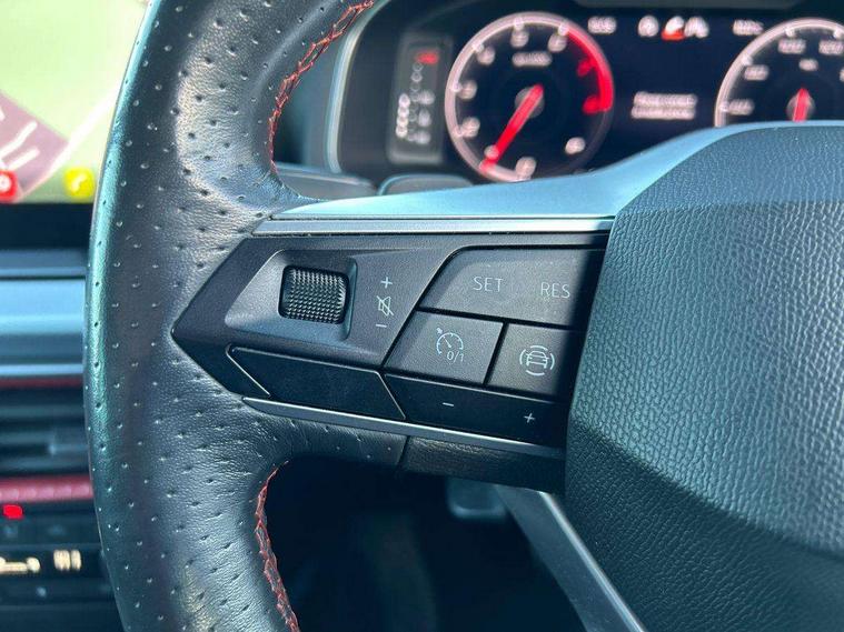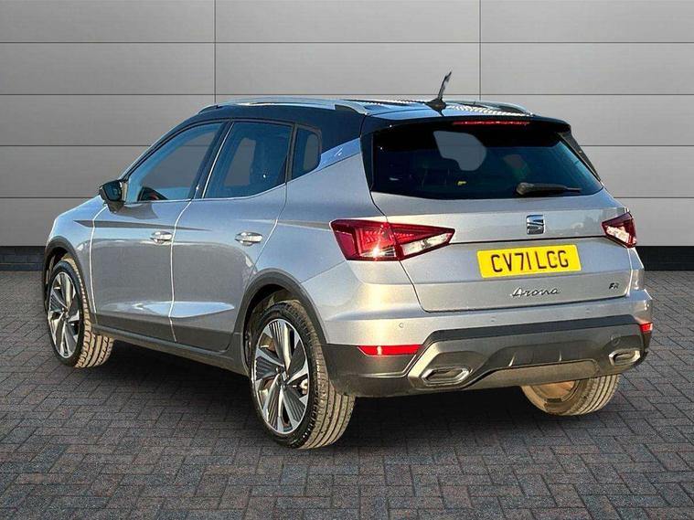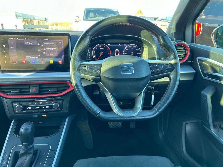 Digital cockpit, Electric speed sensitive power steering, Full Link Smartphone Integration with Mirror Link, Apple Car Play, Google Android Auto with USB Type C cable for Apple and Android compatibility, Lane keeping system, Rear parking sensor, Seat connect with safety, service, remote and online, SEAT Drive profile - Four different models normal-sport-eco-individual, steering response, throttle response and gear shifts mode, Bluetooth interface for hands free and audio streaming, DAB digital radio and AM/FM radio, Steering wheel mounted audio controls, Anti theft roof antenna, Auto dimming interior rear view mirror, Automatic activation of hazard warning lights, Body coloured bumpers, Body coloured door handle inserts, Chrome roof rails and window surrounds, Chrome window trim, Dark tinted rear windows, Electric front/rear windows, Electrically adjustable, heated and folding door mirrors, FULL LED automatic headlights with dynamic headlight range control, coming and leaving home, LED daytime running lights, LED rear tail lights and licence plate lights, Protective side mouldings, Rain sensing wipers, Rear spoiler, Rear window wash/wipe, Roof colour door mirrors, Twin exhaust pipe styling hidden exhaust pipe, Visible VIN plate, Windshield wiper with intermittent control and potentiometer, 2 cupholders, 60/40 split folding rear seat, Aircare filter, Black interior roof, Daring red Illuminated coloured air vent, Double boot floor, Driver sunvisor with covered mirror + card holder, Dual zone climate control, Front courtesy light with 2x front and 2x rear reading lights, Front seat back storage pockets, Front sport seats, Heated front seats, Height adjustable front seats, Height/reach adjustable steering column, Illuminated boot, Interior ambient lighting, Interior light in footwell, central console and door panel, ISOFIX points in outer rear seats with top tether anchorage points, Microsuede cloth upholstery, Passenger sunvisor with vanity mirror, Perforated flat bottomed leather steering wheel/gear knob/handbrake with red stitching and FR logo, Steering wheel mounted gearshift paddles, Two front and three rear height adjustable headrests, Connectivity pack plus - Arona, Interior chrome pack - Arona, 3 point seatbelts on all rear seats, ABS, Active front headrests, Child locks on rear doors, Driver and front passenger airbags with front passenger airbag de activation, front side and curtain airbags, Electronic stability control, Emergency Brake Assist (EBA) and front assist, Front and rear seatbelt reminder, Hill hold control, Multi-Collision braking, Tiredness recognition system, Traction control, Tyre pressure monitoring system, Alarm with back-up horn, Electronic engine immobiliser, Locking wheel bolts, Remote central locking + deadlocks, Tow away protection, Titan black dashboard, 18" Performance Cosmo grey matt alloy wheels,