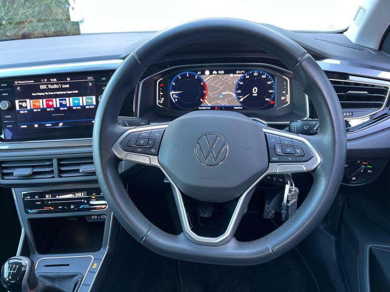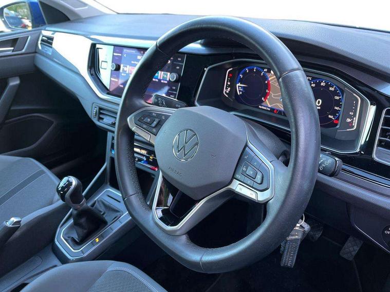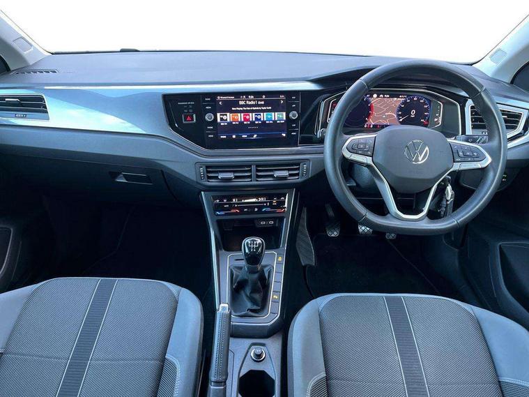 Adaptive cruise control without follow-to-stop and speed limiter, Bluetooth mobile phone interface, Digital Cockpit Pro with 10.25" Display, Driver alert system, Dynamic road sign display, Emergency call service, Power assisted speed sensitive steering, Preparation for We connect and We connect plus, Speedo and rev counter, electronic odometer, trip, service interval display and fuel gauge, Standard rear axle, Travel Assist - Lane keeping system and traffic jam assist, Travel assist including emergency assist, Trip computer, Warning signal and warning light for front and rear seatbelts not fastened, Washer fluid level indicator, Wireless app connect, Front wheel drive, Rear shock absorpion, Start-stop system with battery regeneration (recuperation - energy recovery during braking), DAB Digital radio, Diversity antenna for FM reception, Front and rear 6 speakers, Automatic dimming interior rear view mirror, Automatic headlights, Body colour door handles, Body coloured bumpers and radiator grille with chrome trims, Electric front windows, Heat insulating darkened glass in side and rear windows, Heat insulating glass windscreen, LED separate daytime running lights with coming/leaving home function, Power folding adjustable/heated exterior mirrors and front passenger exterior mirror lowering function, Rain sensor, Rear electric windows, Rear fog light, Rear side wing doors, Rear windscreen washer and wiper with interval delay, Third brake light, 12V power socket in centre console, 2 USB-C ports in the front, 2 USB-C charging sockets on the center console in the rear, 3 rear head restraints, 60/40 split folding rear seat and rear seat bench not split, Air care climatronic air conditoning system with active combination filter and 2-zone temperature control, Ambient lighting, Ceramique headliner, Chrome plated radiator grille inserts, air vent surrounds and light switch surrounds, Door and side trim panel, Driver and front passenger seat height adjustment, Driver/passenger sunvisors with illuminated vanity mirrors, Front + rear carpet mats, Front centre armrest, Front footwell illumination, Front seat backrest storage pockets, Front sports comfort seats, Handbrake lever handle in leather, Isofix child seat preparation easy-fit (for two outer rear seats, and front passenger seat) compatible with I-size, Leather trimmed gear knob, LED interior light with switch off delay and dimmer, 2 reading lights front and rear, Luggage compartment cover, Luggage compartment floor, Luggage compartment lighting, Lumbar adjustment for front seats, Multifunction steering wheel, Single front passenger seat, Standard pedal cluster, IQ LED matrix headlights pack - Polo, Light and vision pack - Polo, 3 point height adj front seatbelts + pretensioners, 3x3 point rear seatbelts, ABS, Driver and front passenger airbag with front passenger airbag deactivation, Drivers and front passengers safety optimised head restraints, ESC (Electronic stability control) + EDL (Electronic Differntial lock) and ASR (Traction control), Extended and predictive pedestrian/ cyclist protection, Front curtain and side airbags with center airbag, Front disc brakes, Hill hold control, Manual child lock in rear doors, Rear drum brakes, Single tone horn, Tyre pressure loss indicator, Alarm with interior protection, Anti-theft alarm system with interior monitoring, backup horn, and towing protection, Anti-theft wheel bolts, Electronic engine immobiliser, Chrome applications on rotary light, mirror adjustment, window regulator switches, outlet with frame in black, Deep iron gloss decorative inserts in dash and front door panels, Low rolling resistance tyres,