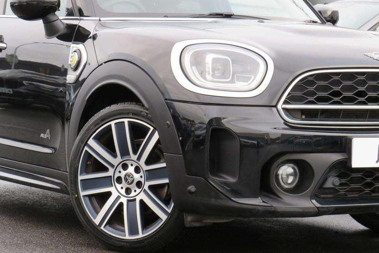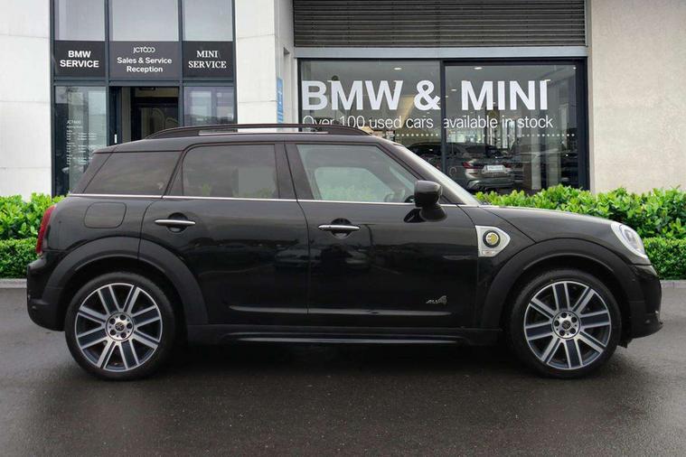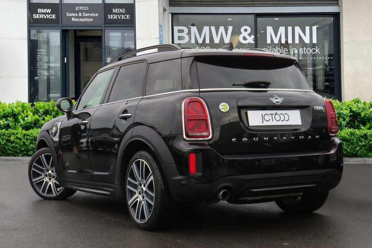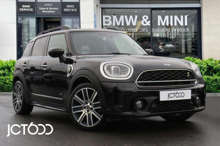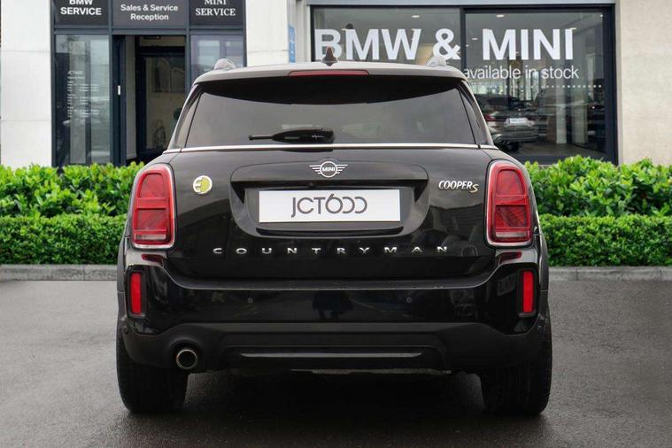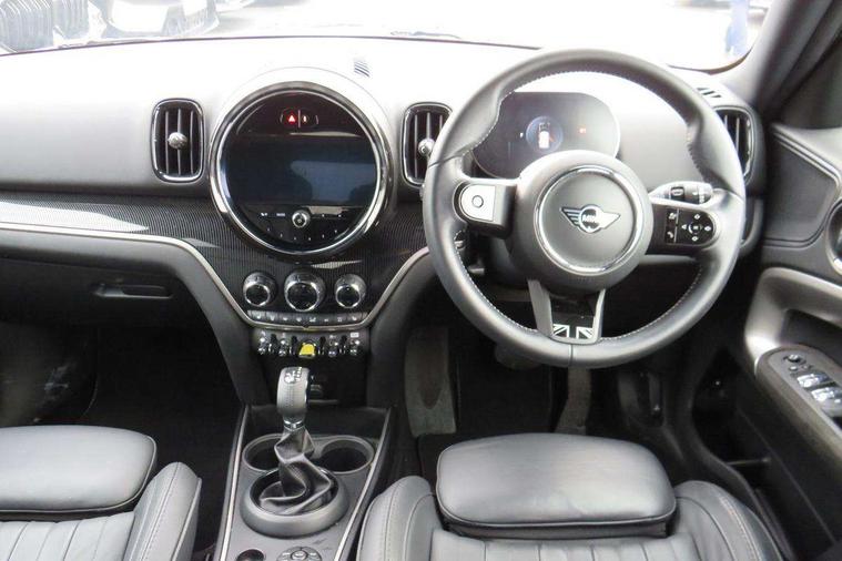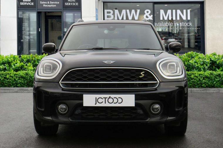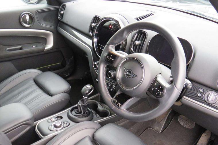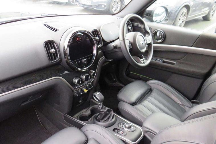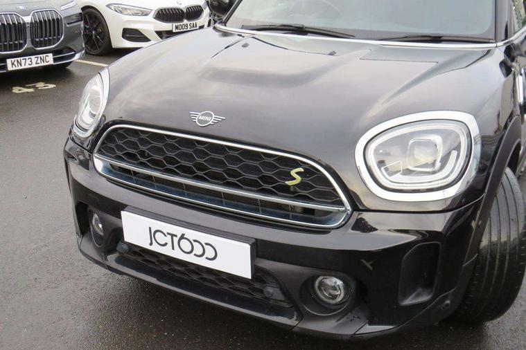 Active Guard incl speed limiting and lane departure functions with auto steering, and front collision warning with brake intervention, Automatic start/stop function with brake energy recuperation, Compatible mobile phone bluetooth with audio streaming, Cruise control with brake assist, eDrive button, Electro-mechanical speed dependant steering assistance, Instrument cluster, On board computer, Rear parking distance control, 36L fuel tank, Automatic transmission, Charging flap on front left lower A-panel, Double Vanos system, Fully variable valve control, High precision injection, Home charging cable, Performance Control, Public charging cable, FM tuner and DAB digital radio, Bonnet scoop, Chrome fuel filler cap, Day time driving lights, Dynamic brake lights, Electric windows, Heated rear window, Heated windscreen washer jets, LED fog lights, LED Headlights, Metal door sill strips with Cooper S imprint, MINI yours exterior badge in C-Pillar, driver and passenger side, Model logo, Model logo on Tailgate, Rain sensor with auto headlights, Rear fog lights, Rear window wiper, Side scuttle panel with integrated indicator, Split rear doors, Sun/heat protection glass, White indicator lenses, 12V socket in centre console, 360L luggage compartment capacity, 4 lashing eyes in luggage compartment, 40:20:40 split folding rear seats, Anthracite headlining with grab handles and clothes hooks, Chrome interior highlights, Colour line - Carbon black, Cupholders, English handbook, Front headrests, Glove compartment, Height and length steering column adjustment, Interior lighting with 12 basic colours selectable via toggle switch in roof, Isofix rear child seat preparation, Leather gearshift lever and handbrake gaiters, LED reading lights, vanity mirror lights, front foot well light and spotlight on front seats, Manual air conditioning, MINI Yours fine walk nappa leather steering wheel with contrast stitching in silver and MINI Yours badge, MINI Yours floor mats, Multifunction steering wheel, Rear headrests, Storage compartments in doors, Sunvisors with vanity mirrors, Excitement pack - Countryman, Navigation pack - Countryman, 2 tone horn, 3 point seatbelts on all seats, 6 Airbags - front, side, head and seat belt tensioners, Acoustic pedestrian protection, Anti-lock braking system (ABS), DSC - Dynamic Stability Control, Electronic handbrake, Front and rear disc brakes, Hill start assist, Tyre pressure monitoring system, Alarm system with tilt sensor, monitoring doors, bonnet interior and tailgate, Auto drive away locking, Deadlocking function, Electronic vehicle immobiliser, Locking wheel bolts, Start/stop toggle with keyless go, Tool kit,
