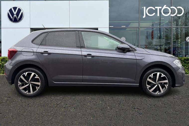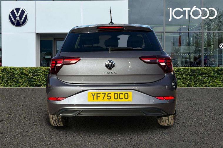 Advanced driver attention and drowsiness monitor, Bluetooth mobile phone interface, Dynamic road sign display, Emergency call service, Multifunction front facing camera for distance control, Power assisted speed sensitive steering, Predictive adaptive cruise control without follow-to-stop and speed limiter, Preparation for navigation system with media and internet package, Preparation for We connect and We connect plus, Rear view camera, Speedo and rev counter, electronic odometer, trip, service interval display and exterior temperature gauge, Standard rear axle, Travel Assist - Lane keeping system and traffic jam assist, Travel assist including emergency assist, Trip computer, Warning signal and warning light for front and rear seatbelts not fastened, Washer fluid level indicator, Wireless app connect, Front wheel drive, Rear shock absorpion, Start-stop system with battery regeneration (recuperation - energy recovery during braking), DAB Digital radio, Diversity antenna for FM reception, Automatic dimming interior rear view mirror, Automatic headlight control with LED separate daytime running lights with coming/leaving home function, Body colour bumpers with chrome inserts, Body colour door handles, Body colour door mirrors, Electric front windows, Engine badge deletion, Headlight range adjustment, Heat insulating and laminated safety glass windshield, LED Headlights, LED rear combination lamps, Power folding adjustable/heated exterior mirrors and front passenger exterior mirror lowering function, Rain sensor, Rear electric windows, Rear fog light, Rear side wing doors, Rear tinted glass from B-pillar backwards approx 65% tinted, Rear windscreen washer and wiper with interval delay, Third brake light, 12V power socket in centre console, 2 front and 2 rear reading lights with switch off delay and dimmer, 2 USB-C ports in the front, 2 USB-C charging sockets on the center console in the rear, 3 rear head restraints, 60/40 split folding rear seat and rear seat bench not split, Ceramique roof lining, Chrome plated radiator grille inserts, air vent surrounds and light switch surrounds, Door and side trim panel, Driver and front passenger seat height adjustment, Driver/passenger sunvisors with illuminated vanity mirrors, Front centre armrest, Front seat backrest storage pockets, Front standard seats, Handbrake lever handle in leather, Hartley/Thomas cloth upholstery, Headliner in recycled material, Isofix child seat preparation easy-fit (for two outer rear seats, and front passenger seat) compatible with I-size, Leather trimmed gear knob, Luggage compartment cover, Luggage compartment lighting, Removable luggage compartment floor, Single front passenger seat, Standard climatic zones, Standard pedal cluster, Three spoke leather wrapped multifunction steering wheel with shifting paddles, Light and vision pack - Polo, 3 point height adj front seatbelts + pretensioners, 3 point seat belt for centre rear seat, 3 point seatbelts, outer rear with ECE lable, ABS, Driver and front passenger airbag with front passenger airbag deactivation, Drivers and front passengers safety optimised head restraints, ESC (Electronic stability control) + EDL (Electronic Differntial lock) and ASR (Traction control), Extended and predictive pedestrian/ cyclist protection, Front assist with autonomous emergency braking (for Adaptive Cruise Control ACC up to 130 mph), Front curtain and side airbags with center airbag, Front disc brakes, Hill hold control, Manual child lock in rear doors, Rear drum brakes, Single tone horn, Tyre pressure loss indicator, Alarm with interior protection, Anti-theft alarm system with interior monitoring, backup horn, and towing protection, Anti-theft wheel bolts, Electronic engine immobiliser, Lava stone black gloss/matt decorative inserts in dash and front door panels, 16" Torsby alloy wheels, Low rolling resistance tyres,