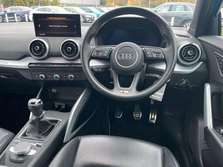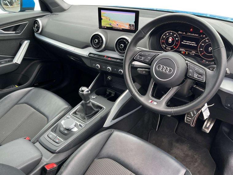 3D map display, Audi connect navigation and infotainment includes innovative services, Audi connect remote and control connects your vehicle to your smartphone, Audi drive select: power steering assistance + engine (modes: comfort, auto, dynamic, efficiency, individual), Audi smartphone interface - Apple carplay/Android Auto, USB connect, 2xSDXC card readers, voice control for navi, telephone, music and 3rd party apps, Audi virtual cockpit, Automatic start/stop system with recuperation, Bluetooth interface includes bluetooth audio streaming, Camera based traffic sign recognition, Cruise control, Distraction and Fatigue warning, E-call, Jukebox hard drive memory for music (10GB), Lane departure warning, MMI navigation plus with 8.8" touchscreen, Natural voice recognition, Power operated tailgate, Progressive steering, Sport suspension, DAB Digital radio, USB type C port, Auto dimming rear view mirror, Black window trims, Body colour door mirrors, Electrically adjustable, folding, auto dimming and heated door mirrors with integrated LED side indicators, Front windscreen with grey tinted sunband, LED daytime running lights, LED headlights with dipped beam, high beam, position lights, indicators, LED rear lights, LED third brake light, Privacy glass - dark tinted rear and rear side windows from B-pillar backwards, Rear side wing doors, Rear wiper, S Line badges on the front wings, S Line body styling - front and rear bumpers, side skirts, radiator grille, rear diffuser insert and front air intakes, Variable front intermittent wipers, Wheel arch trims in manhattan grey, 12V socket in front, 3 seat bench in 2nd row, 3 spoke multi-function leather steering wheel with S badging, 4-way electric lumbar support for front seats including manual seat height adjustment for both front seats, 60/40 split folding rear seat bench, Black carpets, Black cloth headlining, Front and rear head restraints, Front centre armrest, Front sport seats, Front/rear floor mats, Height/reach adjust steering wheel, Illuminated door sill trims with S logo, ISOFIX child seat mounting in front passenger and rear outer seats, Single front passenger seat, Stainless steel pedals, Technology Pro pack with deluxe automatic air conditioning- Q2, 3x3 point rear seatbelts, 6 airbags - Front, curtain and front side airbags, Electromechanical parking brake, Electronic stabilisation control including ABS, ASR and EDL, Front passenger airbag deactivation, Hill hold assist, Pre-sense front with pedestrian recognition, Seatbelt monitoring, Tyre pressure warning light with visual and acoustic warning, Warning triangle and first aid kit, Anti theft wheel bolts, Electronically operated child locks, Remote central door locking, Thatcham category 1 alarm, Aluminium interior element, Black dashboard, Gloss black centre console, Matt brushed aluminium trim inlays, Tool kit,