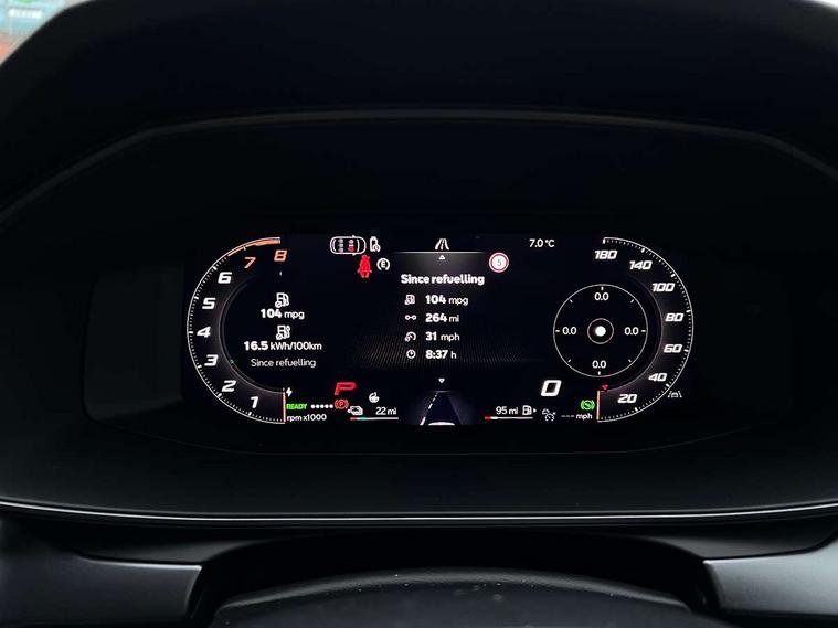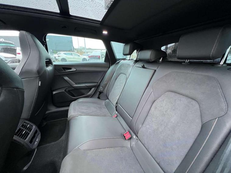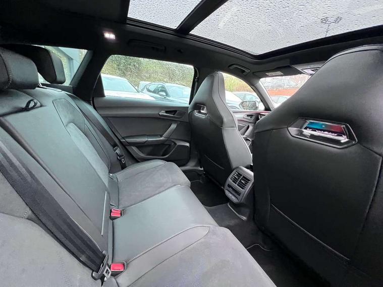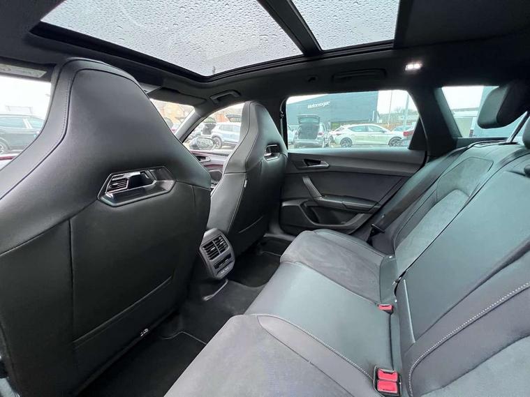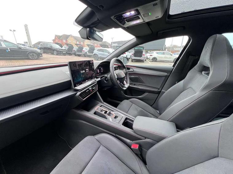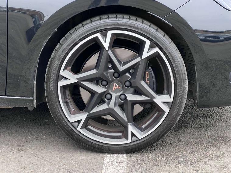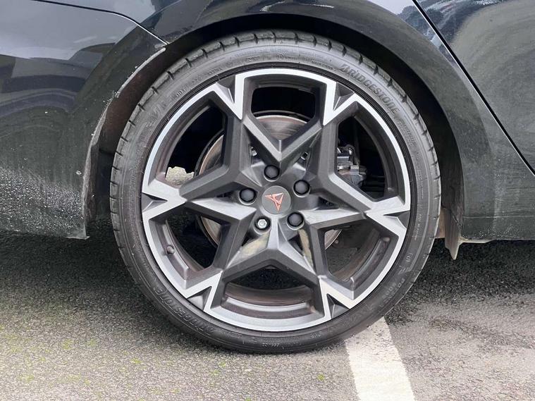 Adaptive cruise control with follow-to-stop and speed limiter, CUPRA drive profile selection with (Comfort/Sport/Individual), throttle response and gearshift mode, Digital cockpit, Dynamic road sign display, E-call, Four x USB Type C ports (2 in front and 2 in rear), Front and rear parking sensors, Front assist with forward collision warning braking reaction to vehicles, pedestrians and cyclists, Full link smartphone integration with Mirror Link, wireless Apple CarPlay and wired Google Android Auto, Lane assist, Lockable tailgate, Rear view camera, RPM, trip computer, outside temp gauge, instrument light brightness, low fuel warning light, lights on reminder, gearshift indicator, Service interval indicator, Start/stop system with regenerative braking, Virtual pedal with electric tailgate, Wireless phone charger, 10 amp mode 2 charging cable, 16 amp mode 3 charging cable, Auxiliary input socket, Auto dimming rear view mirror, Body colour door handles, Body coloured bumpers, Cupra sports bumpers, Dark tinted rear windows, Electric front/rear windows, Electrically adjustable, heated and folding door mirrors, Gloss black roof rails, High beam assist, LED front fog lamps with cornering function, LED rear fog lamp, Matrix LED Headlights with variable light distribution, Matrix Beam and Dynamic headlight range control, Rain sensing wipers, Rear side wing doors, Rear wash/wipe, Separate daytime running light with automatic headlight control and coming home feature, Third brake light, Welcome light with logo projector in door mirrors, 12v power supply in centre console, 3 seat bench in 2nd row, 5 headrests, 60/40 split rear bench seat with armrest, Ambient lighting (glovebox, footwell, ambient lighting multicoloured), Black headlining, Cupra sports pedals, CUPRA Supersports, heated steering wheel with satellite buttons, Dinamica cloth upholstery, Electrically adjustable driver seat and lumbar support with memory function + manually adjustable passenger seat, Front and rear reading lights X 4, Front centre armrest, Heated front seats, Height/reach adjust steering wheel, Illuminated interior front door sills, Interior wraparound lighting, ISOFIX points in outer rear seats with top tether anchorage points, Single front passenger seat, Sliding boot cover, Storage pockets on rear of front seats, Sunvisors with illuminated mirror, Three zone climate control, Tool kit, Dynamic and comfort pack - Leon Cupra, Media system plus with 12.9" display + navigation pack - Leon Cupra, 3 point seatbelts on all rear seats, ABS, Brake control system - ESC and brake booster, Child proof door locks, Cupra black brake calipers, Driver and front passenger airbags with front passenger airbag de-activation, front side and curtain airbags, Electronic parking brake, Hill hold control, Rear disc brakes, Seat belt reminder for front and rear seats, Tiredness recognition system, Tyre pressure monitoring system, Anti theft alarm system with interior monitoring in cab, backup horn and towing protection, KESSY Advanced - Keyless start, keyless entry, Locking wheel bolts, Chrome and copper interior detailing, 19" Polar machined sport black and silver alloy wheel with 91Y tyres,