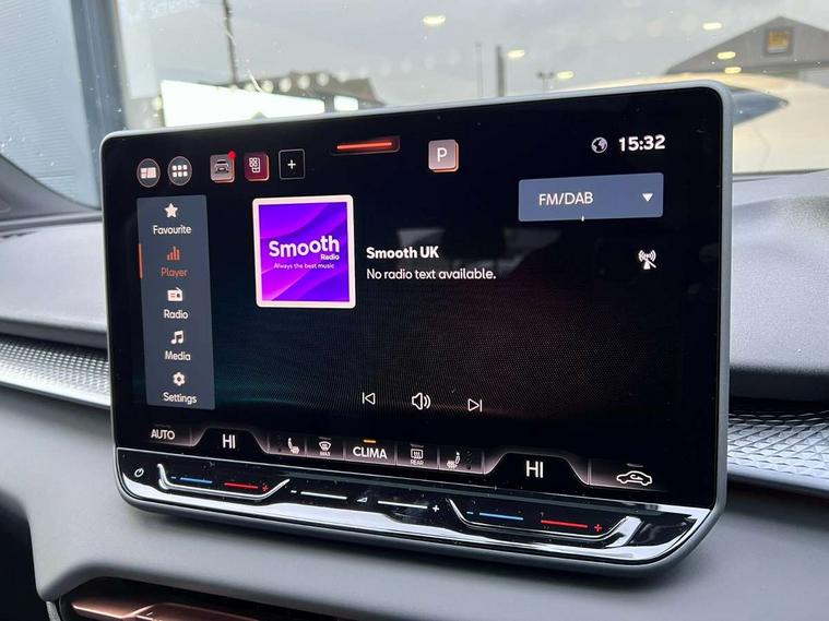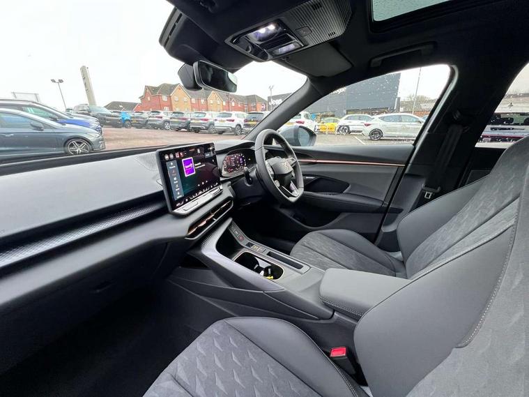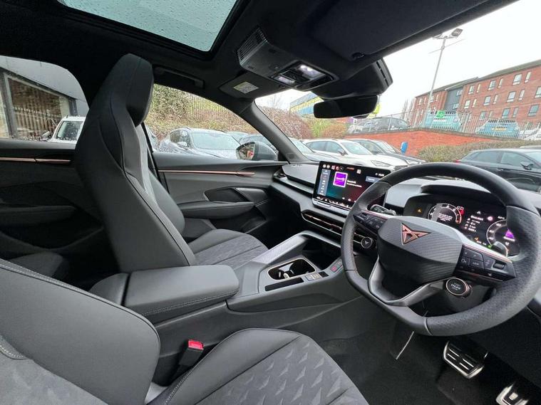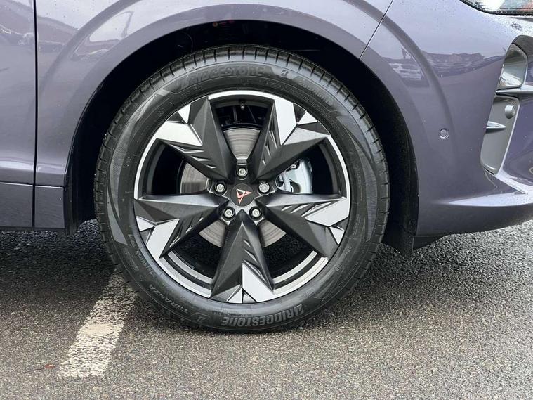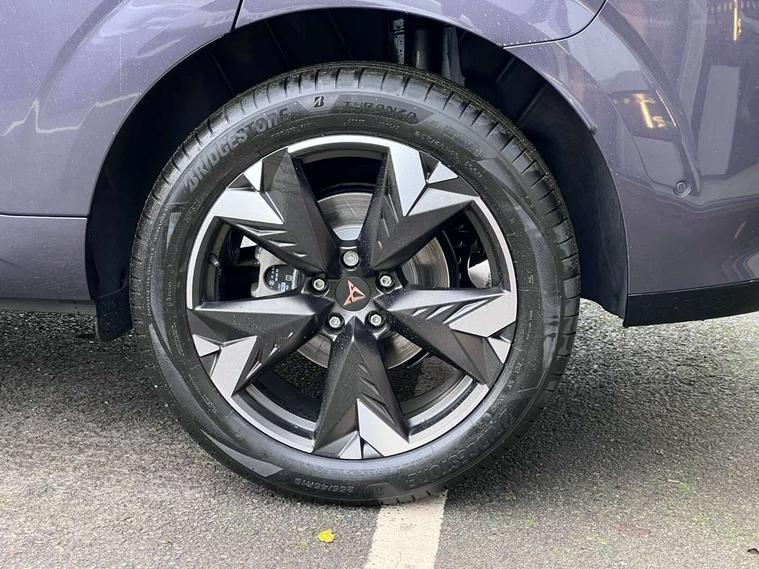 10.25" digital cockpit and configurable dashboard, Adaptive cruise control with follow-to-stop and speed limiter, Advanced driver alert system, Advanced lane assist with semi-automatic vehicle control in a medical emergency and traffic jam assist, Driving profile selection and conventional shock absorber, Dynamic road sign display, E-call, Electric tailgate with virtual pedal, Emergency steering support with turn assist, Four x USB Type C ports (2 in front and 2 in rear), Front and rear parking sensors, Front assist (Forward collision warning with automatic braking) with multifunction camera and front cross traffic assist, Head up Display, Intelligent park assist, Media system with Nav - 12.9" touch display, voice control, full link phone (wired/wireless), DAB and Steering wheel mounted controls, Rear traffic assist, Side and exit assist, Speed sensitive power steering, Start/stop system with regenerative braking, Top view camera (front camera, rear camera, 2 side cameras), Wireless phone charger, Auto dimming rear view mirror, Black roof rails, CUPRA 3D rear lights with ceremony & swiping indicator and illuminated logo, Dark tinted rear windows, Daytime running lights with automatic headlight control and Coming and Leaving home function, Door mirrors with memory function and lowing function on passenger mirror, Dynamic headlight range control, Electric front/rear windows, Electrically adjustable, heated and folding door mirrors, Front fog lamps with cornering function, Heat reflecting windscreen, High beam assist, LED headlamps with signature "CUPRA LED", Rain sensing wipers, Rear fog light on one side, back up light on both sides, Rear side wing doors, Rear wash/wipe, Third brake light, Welcome lights (within exterior mirror housing), 3 seat bench in 2nd row, Black roof lining, Cupra sports pedals, Dinamica cloth upholstery, Driver seat memory function, Electrically adjustable front seats including lumbar support, Front and rear head restraints, Front and rear reading lights X 4, Front centre armrest, Heated front seats, Heated leather wrapped multi function sports steering wheel with tiptronic, Illuminated interior front door sills, Isofix, Operating voltage 12V, Single front passenger seat, Smart wraparound interior lighting, Sunvisors with illuminated mirror, Three zone climate control with control panel in rear, Unsplit rear seat bench, split folding backrest, with centre armrest, Variable luggage/load compartment floor, 3 point seatbelts in front with pretensioner and electric height adjustment, 3 point seatbelts on all rear seats, Brake control system - ESC and brake booster, Child proof door locks, Driver and front passenger airbags, Electronic parking brake, Front and rear disc brakes, Front interaction airbag, Front passenger airbag deactivation switch, Front side airbags with curtain airbags, Pre-crash front and rear seat belt tensioner, window closure and hazard lights, Tyre pressure monitoring system, Visual and acoustic seat belt reminder, electric contact in front and rear, Anti theft alarm, Keyless locking and starting system with keyless access, Locking wheel bolts, Black decorative trims, Chrome interior detailing, 19" Spectrum exclusive machine alloy wheels, Tool kit,