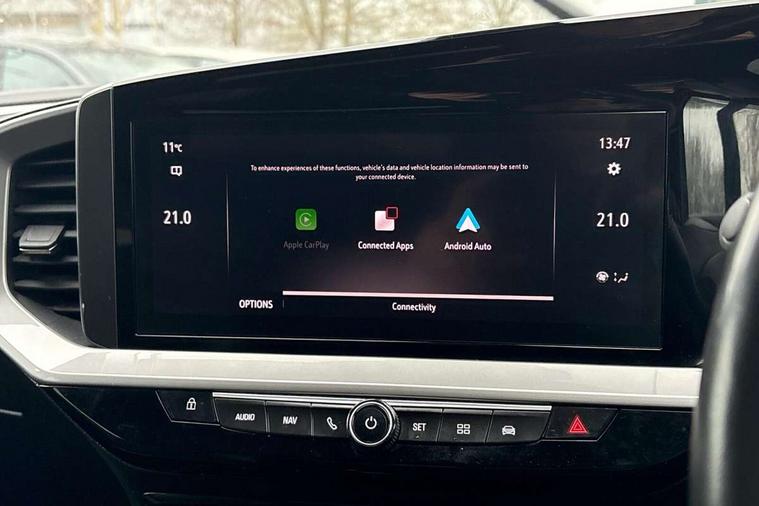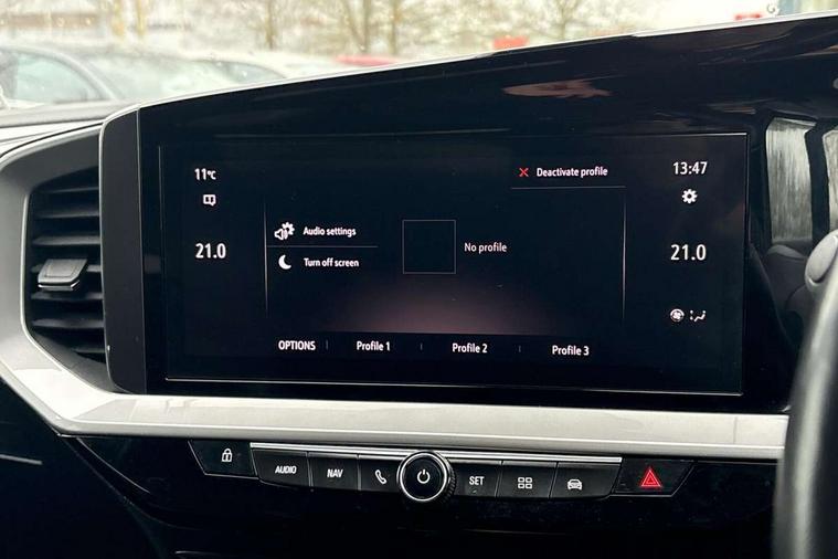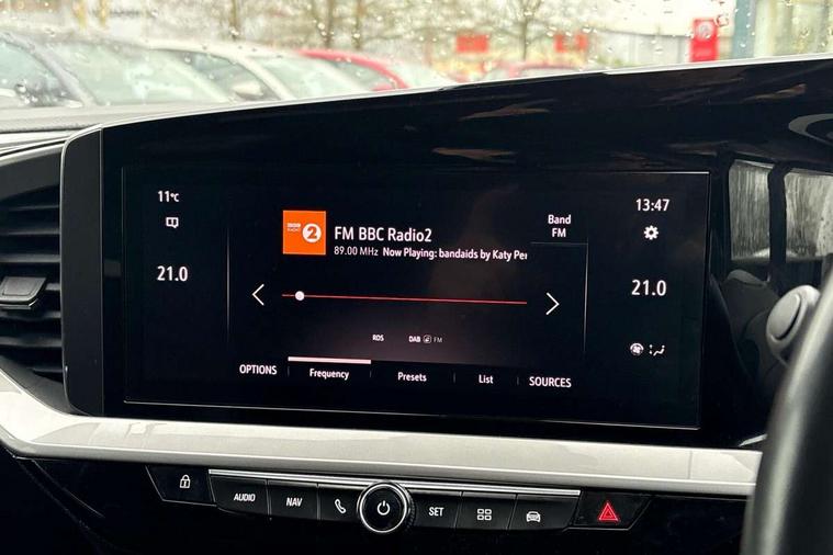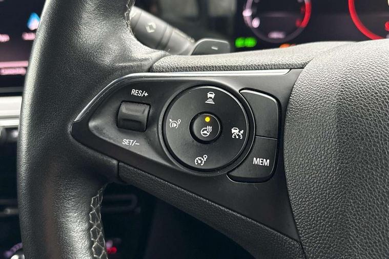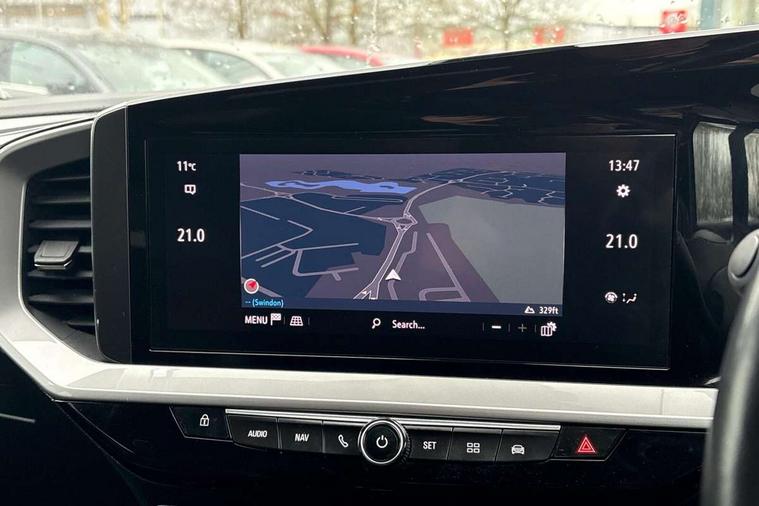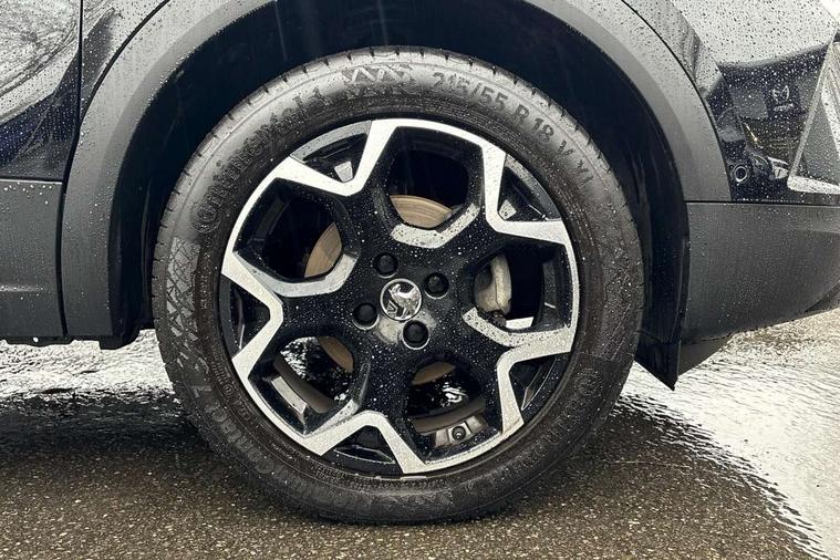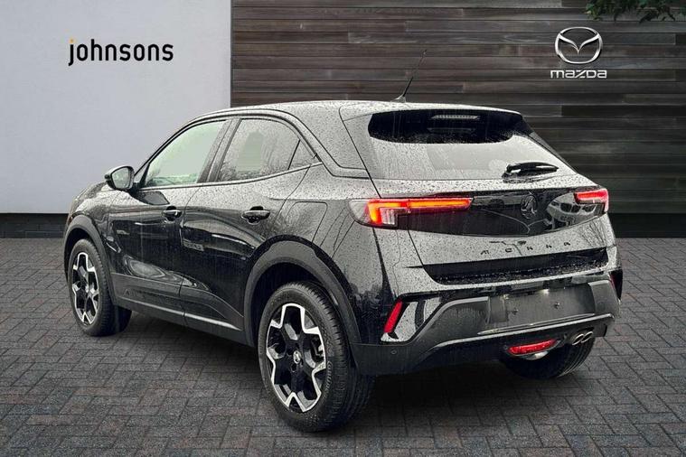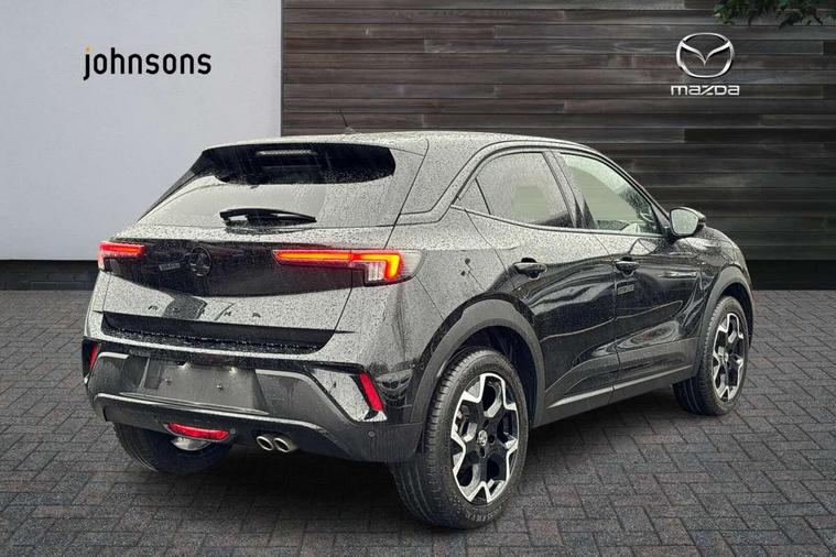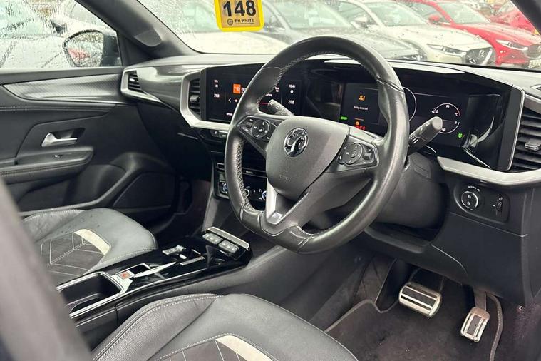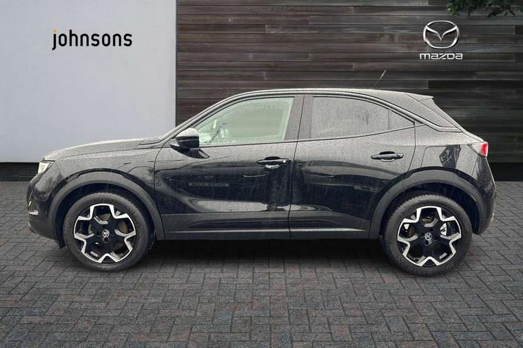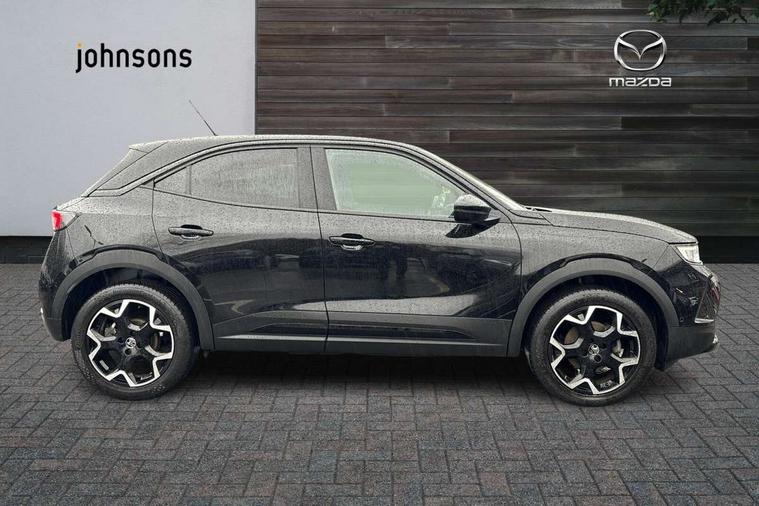 12" digital instrument cluster, Adaptive cruise control with speed limiter, Advanced Park Assist, Digital instrumentation with digital speedometer, rev counter, fuel and water temperature gauge, Driver drowsiness alert system, Driver information display with multi function trip computer, audio info, digital clock and outside air temperature with ice warning function, Engine start/stop button, EV information display, Extended traffic sign recognition, Front and rear parking distance sensors, Front camera and radar system, Lane keep assist system (LAS) with Lane departure warning system (LDWS), Lane positioning assist, Lights on audible warning, Panoramic rear view camera, Power assisted speed sensitive steering, RDS with traffic programme, Side blind spot alert and flank guard, Smartphone integration compatible with Apple CarPlay and Android Auto, Sports switch with engine sound enhancement, Start/stop system, Vauxhall connect with e-Call, Wireless charging for smartphone, 8 speed automatic transmission, 6 speakers, AM/FM stereo radio with 36 station presets, DAB Digital radio, Flexible Roof Mounted Radio Aerial, Front USB connection, Mobile phone portal - bluetooth connect, vehicle microphone, handsfree calls, SMS read out and reply, phone book access, Multimedia Navi Pro with 10" colour touchscreen, Steering wheel mounted controls, Two rear USB sockets, Adaptive brake lights, Automatic headlamp levelling, Automatic lighting control with tunnel detection, Automatically dimming anti dazzle rear view mirror, Black door mirror housings, Black front and rear bumper inserts, Black Griffin logo and vizor frame, Black upper window moulding, Body colour door handles, Body colour front and rear bumpers, Dark tinted rear side windows + tailgate window, Electric adjustable/heated/folding door mirrors + puddle lights, Electrically operated front and rear windows with safety auto reverse and one touch up/down facility, Hazard warning lights, Heated rear window+rear wash/wipe, High beam assist with anti glare, Integrated black tailgate spoiler, IntelliLux Matrix LED headlights with adaptive forward lighting, LED 3rd brake light, LED daytime running lights, LED front fog lamps, LED side repeat indicators, LED tail lights, Rear foglight, Rear side wing doors, Reversing light, Solar heat absorbing windscreen and windows, Two speed rain-sensitive windscreen wipers with variable intermittent wipe, Windscreen and side window demist vents, 12V Accessory socket, 3 seat bench in 2nd row, 3 spoke flat bottomed leather steering wheel with satin chrome bezel, 4 speed fan with illuminated controls, 6 way manual adjustable driver fore/aft, up/down with reclining seatback, 6 way manual adjustable front passenger fore/aft, up/down with reclining seatback, 60/40 split folding rear seat, Air recirculation system, Alcantara/leather upholstery, Alloy sports pedals, Black headliner, Cabin particulate filter - removes dust, airborne particles and pollen, Centre console with two cup holders at front and one in rear, Chrome effect interior door handles, Door pockets with two litre capacity, Driver and passenger sun visors with vanity mirror, Driver seat lumbar support and massage function, Electronic climate control (ECC), Four adjustable facia vents, Four load restraint lashing eyes, Front centre armrest with storage, Front head restraints, Front map reading lights, Front seat back storage pockets, Fully carpeted load area, Heated front seats, Heated steering wheel, Interior courtesy light, Interior tailgate handle, Luggage compartment cover, Luggage compartment lighting, Movable boot floor, Reach + rake adjustable steering column, Single front passenger seat, Steering wheel mounted paddle shift, Three height adjustable rear seat head restraints, Twin gas assisted tailgate struts, Black Pack with badge - Mokka, 2x Isofix child seat fitting on outer rear seats, 3x3 point rear seat belts, Anti-lock braking system (ABS), Child proof locks on rear doors, Cornering brake control, Deactivation switch for front passenger front and side impact airbags, Drag torque control, Driver and front passenger airbags, front seat side impact airbags, full size curtain airbags, Electronic brake force distribution, Electronic Stability Programme (ESP), Emergency brake assist, Enhanced automatic emergency braking with pedestrian detection, Forward collision alert at all speed, Hill start assist, Inertia reel lap and diagonal seatbelts for all seats, Seatbelt unfastened audible warning and warning light, Straight line stability control, Traction control, Tyre pressure monitoring system, Electronically protected audio equipment, Engine deadlock immobiliser, Freewheeling door locks, Key left in ignition audible warning, Keyless entry and start, Locking wheel nuts, Remote control central locking, Remote control ultrasonic security alarm system, Visible vehicle identification number, Atlantis black trim inserts of front doors, Black facia with silver trim insert, Instrument panel bar in polar silver, 18" bi colour alloy wheels,
