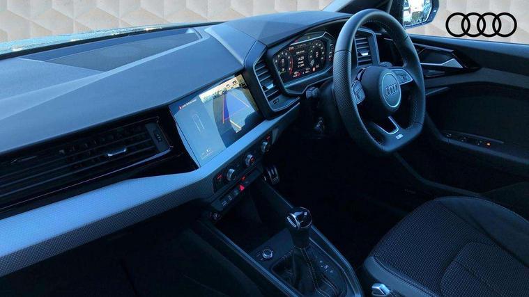 10.25" Digital instrument cluster display classis style instrument dials + speed, odometer, time, outside temperature, telephone menu + fuel level warning, Advanced driver attention and drowsiness monitor, Audi connect emergency call and service, Audi drive select, Audi remote connect and control, Bluetooth interface, Camera based traffic sign recognition, Cruise control, Driver's information system, Electromechanical power steering, Lane departure warning system, Rear parking sensor, Service interval indicator, Smartphone interface, Speed limiter, Start stop system with recuperation, Voice control system, Washer fluid level indicator, Sports suspension, 2 x USB type C connection points, 6 loudspeakers, DAB Digital radio, MMI radio plus with 10.1" colour MMI display screen and MMI touch, Auto dimming rear view mirror, Black door mirror housings, Black side skirts, Body coloured bumpers, Door sill trims with aluminium inlays and logo, Electric front and rear windows, Electrically adjustable, heated, folding door mirrors with integrated LED side indicator, Front side air inlets in grained matt black and C frame in anthracite black, Front wing badges, Headlight cleaning system, Heat insulating glass windscreen and side windows, Heated rear windscreen, High level LED brake light, LED daytime running lights, LED headlights with range control LED rear lights + dynamic rear indicators, Light and rain sensors, Privacy glass, Radiator grille and rear diffuser in matt anthracite black, Radiator protective grille frame in matt aluminium silver, Rear fog lights, Rear side wing doors, Rear wiper, Side front spoiler lips in grained matt black, 12V socket in centre console with two cup holders, 3 rear seats with headrests, 3 seat bench in 2nd row, 3 spoke flat bottomed multi-function plus leather steering wheel with S badging, grips in preforated leather, contrast stitching and paddle shift, 40:60 Split folding rear seat or fully collapsed, Black carpets, Black cloth headlining, Front and rear velour black floor mats with contrast stitching in fine silver, Front head restraints, Front passenger seat, Height and reach adjustable steering wheel, Interior lighting includes roof module, front and rear reading lights and right luggage compartment lighting, ISOFIX child seat mounting for front passenger and outer rear seats including top tether attachment point of outer rear seats, Leather gear knob with aluminium trim, Leather handbrake grip, Manual air conditioning, Manual height adjustable for driver and front passenger seat, Manually adjustable lumbar support in front seats, Stainless steel pedals, Ambient lighting package - A1, Black styling pack - A1 Sportback Black Edition, Luggage compartment pack - A1, 3x3 point rear seatbelts, Audi pre-sense front with pedestrain and cyclist recognition, Brake assist function, Driver and front passenger airbag with front side and head airbags, Electronic Stability Control including ABS, EBD, ASR and EDL, Front passenger airbag deactivation switch, Hill hold assist, Manual rear child locks, Seatbelt height adjustment for front seats, Seatbelt monitoring, Tyre pressure loss indicator, Warning triangle and first aid kit, Anti theft alarm, Anti theft wheel bolts, Immobiliser, Remote control key with safelock, Aluminium trim for control switches, air vents and digital instrument cluster, Black dashboard, Silver grey inlays polygon structure in diamond paint finish, Structured grey accent surfaces insert of air vents, interior door handle recesses and centre console in quartz paint finish,
