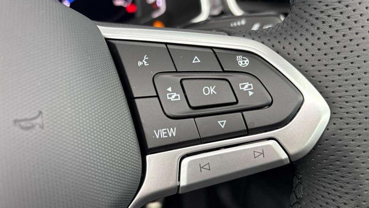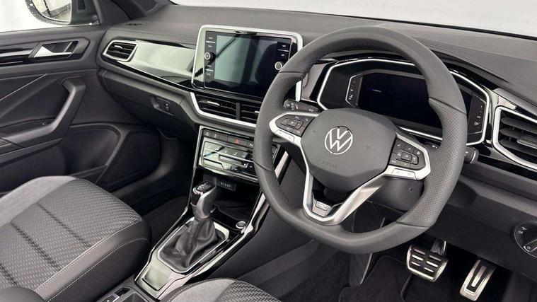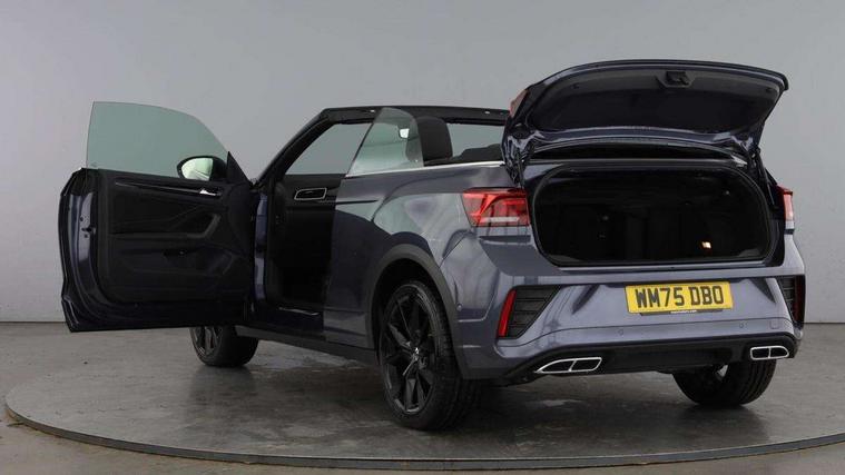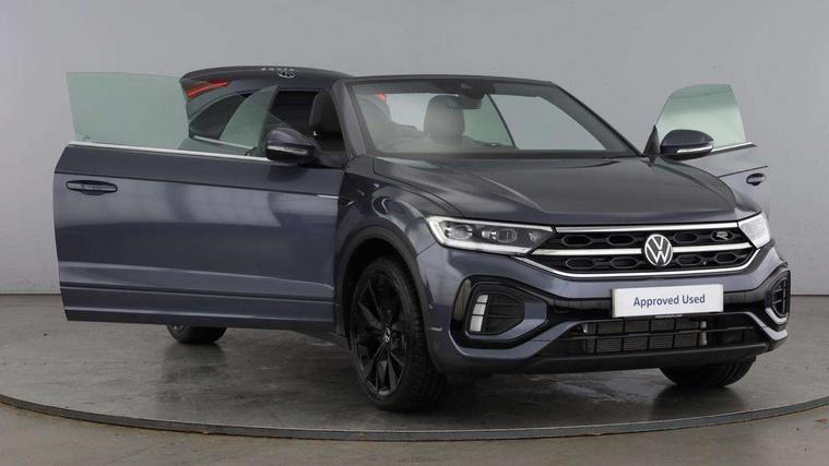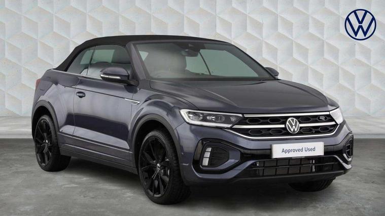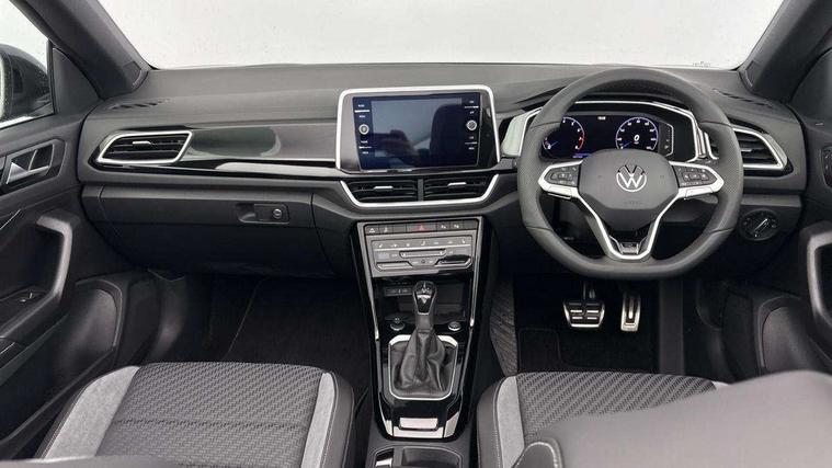 Adaptive cruise control and speed limiter, Advanced driver attention and drowsiness monitor, Brake pad wear indicator, Car information display, Digital Cockpit Pro with 10.25" Display, Driver tips and journey analysis, Dynamic road sign display, Emergency call service, Modified key software - reduce switch off time for key status change to Long no motion, Multifunction computer with visual gear change recommendation for fuel consumption, Multifunction front facing camera, Online services, Park assist including front and rear parking sensors, Speedo and rev counter, electronic odometer, trip, service interval display and exterior temperature gauge, Start/stop system with brake energy recovery, Tailgate/trunk lid release from outside, Warning sound and light for front seatbelts unfastened, Wireless App-Connect for apple Carplay and android Auto, Digital radio reception (DAB), Diversity antenna for FM reception, Mobile phone interface with inductive charging feature, Music playback - MP3, WMA and AAC files, SMS functionality - read, compose and send SMS messages using touch-screen display, Title and cover art display, USB-C Interface and USB charging socket, We Connect and We Connect Plus functionality, Ambient lighting with logo projection, Auto dimming interior rear view mirror, Automatic hazard lights activation under emergency braking, Automatic headlight control with LED separate daytime running lights with coming/leaving home function, Black roof, Body colour door handles, Body colour rear boot spoiler, Chrome effect left and right trapezoid exhaust tailpipe fascia surround, Chrome trim on upper and lower radiator grille, Dark red rear combination lamps in LED technology, Dusk sensor, Exterior mirrors aspherical on driver side, convex on front passenger side, Heat insulating glass windscreen, LED 3rd brake light, LED rear number plate lights, Power operated canvas convertible top, Power windows with comfort operation and circuit breaker, R-Line design body coloured bumpers, Rain sensor, Rear boot, Rear exhaust tailpipe, Rear fog light on one side and reversing lights on both sides, Remote electrically foldable door mirrors, puddle lights and reverse activated passenger door mirror, Volkswagen roundel, Windscreen wiper with intermittent wipe light, Without exterior ambient lighting, 12V socket in centre console storage area, 2 LED front reading lights, 2 seat bench in 2nd row, 50:50 Split folding rear seat backrests with fixed rear seat bench, Air care climatronic air conditoning system with active combination filter and 2-zone temperature control, Black door lower parts with chrome trim, Chrome plated surround to light, mirror and window switch, Door and side trim panel with leatherette insert, Easy entry backrest release, Front and rear carpet mats with black stitching, Front centre armrest, Front cupholders x 2, Front door pockets, Front seat back storage pockets, Front sports comfort seats with manual height adjustment, Heated leather wrapped multi function sports steering wheel with tiptronic, Height/reach adjust steering wheel, Inserts of front seats and outer rear seats in ArtVelours titan black, Instrument lighting, white adjustable panel illumination, Interior light delay, Interior light in footwell, Interior lighting with switch off delay and contact switches on all doors, Interior white ambient lighting and surround lighting, Isofix child seat preparation, Lockable glove compartment with light, Luggage compartment lighting, Power adjustable lumbar support in front, Rear head restraints, Single front passenger seat, Stainless steel pedals, Sun visors with illuminated vanity mirrors, Unique R Line door sill protectors, Driver assistance pack without proactive passenger protection - T-Roc Cabriolet DSG, 2 x 3-point seatbelts/outer rear seats with ECE label, Driver and front passenger airbag with front passenger airbag deactivation, Driver and front passenger safety-optimised head restraints, Drivers seatbelt reminder, Electronic parking brake, Electronic Stability Control (ESC) including ABS, ASR and EDL, Front and rear disc brakes, Front assist with autonomous emergency braking, Pedestrian monitoring, Predictive pedestrian protection, Rigid safety cell with front and rear crumple zones, Side airbag/thorax airbag system, for front passengers, Three point height adjust front seatbelts + pretensioners, Two tone horn, Tyre pressure loss indicator, Volkswagen roadside assistance, Anti-theft alarm system with interior protection and central locking system with SAFELOCK, radio remote control and 2 remote control folding keys, Electronic engine immobiliser, Trims for alloy wheels,