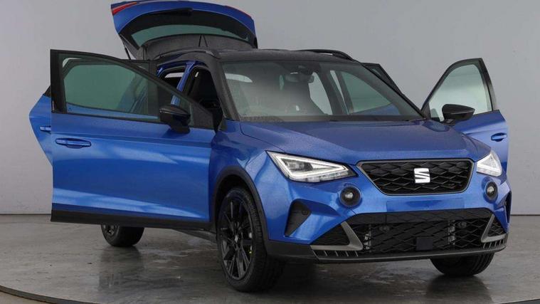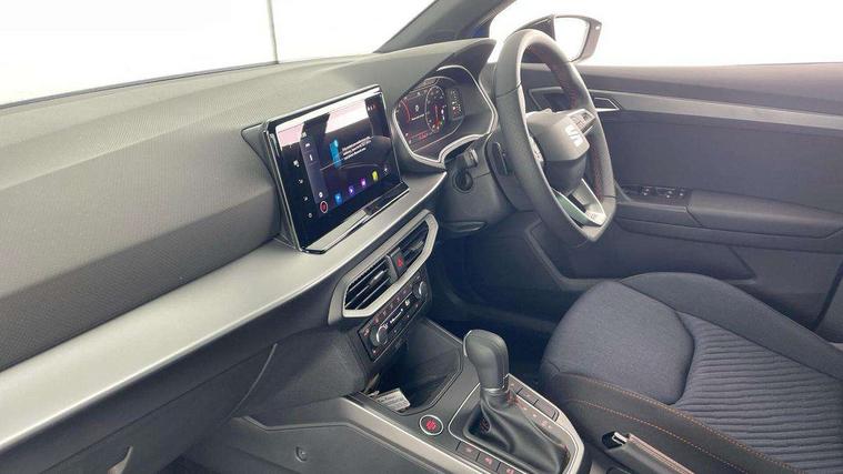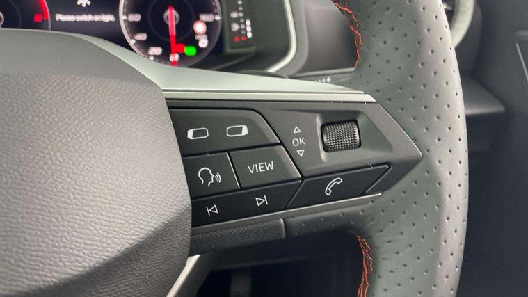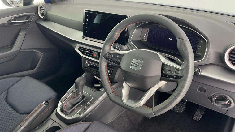 'Lights On' Reminder warning buzzer, 10" Digital cockpit, Digital clock, E-call, Electric speed sensitive power steering, Full link smartphone integration with mirror link, wireless apple carplay, Google android auto + USB Type C cable for apple and android devices, Lane keeping system, Low fuel warning light, Outside temperature display, Park assist system, Rear view camera, RPM counter, SEAT Drive profile - Four different models normal-sport-eco-individual, steering response, throttle response and gear shifts mode, Trip computer, Wireless phone charger, 9.2" colour touchscreen with navigation system, voice control and USB port (type c), Bluetooth interface for hands free and audio streaming, DAB digital radio and AM/FM radio, Steering wheel mounted audio controls, Anti theft roof antenna, Auto dimming interior rear view mirror, Automatic activation of hazard warning lights, Black roof rails and window surrounds, Black side skirts, Body coloured bumpers, Body coloured door handle inserts, Dark tinted rear windows, Electric front/rear windows, Electrically adjustable, heated and folding door mirrors, Front fog lights with cornering function and rear fog light, FULL LED automatic headlights with dynamic headlight range control, coming and leaving home, LED daytime running lights, Lasered lettering on B pillar, LED rear tail lights and licence plate lights, Protective side mouldings, Rain sensing wipers, Rear side wing doors, Rear spoiler, Rear window wash/wipe, Roof colour door mirrors, Third brake light, Twin exhaust pipe styling hidden exhaust pipe, Visible VIN plate, 2 cupholders, 3 seat bench in 2nd row, 60/40 split folding rear seat, Aircare filter, Black interior roof, Double boot floor, Driver sunvisor with covered mirror + card holder, Dual zone climate control, Front courtesy light with front reading lights, Front seat back storage pockets, Gear shift indicator, Grey interior air vents, Heated front seats, Height adjustable front seats, Height/reach adjustable steering column, Illuminated air vent surrounds, Illuminated boot, Instrument lighting with brightness control, Interior ambient lighting, Interior light in footwell, central console and door panel, ISOFIX points in outer rear seats with top tether anchorage points, Microsuede cloth upholstery, Passenger sunvisor with vanity mirror, Perforated flat bottomed leather steering wheel/gear knob/handbrake with red stitching and FR logo, Potentiometer, Single front passenger seat, Sports cloth bucket seats, Steering wheel mounted gearshift paddles, Two front and three rear height adjustable headrests, Interior chrome pack - Arona, Safe and driving pack (S) - Arona, Safety and driving pack (M) - Arona, ABS, Active front headrests, Child locks on rear doors, Driver and front passenger airbags with front passenger airbag de activation, front side and curtain airbags, Emergency Brake Assist (EBA) and front assist, Front and rear seatbelt reminder, Hill hold control, Multi-Collision braking, Tiredness recognition system, Traction control, Tyre pressure monitoring system, Alarm with back up horn with tow away protection, Deadlock, Electronic engine immobiliser, KESSY Keyless entry and go, Locking wheel bolts, Remote central locking, Titan black dashboard, 18" Black alloy wheels,