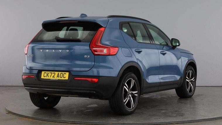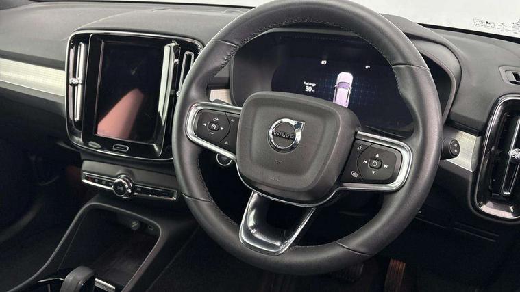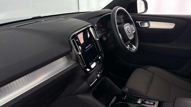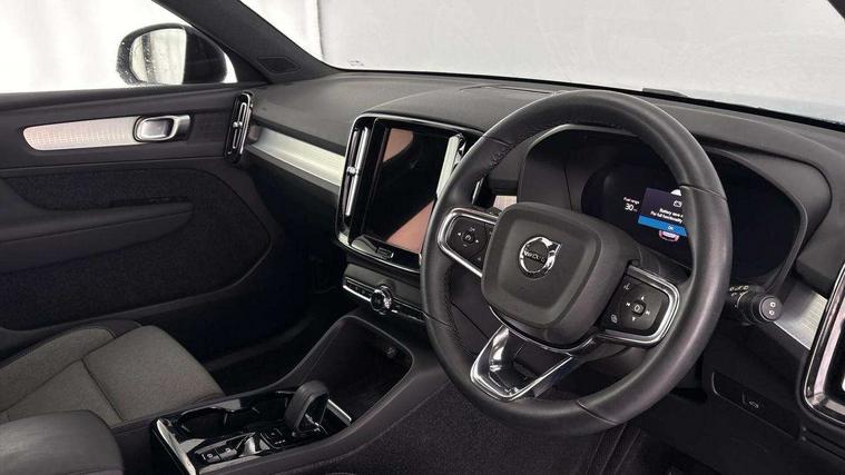 12.3" Progressive Driver Display, 9" centre console portrait touch screen, Adjustable steering wheel force, Bluetooth hands free telephone kit, Cruise control, Driver awareness - blind spot information system with steer assist, cross traffic alert with autobrake, rear collision warning and migitation, E-call, Front park assist, Google automatic services - Nav with google maps, apple carplay/android auto, voice recognition with google assistant, Hands free power tailgate, Lane keep assist with driver alert control, Oncoming Lane Mitigation, Rear park assist, Rear park assist camera, Speed limiter, Speed sensitive steering, Wireless/Inductive Mobile Phone Charging, Dynamic chassis, DAB Digital radio, High performance sound, 8 speakers/250W, front USB and 2 rear type C USB, Steering wheel mounted remote controls, Adaptive brake lights with high level LED brake lights, Auto dimming feature for exterior door mirrors, Auto dimming interior mirror, Automatic headlamp levelling, Automatic LED Headlights + Active high beam incorporating daytime running lights, Front aluminium tread plates, Front and rear electric windows, High gloss black front and rear skid plate, High gloss black mesh front grille with high gloss black surround, High gloss black window trim, Home safe and approach lighting, Integrated roof rails in high gloss black, LED front fog lights, Puddle lights, Rain sensor with automatic windscreen wiper activation, Rear side wing doors, Rear wiper, Roof antenna, Roof spoiler, Visible VIN plate, 12V socket in front tunnel console and luggage compartment, 2-Zone electronic climate control with CleanZone air quality system and pollen filter, 3 seat bench in 2nd row, 3 Spoke tailored steering wheel with chrome trim, 60/40 versatile split folding rear seat, A-pillar parking ticket holder, Ambient front door and instrumental panel lighting, Centre console cupholders and storage, Flexible load floor and grocery bag holder, Floor mats, Front door pocket and front cupholder illumination, Front footwell illumination, Front headrests, Front reading light and theatre lighting, Front seat cushion extensions, Front tunnel pocket, Glovebox bag hook, Heated front seats, Height adjustable passenger seat, Height/reach adjustable steering column, High gloss centre tunnel deco, Illuminated glovebox, Illuminated luggage compartment, Illuminated tailgate, Illuminated vanity mirrors, Integrated waste bin, Isofix attachments on outer rear seats, Load protection net, Multi directional lumbar support, Power driver seat with memory + exterior mirrors memory, Rear armrest / integral cup holders / storage tray, Rear headrests, Rear reading and courtesy lights, Single front passenger seat, Underfloor cargo storage, Climate pack without heated front seats - XC40, 3x3 point rear seatbelts, City safety with steering support with Pedestrian + cyclist + front collision warning with full auto brake and rear auto brake, Drivers knee airbag, Dual stage driver/passenger airbags, Electronic parking brake with auto hold, First aid kit, Front and outer rear seatbelt reminder and pretensioners, Front seats SIPS airbags, Hill descent control, Hill start assist, Inflatable curtain, Passenger airbag cut-off device, Power child locks on rear doors, Road sign information display, Run off Road Mitigation, Run off Road Protection, SIPS (Side Impact Protection System), Slippery road and hazard light alert, Stability and Traction Control with Spin control, Engine Drag Control and Corner Traction Control, Tyre pressure monitoring system, Vehicle deceleration control with Anti-lock Brake System, Electronic Brake Distribution and Emergency Brake Assist, Warning triangle, WHIPS whiplash protection system - front, Anti-theft alarm including immobiliser/volume sensor + level sensor, Key integrated remote control central locking + fuel flap with deadlocking system and auto open/close power windows, Keyless drive includes keyless entry and keyless start, Locking wheel nuts,