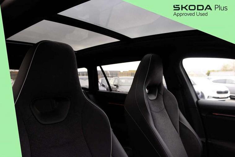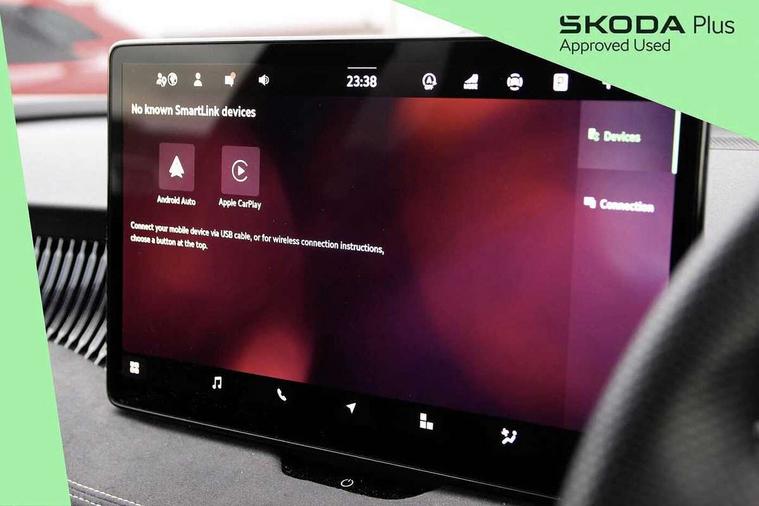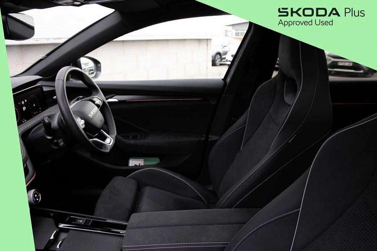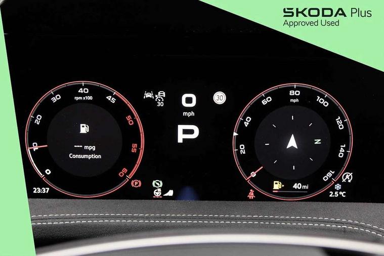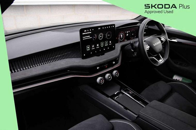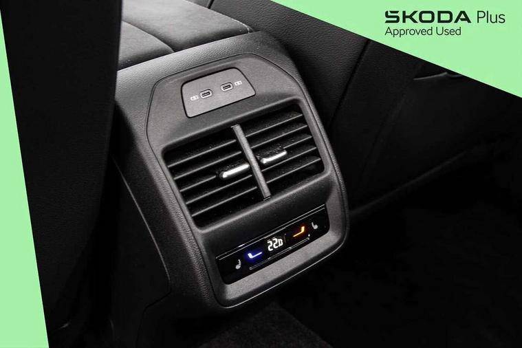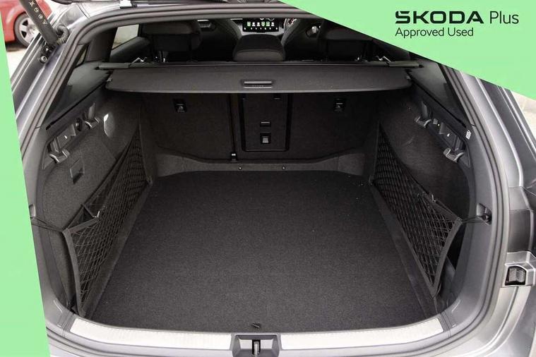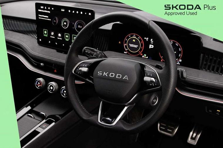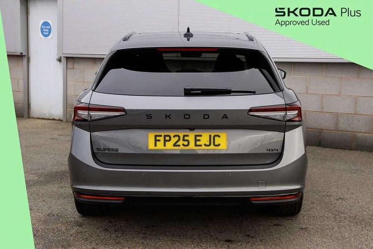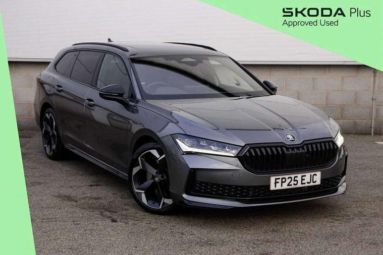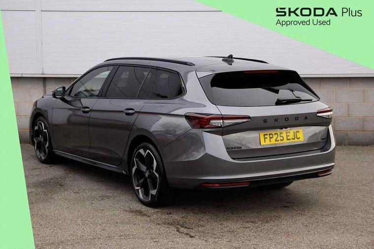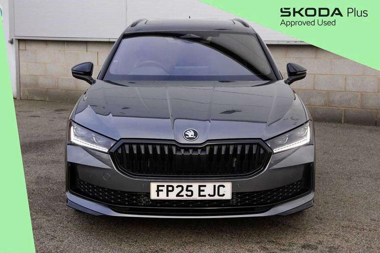 13" touchscreen display with satellite navigation, 4x USB-C ports (2x in front centre console and 2x in rear) (45W), Adaptive cruise control with speed assist, lane assist plus and traffic tram assist, Blind spot detection with door exit warning, Bluetooth system, CareConnect and Emergency Call, ChatGPT functionality, Driver fatigue sensor, Front assist with extended predictive pedestrian protection, Front cross traffic assist, PAS, Quick start all heating software functionality, Stop/start engine system, Traffic sign recognition, Turn assist with evasive assistance, Virtual Cockpit - 10.25" digital display, Voice control system, Washer for rear camera, Wireless charging for one smartphone (15W) with cooling function, Wireless smartlink apple carplay, SmartLink+ android auto, Dynamic chassis control plus with progressive dynamic steering, DAB Digital radio, Display cleaner, FM radio connection, Web radio connection, Acoustic side windows and interior noise suppression, Backdrop lighting, Black exterior styling window and grille surrounds, Black roof rails, Body colour door handles, Dynamic range control with poor weather light and integrated fog light, Electrically adjustable, heated, folding and driver side auto-dimming door mirrors with memory function, integrated indicators and logo projection, Frameless auto-dimming rear view mirror with USB-C, Gloss black door mirrors, Ice scraper in fuel tank cap, LED 3rd brake light, Light assist with High beam control, Light assistant (coming/leaving home/tunnel light), Privacy glass, Rear fog lights (x2), Rear roof spoiler, Rear side wing doors, Rear windscreen wiper, Skoda lettering in black, Sportline badging, Sports bumpers, Windscreen wipers with rain sensor, 12V socket 1x centre console 1x boot, 14-way electrically adjustable, memory, front seats with 4-way pneumatic lumbar support, and extendable thigh support with smart comfort entry aid, 2x cargo elements in boot, 2x light in boot, 3 seat bench in 2nd row, 4x foldable bag hooks in boot, 60:40 Split folding rear seats, Aluminium pedals, Bottle holders in the front doors 1.5 litre bottle and rear 1.5 litre bottle, Cup holder in front with easy open mat, Front armrest with storage box, Front sports seats, Heated and ventilated front seats, Height adjustable front and rear head restraints, Illuminated glovebox, Interior lights with control switches, Isofix child seat fittings in outer rear and front passenger seats, LED front and rear reading lights, Single front passenger seat, Skoda lettering on steering wheel, Storage compartment with cover, Storage pockets on back of front seats, Sun visors with illuminated vanity mirrors, Ticket holder on A Pillar, Tri zone climate control, Umbrella in driver's door, Light and view package - Superb, Transport package - Superb Estate, 3 rear seatbelts, 8 Airbags - Front driver and passenger, front side driver and passenger, centre, curtain front and rear, drivers knee, Crew protect assist, Driver and passenger seatbelts with warning light, Electronic parking brake, ESC including ABS, EBV, MSR, ASR, EDS, HBA, DSR, RBS, CBC, multi-collision brake (MKB) and Auto hold, Hill hold assist, Power operated child lock in rear doors, Alarm with interior monitoring tilt sensor and back up horn, Backrest remote release from trunk, Electronic engine immobiliser, Keyless start/stop, Remote central locking with SAFE system, Third key, Walk away locking, Decorative front door sills, 19" Torcular polished black alloy wheels with anti theft wheel bolts,